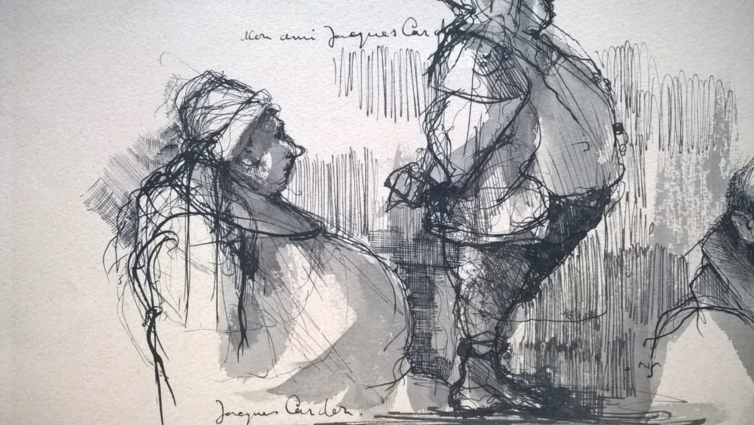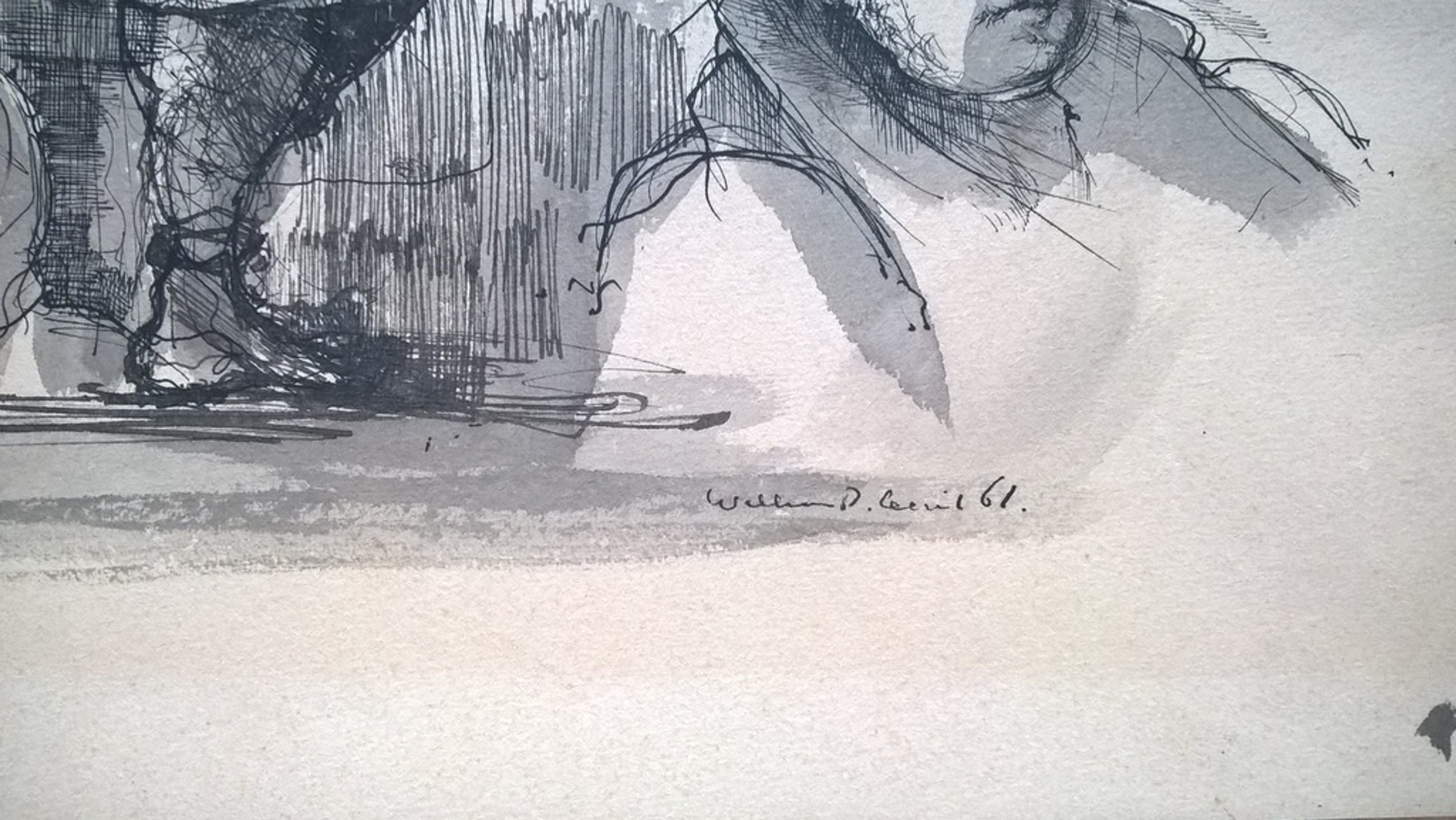 Tekening van Dirkje Kuik, gemengde techniek op papier; pentekening met waterverf, hand gesigneerd en gedateerd ´61, afmeting 35 x 26.5 cm Conditie: goed, zie foto´s