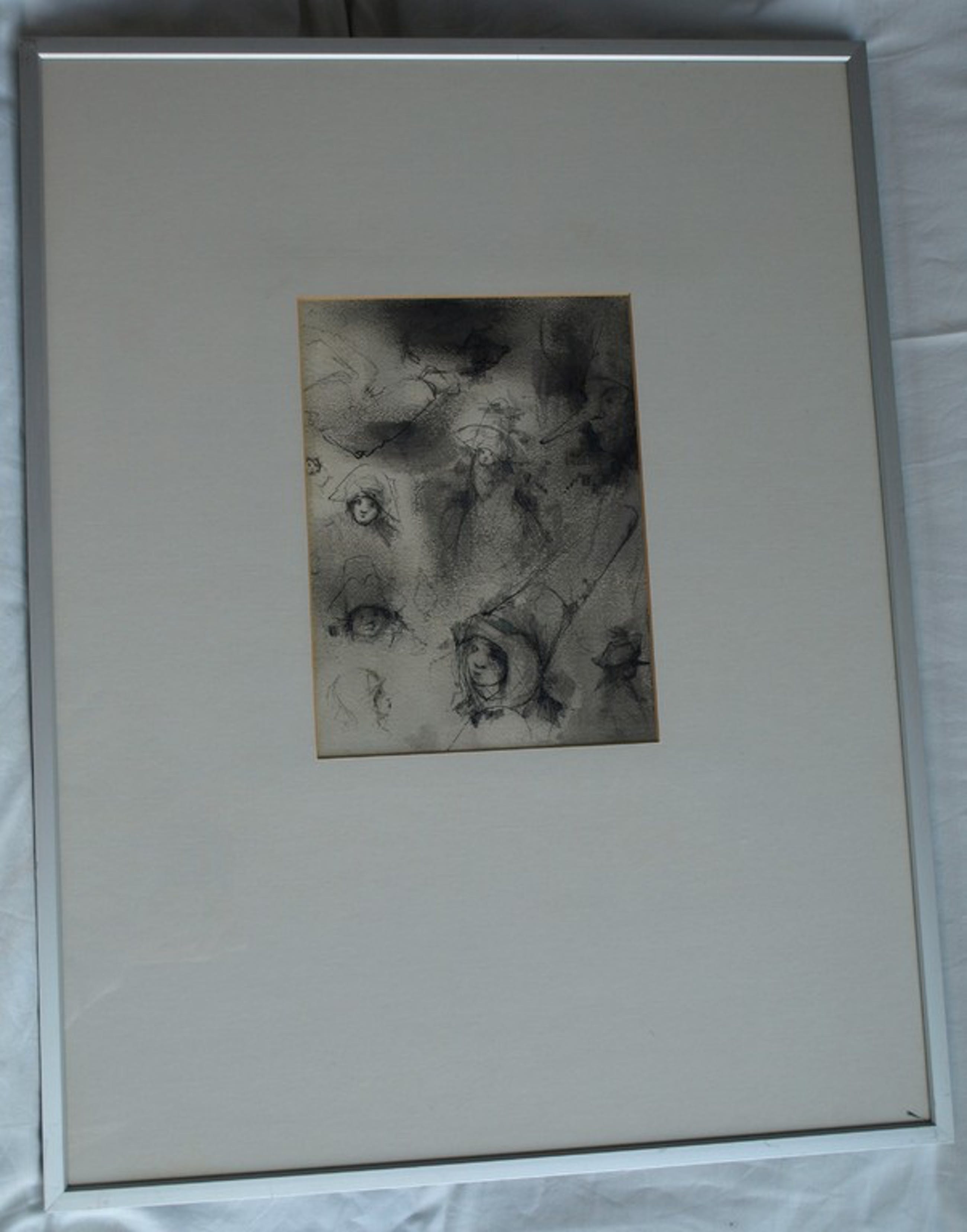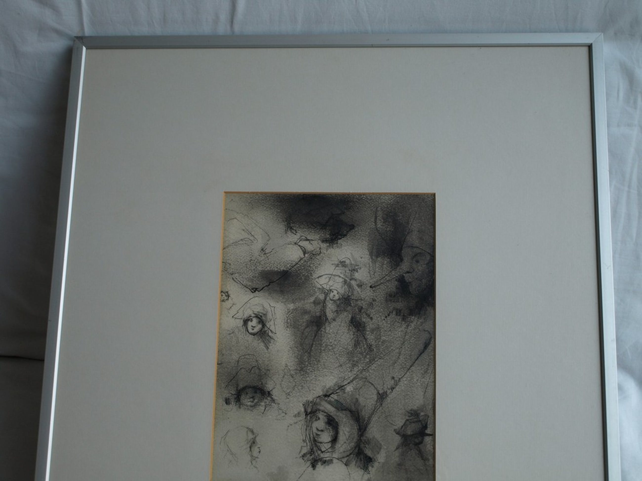 De tekening is ingelijst in een aluminium lijst met passe-partout en glasplaat.