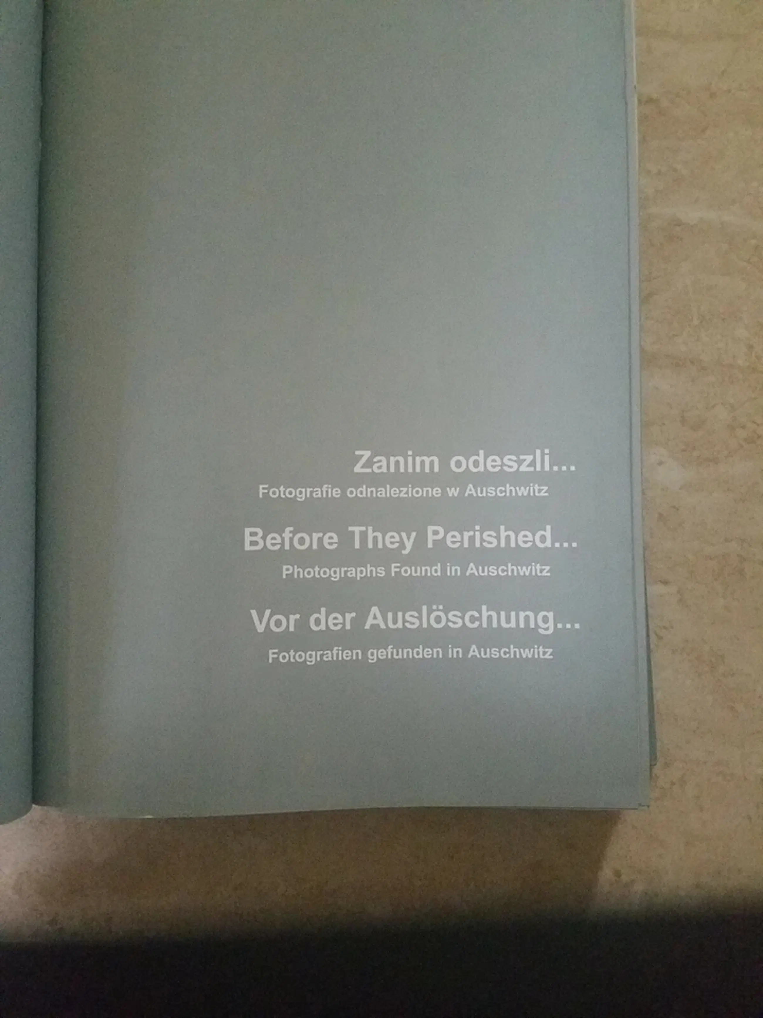 Boek met overzcht van fotos gevonden in Auswitz naa de bevrijding Zanim Odesszli