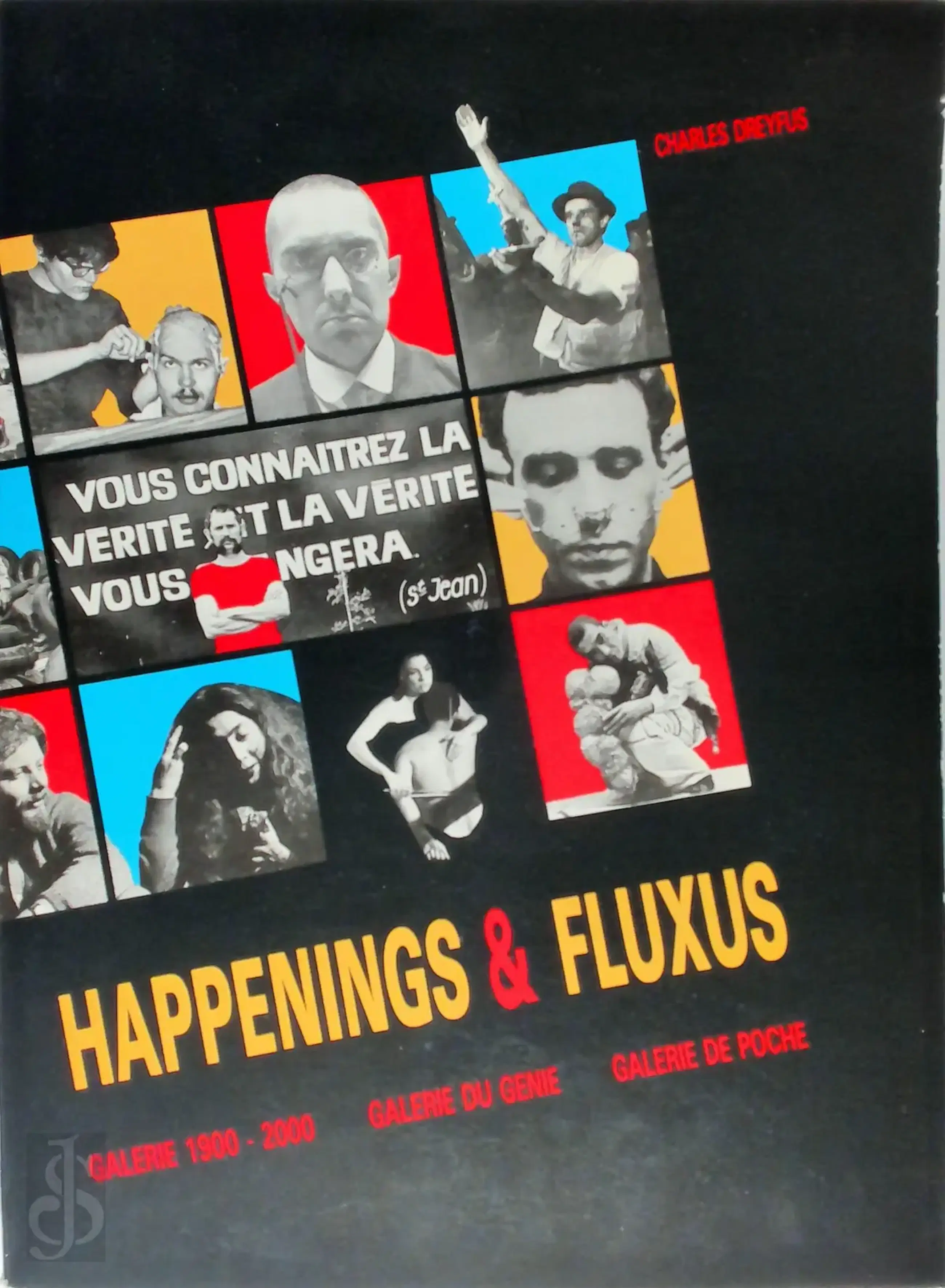 overzicht van Fluxustentoonstelling bij Galerie 1900 - 2000 Galerie du Genie Galerie de Poche met prijslijst en plattegrond Charles Dreyfus