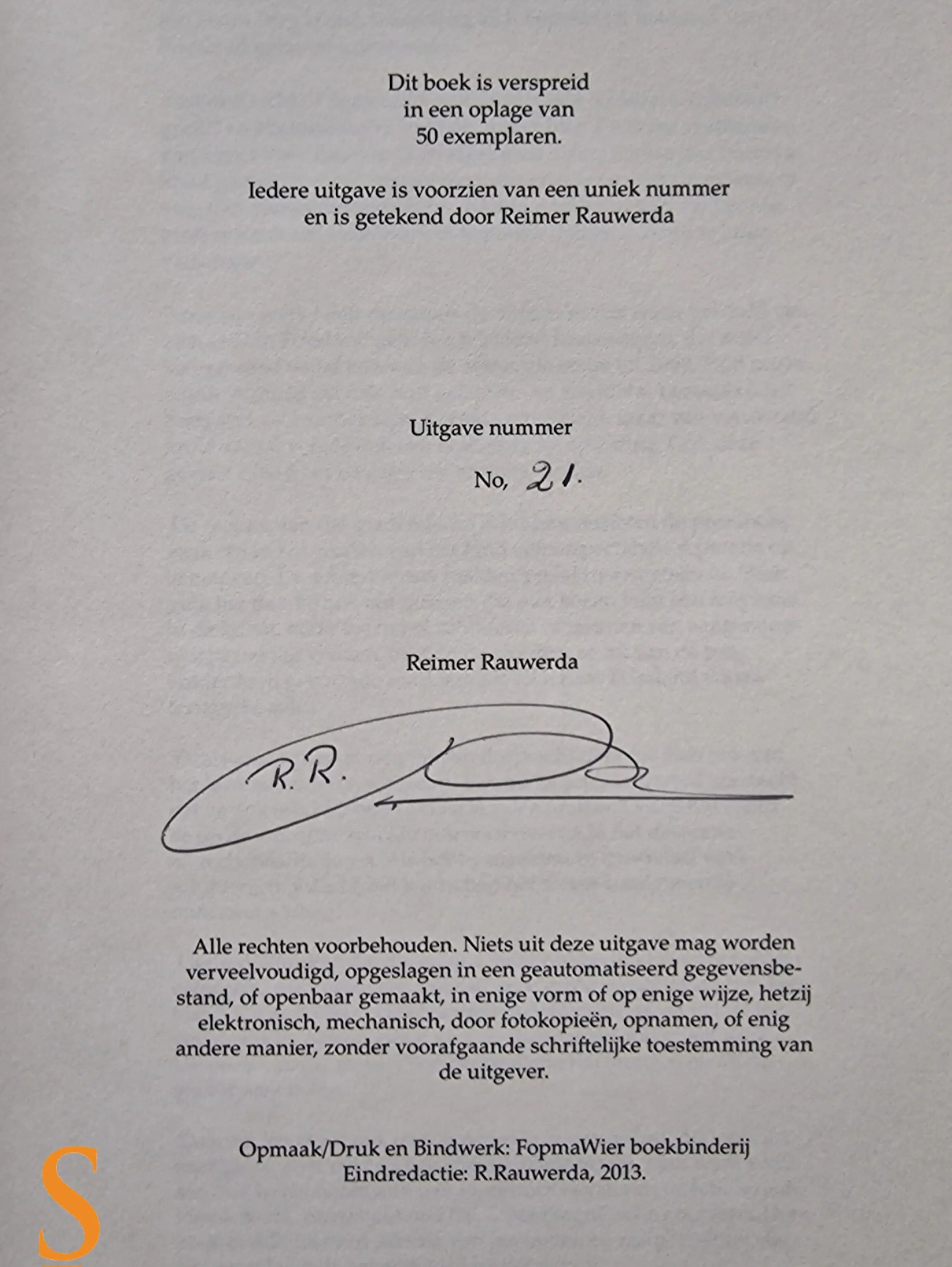 Bijzonderheden: gelimiteerde, gesigneerde en genummerde oplage van 50 stuks Dit boek betreft nr. 21/50