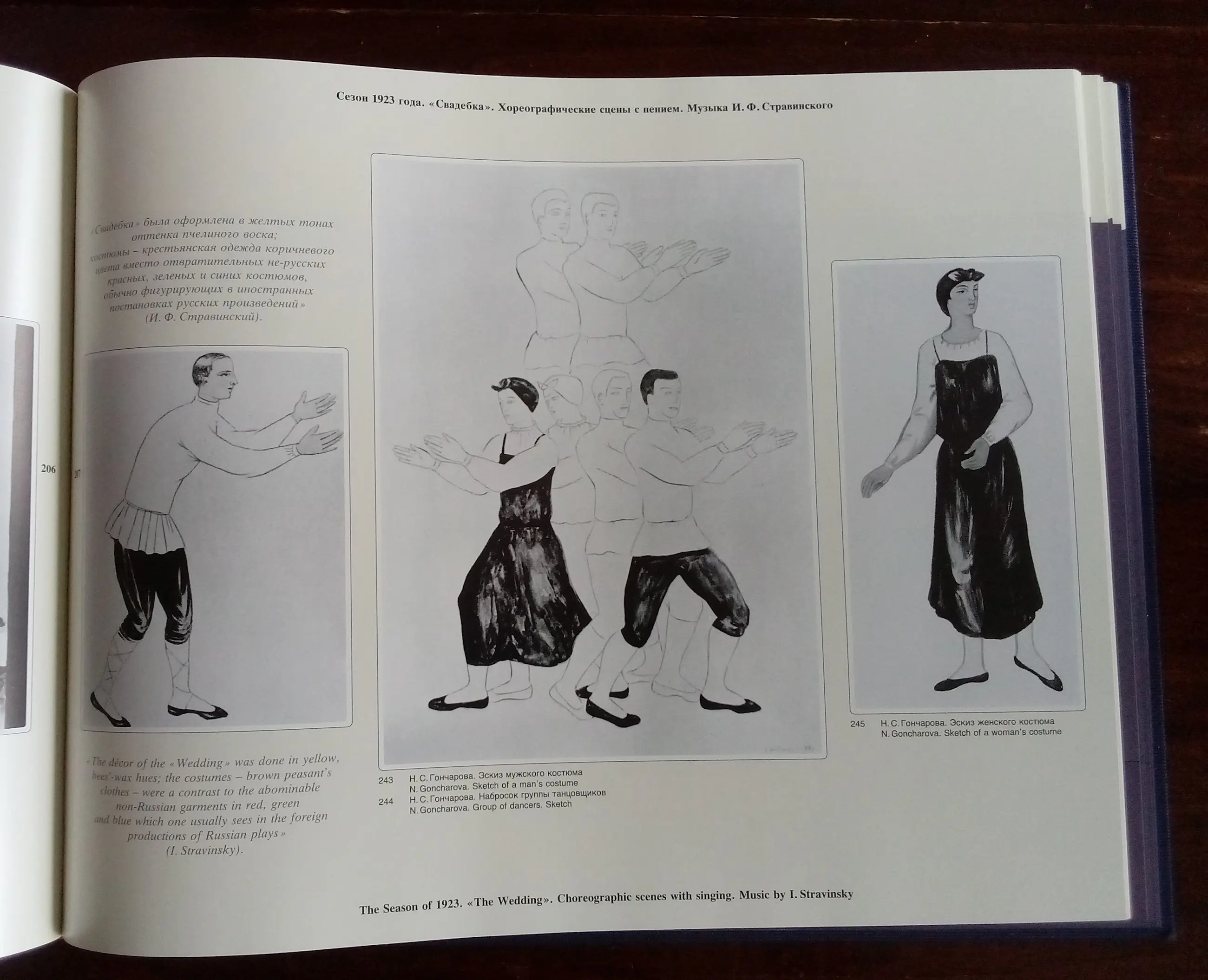The album contains sketches of scenery and costumes for performances from 1908 to 1929. There are performances in the history of the theatre whose enormous, resounding success, being an expression of deep processes in the life of art, immediately raises them to the level of landmark events. They are kept in memory, as nations remember great battles, eyewitnesses tell their children and grandchildren about them, turning reality into legends. This happens when features of new content in art, born of the demands of the time, long accumulated latently, suddenly, as if by an explosive wave, overturn conservative, obsolete forms that hinder their development. Such a performance was the premiere of Hugo Hernani's drama, which in 1830 began the offensive march of romanticism on the French stage, such was the production of The Seagull at the Moscow Art Theatre, which opened a new era in the performing arts. The touring performances of Russian opera and ballet in Paris in 1908 and 1909 should rightfully be included among such events. They were called Russian Seasons, as they were repeated over a number of years.