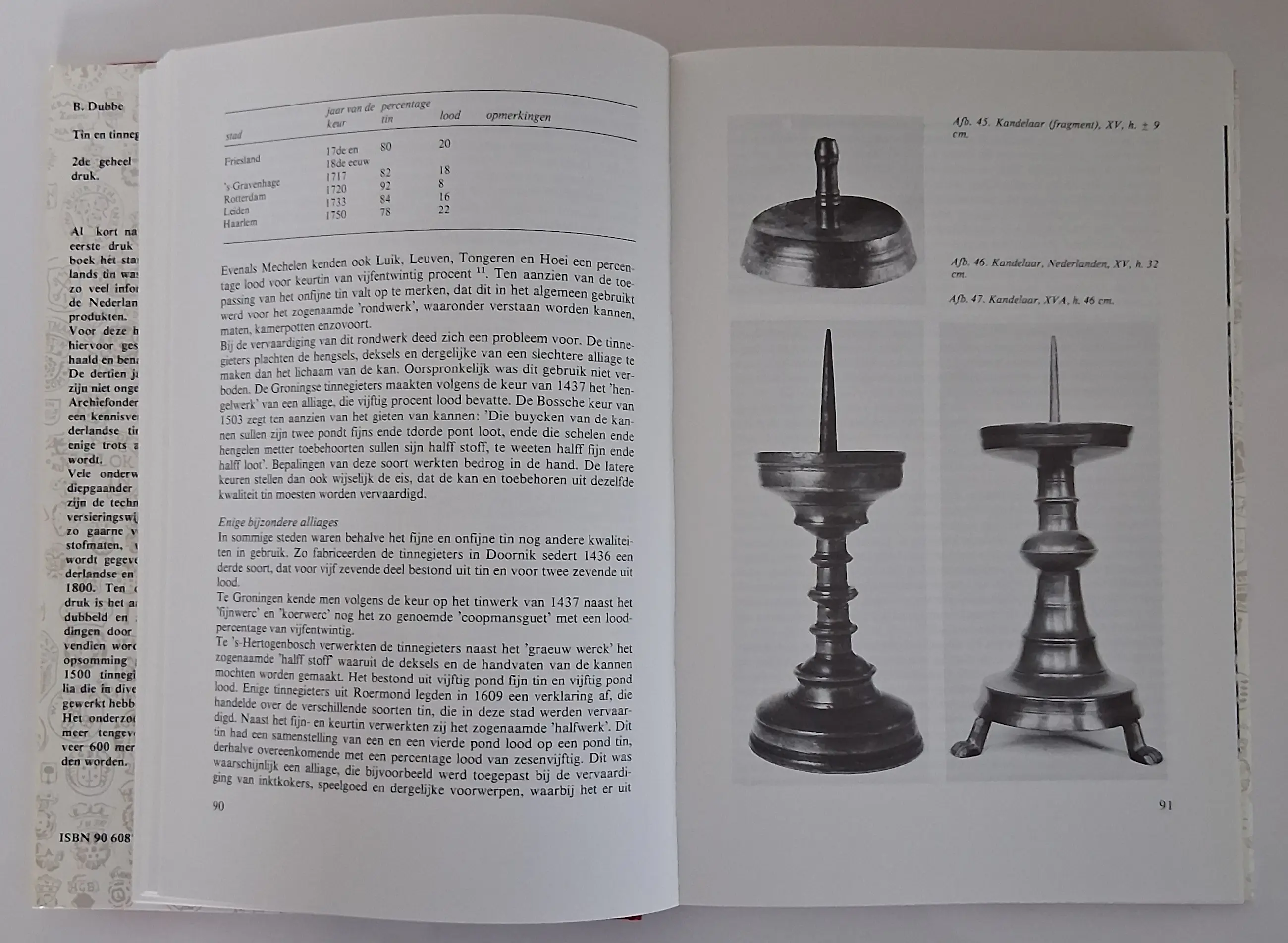 Standaardwerk over Nederlands tin en tinnengieters, waarin naast gebruiks-tin ook kannen, borden, schotels, kandelaars, zoutvaten, sanitair, lepels, tabakspotten etc belicht worden en aandacht wordt besteed aan tinnegieters en de tinnengieterij. Bovendien voorzien van een groot aantal merken en signaturen.
