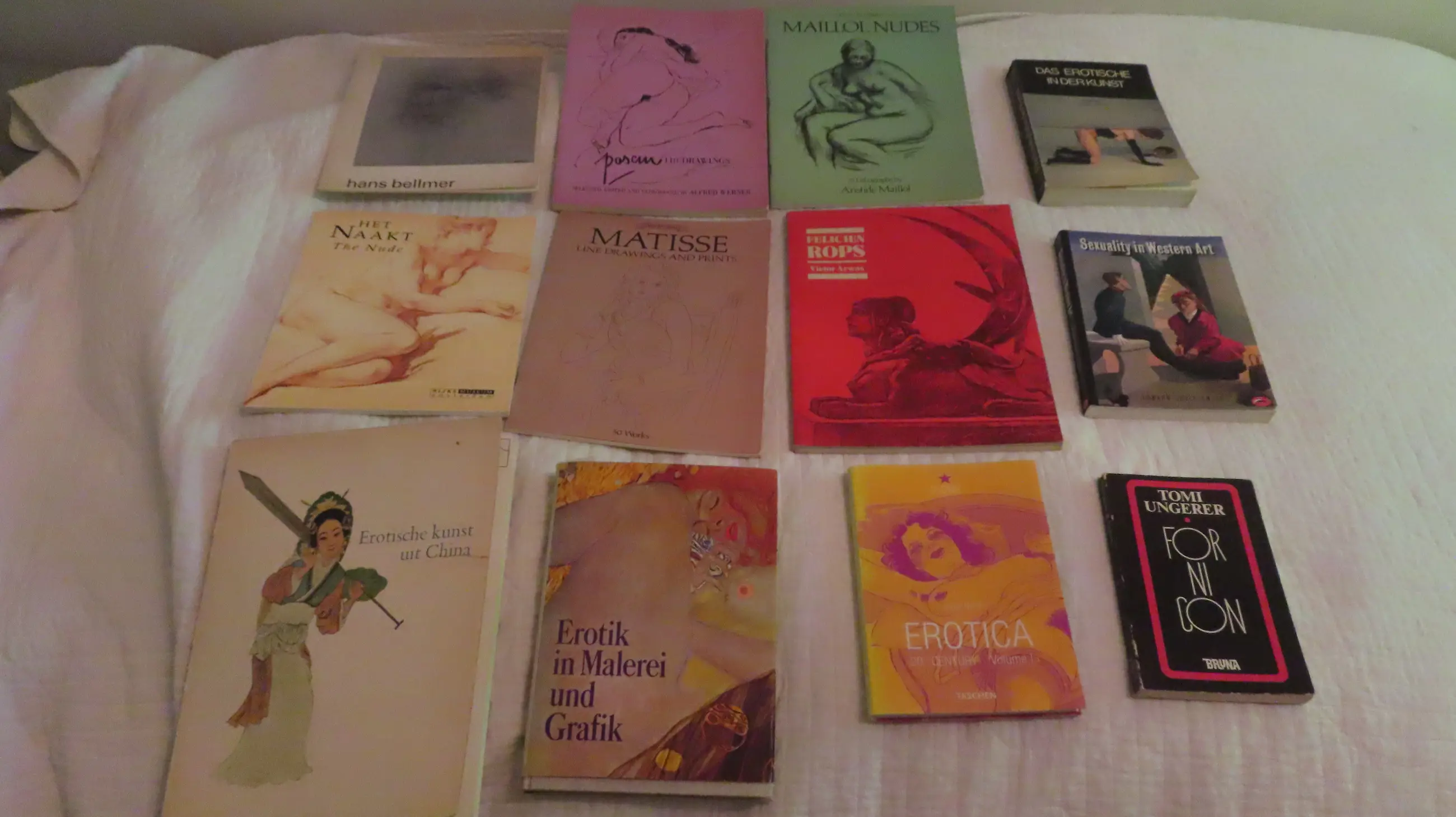 dit zijn Maillol, Matisse, Puscin,Bellmer, Rops, Ungerer en Erotica