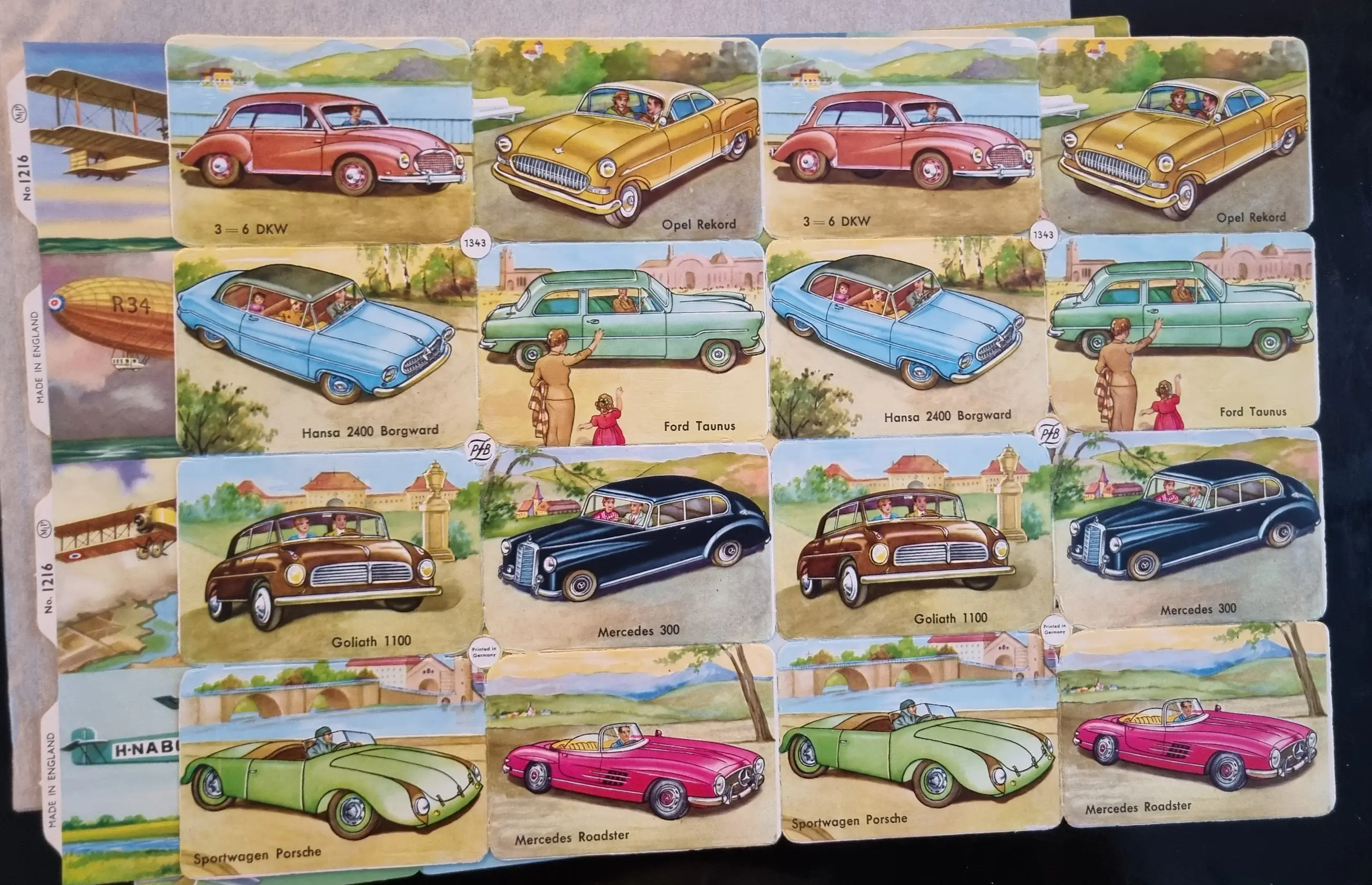 5 vellen met auto's en 5 vellen met vliegtuigen