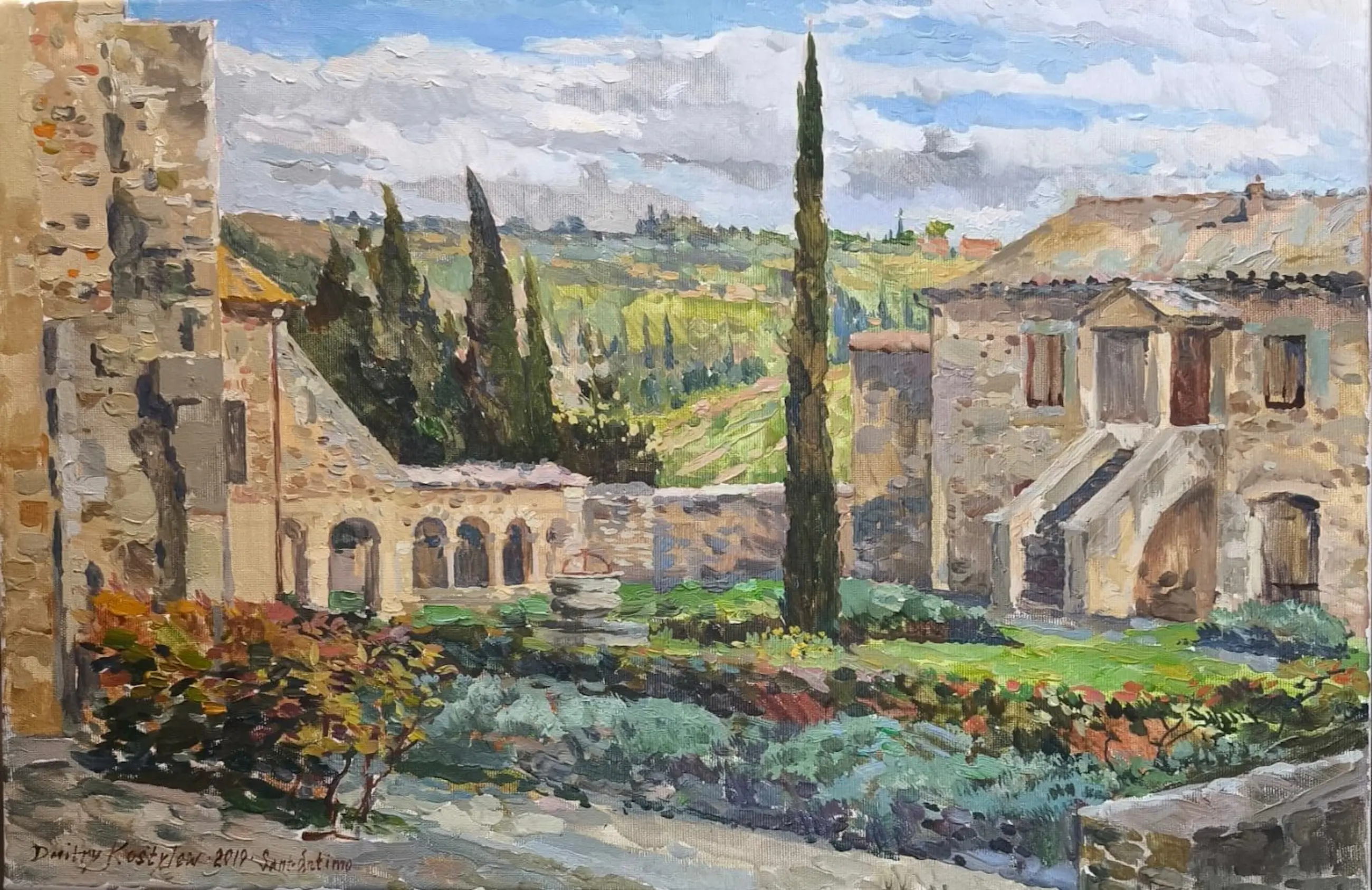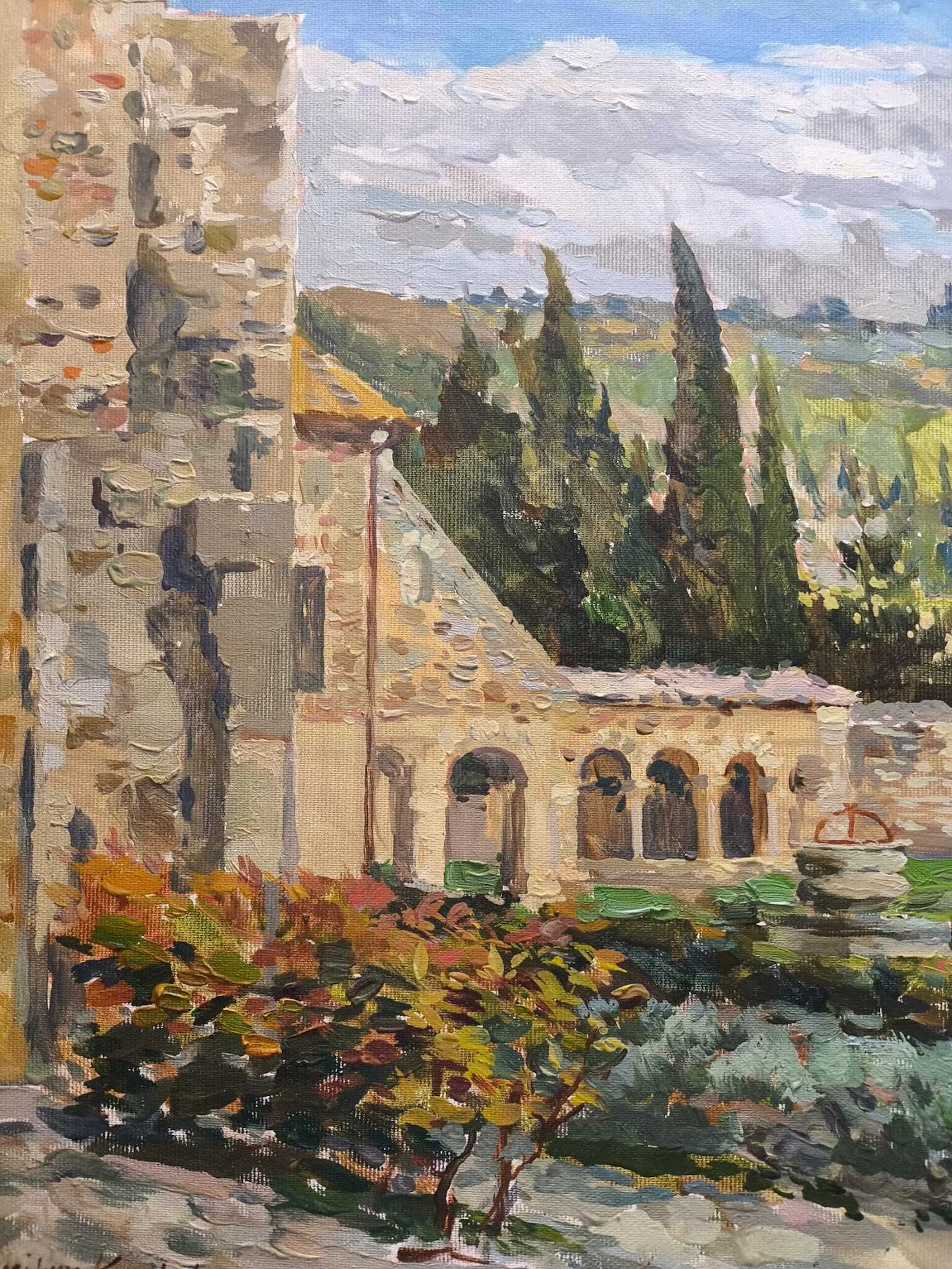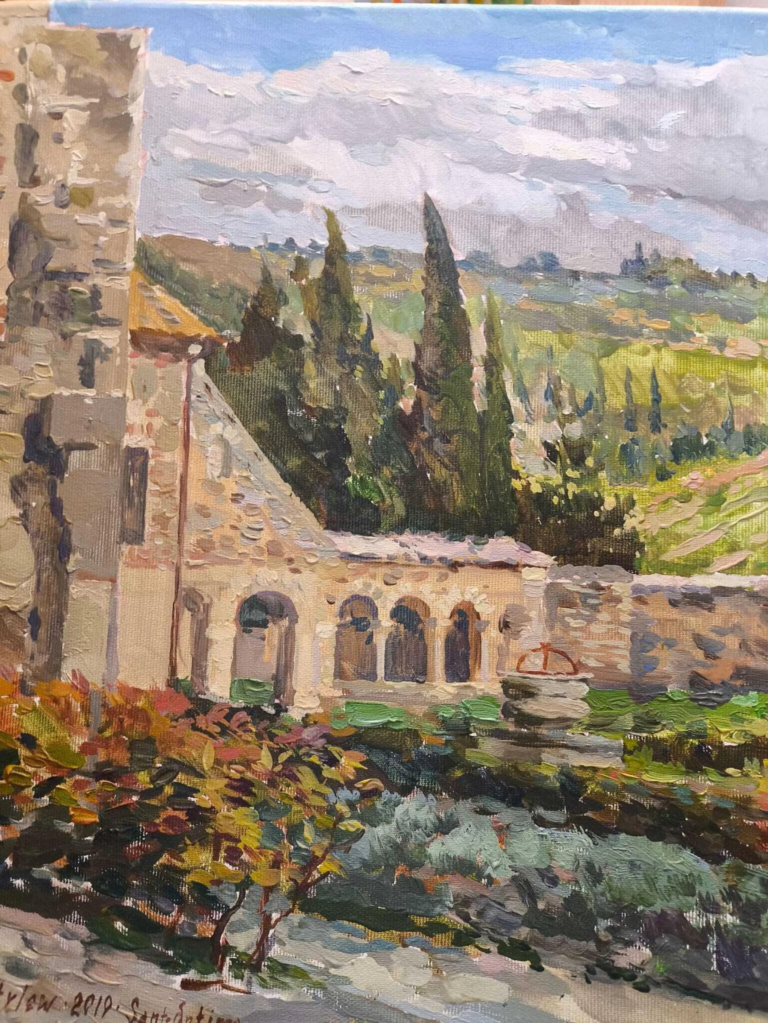 De abdij van Sant'Antimo, Toscane, Italië, 2019 - olieverf op doek, gesigneerd linksonder.