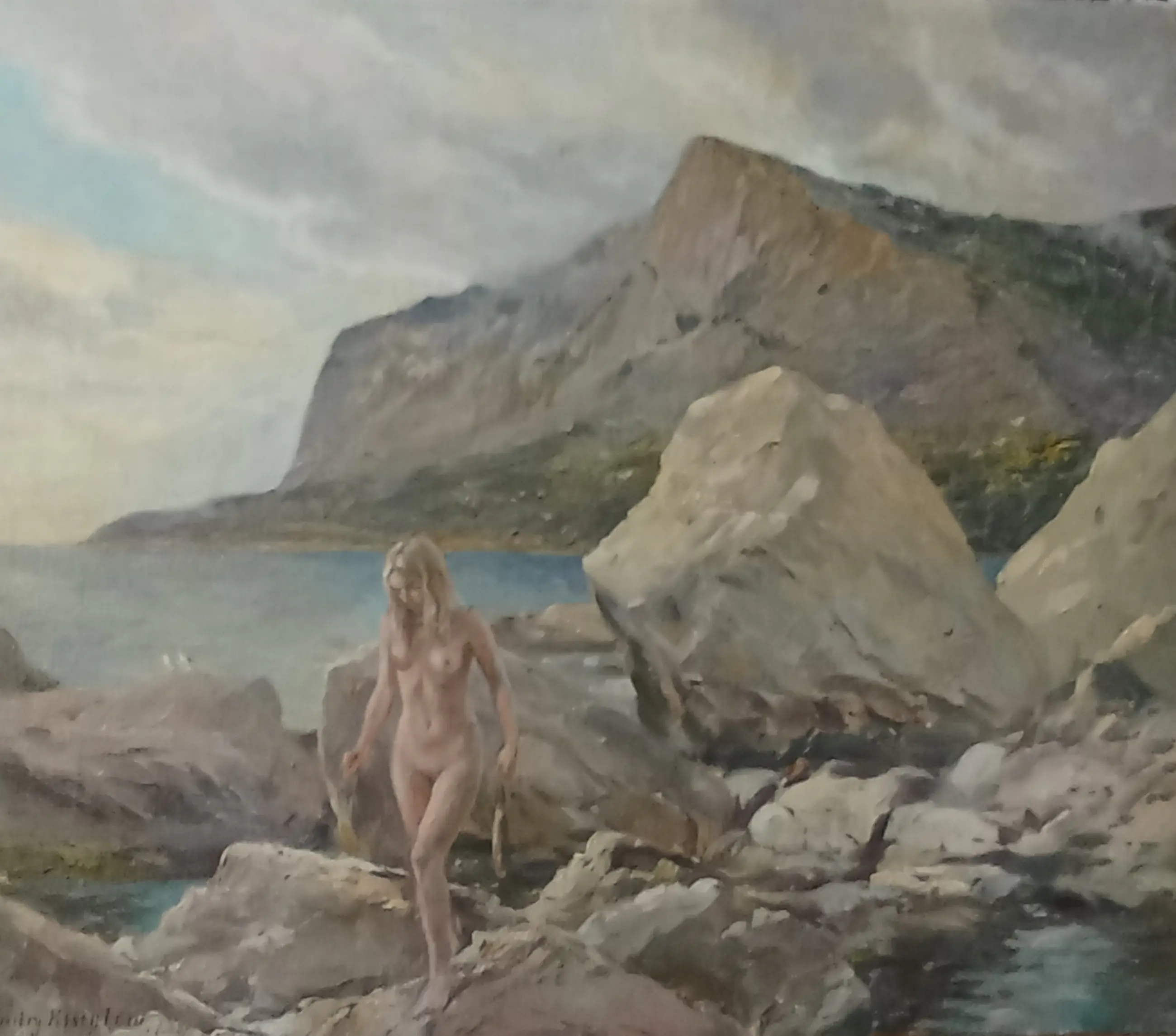 In de baai van Laspi - olieverf op doek, linksonder gesigneerd en op de achterkant getiteld in het Russisch.