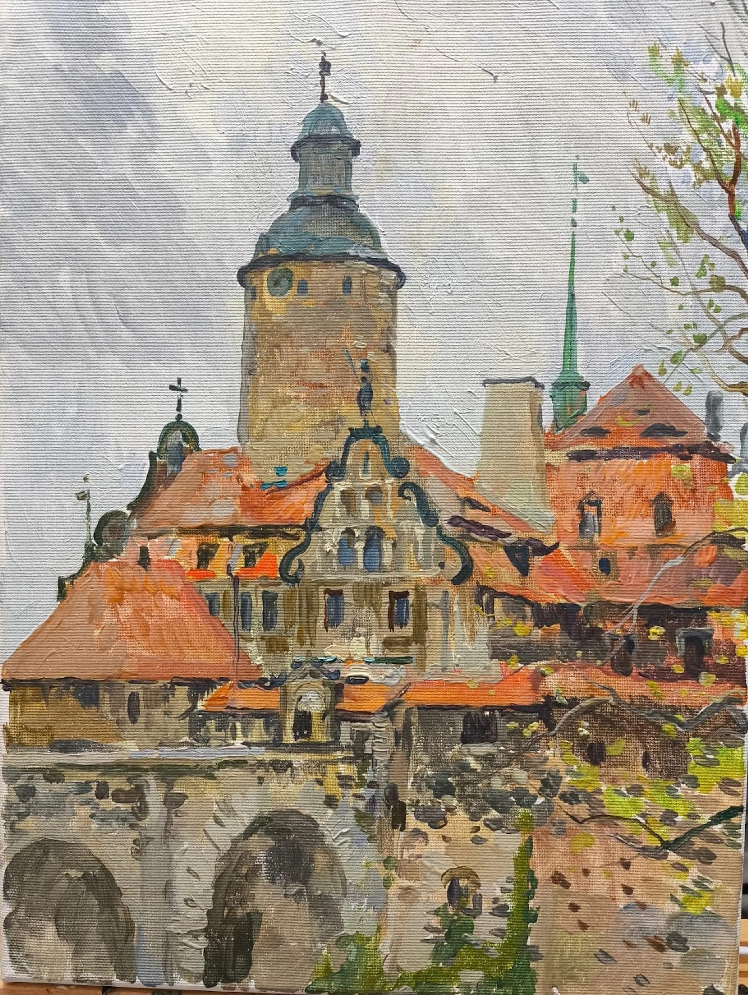 Kasteel in Polen 2018 - olieverf op doek, gesigneerd linksonder.
