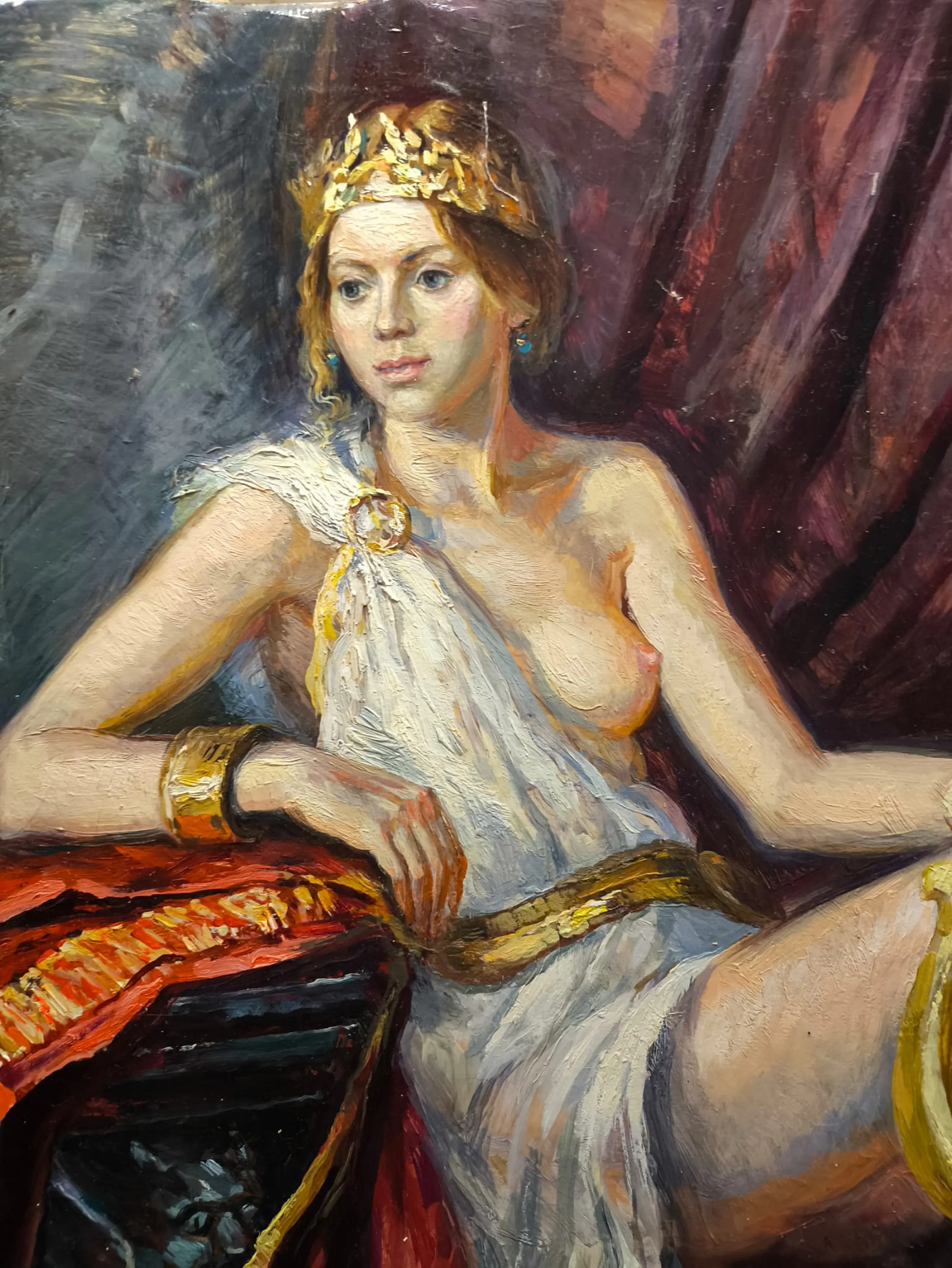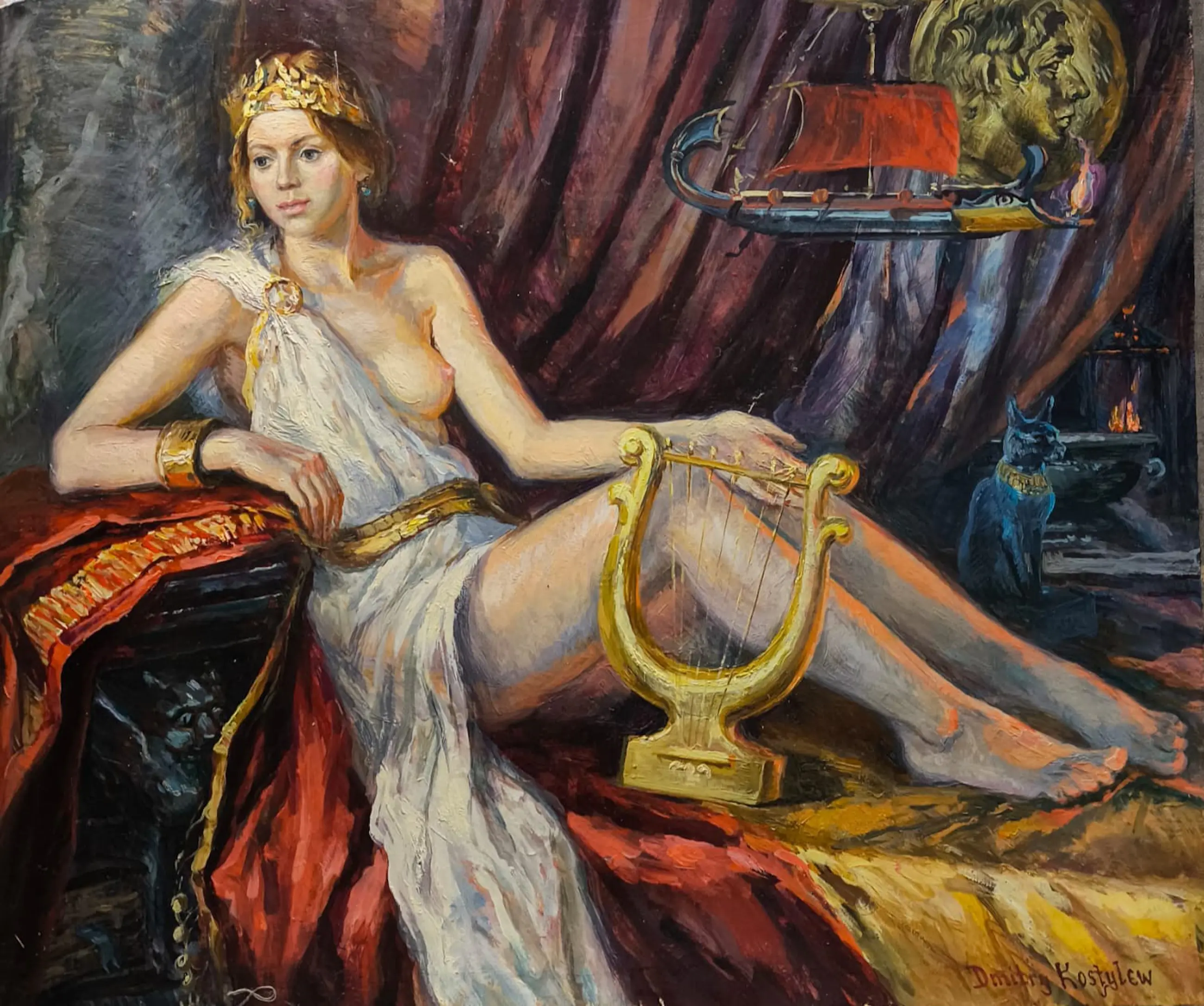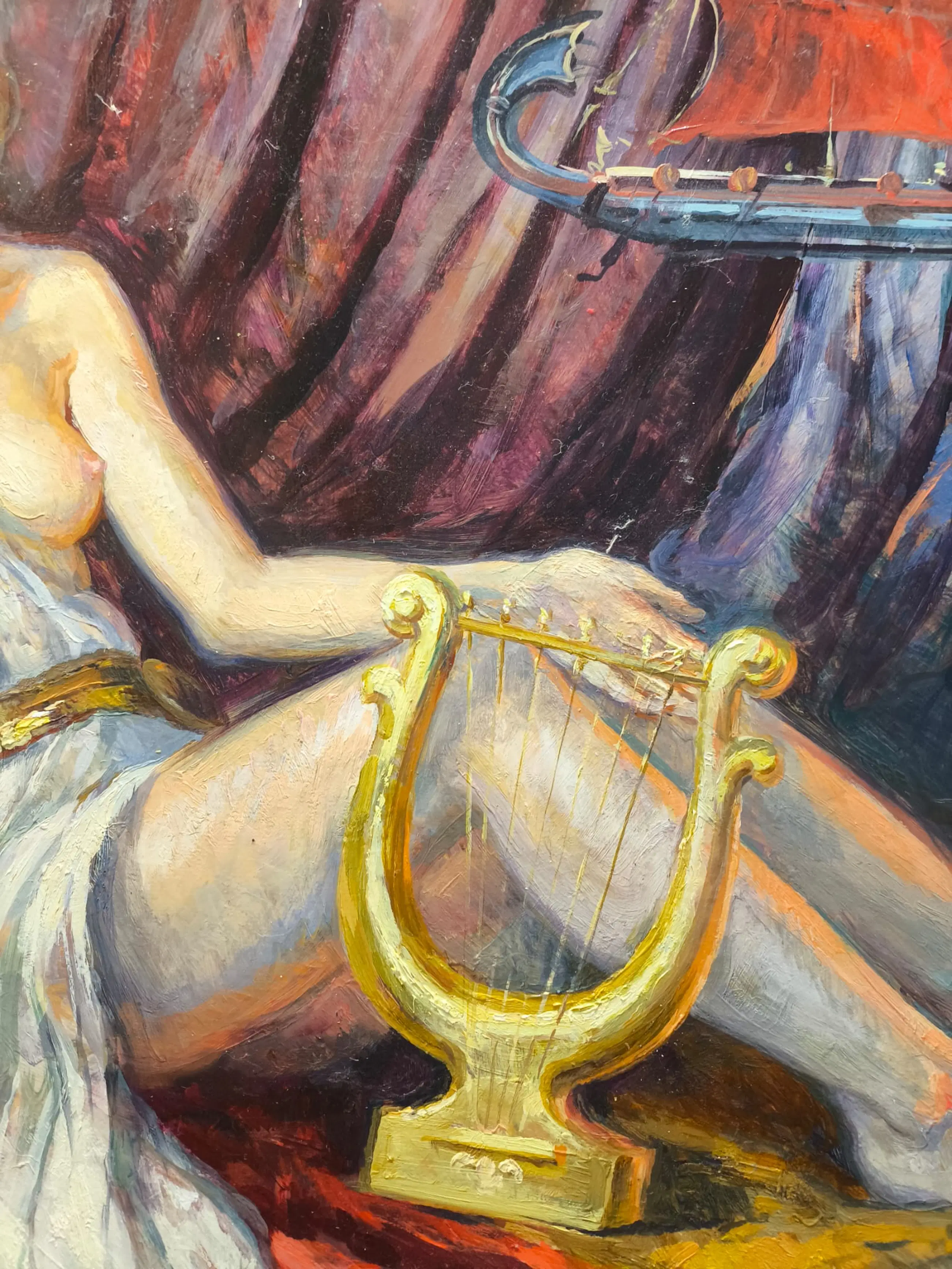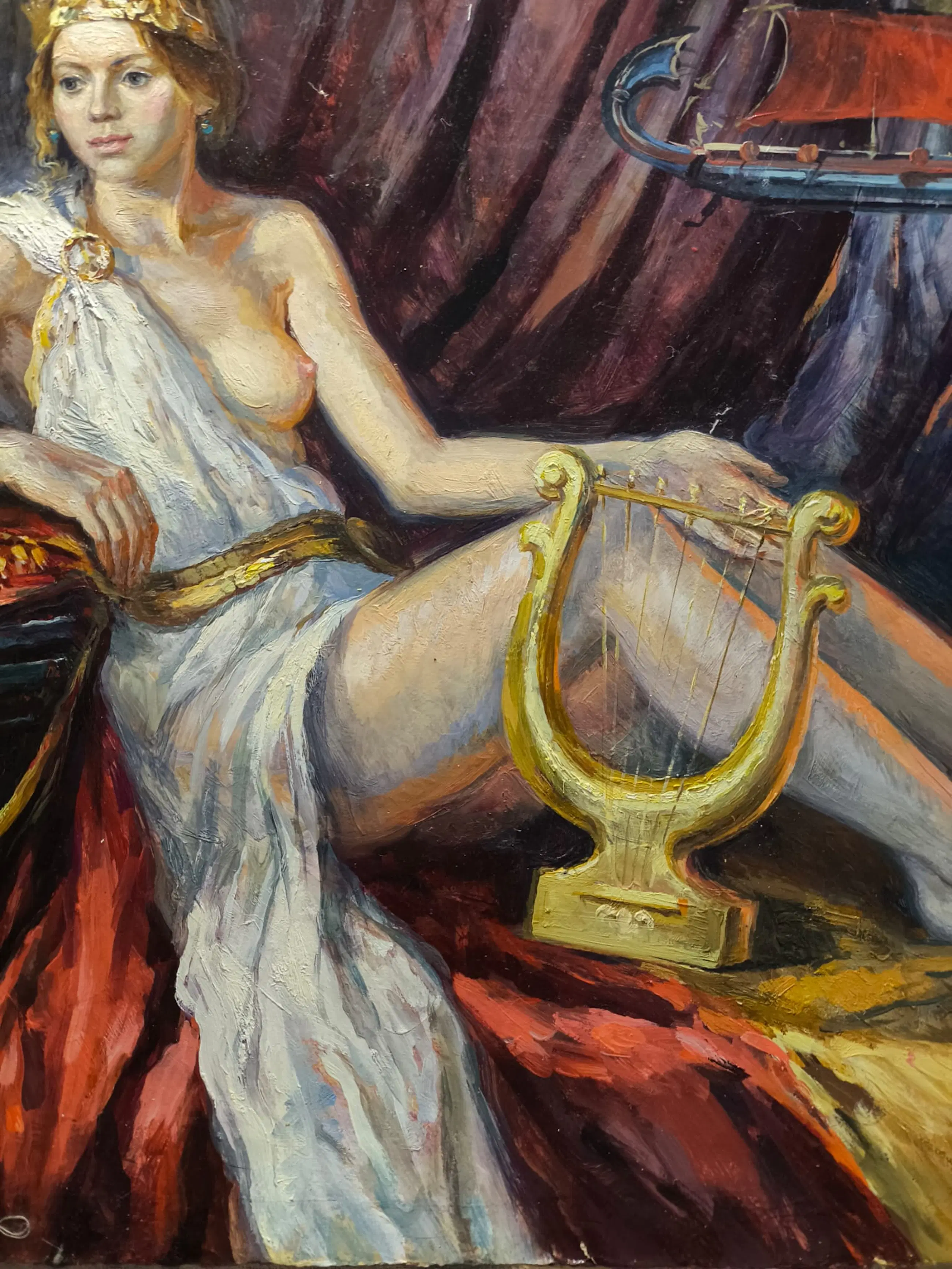 Muse Euterpe 2024 - olieverf op doek, titel op de achterkant en rechtsonder gesigneerd.