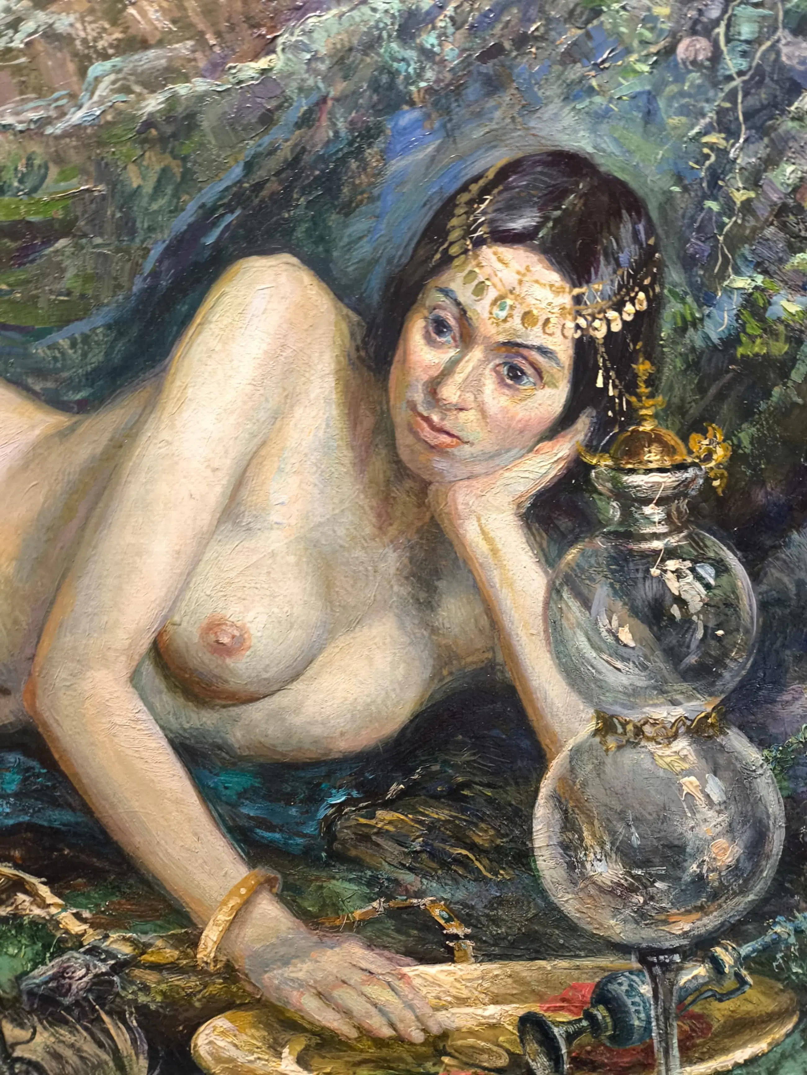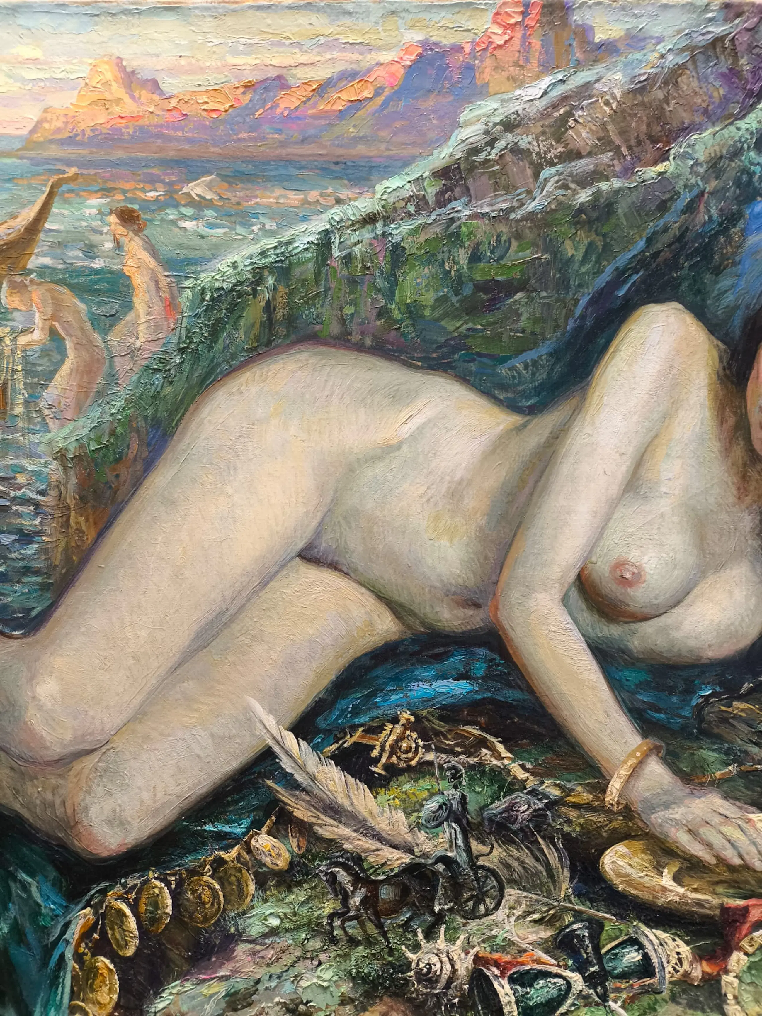 Nimf met schatten - olieverf op doek, onderaan gesigneerd en op de achterkant getiteld.