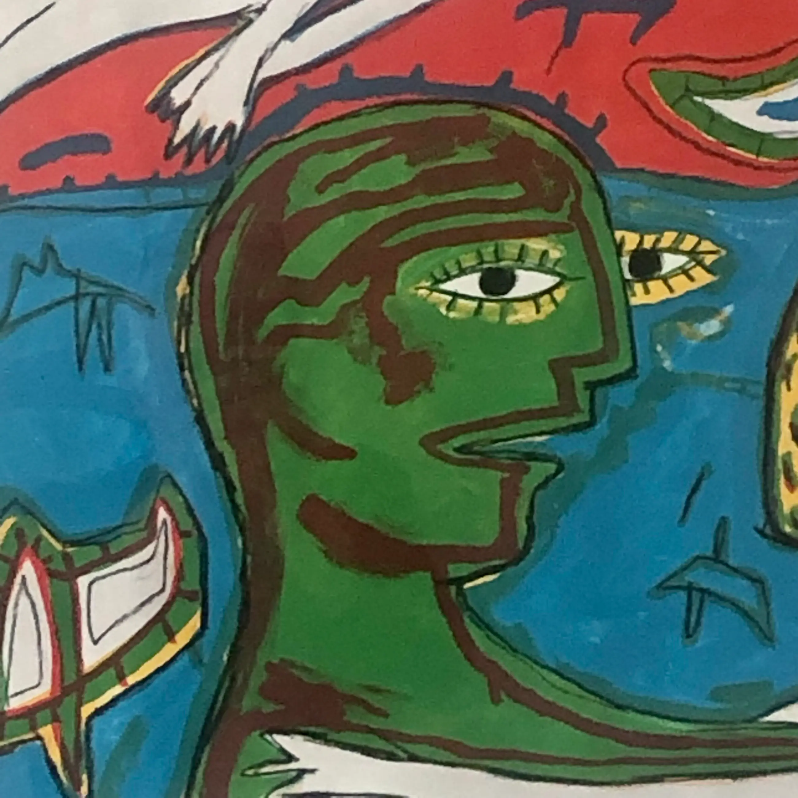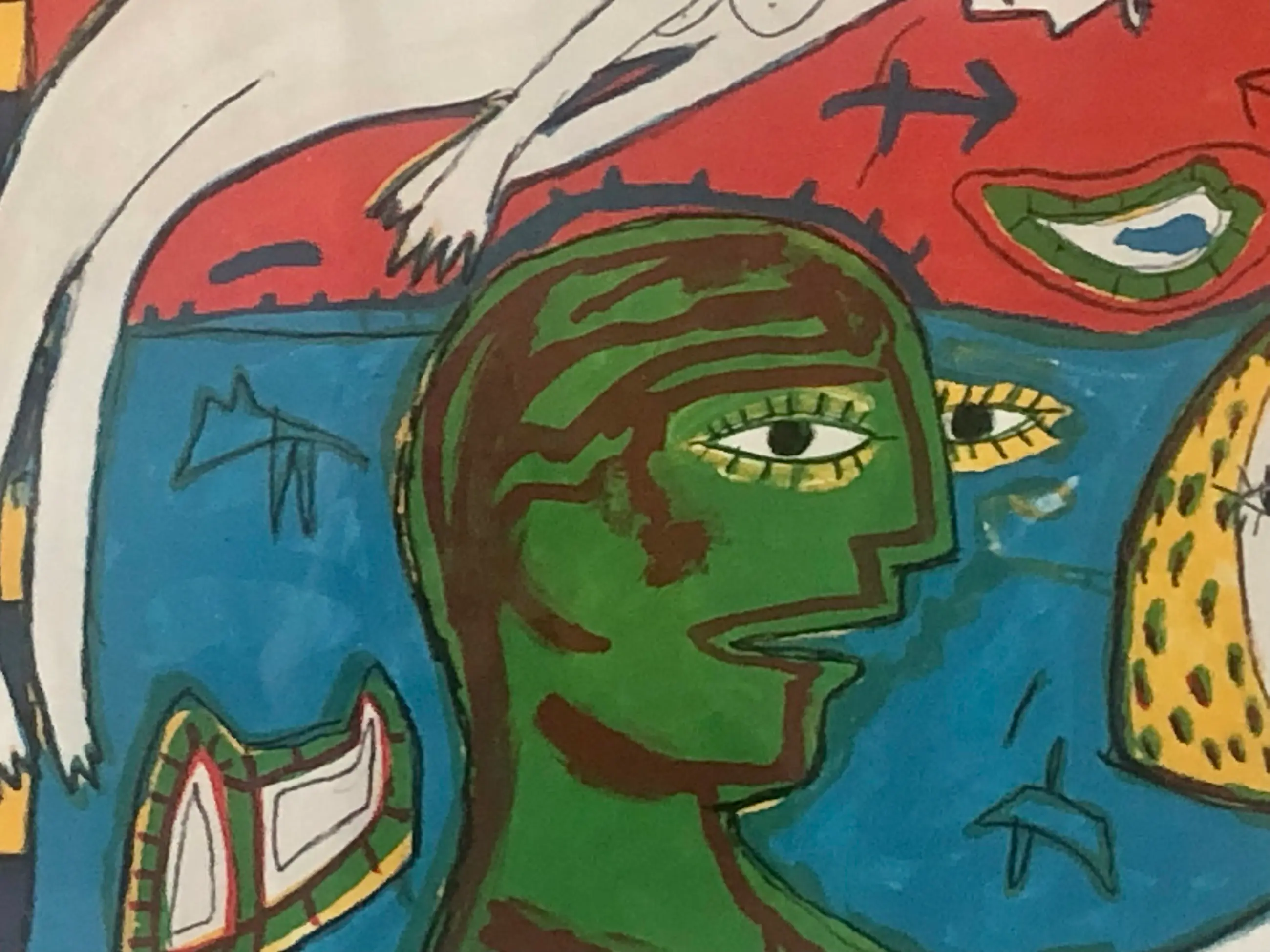 Prachtig kleurig, speels CoBrA achtig werk van de van oorsprong Indonesische kunstenaar Dodog Soeseno.
