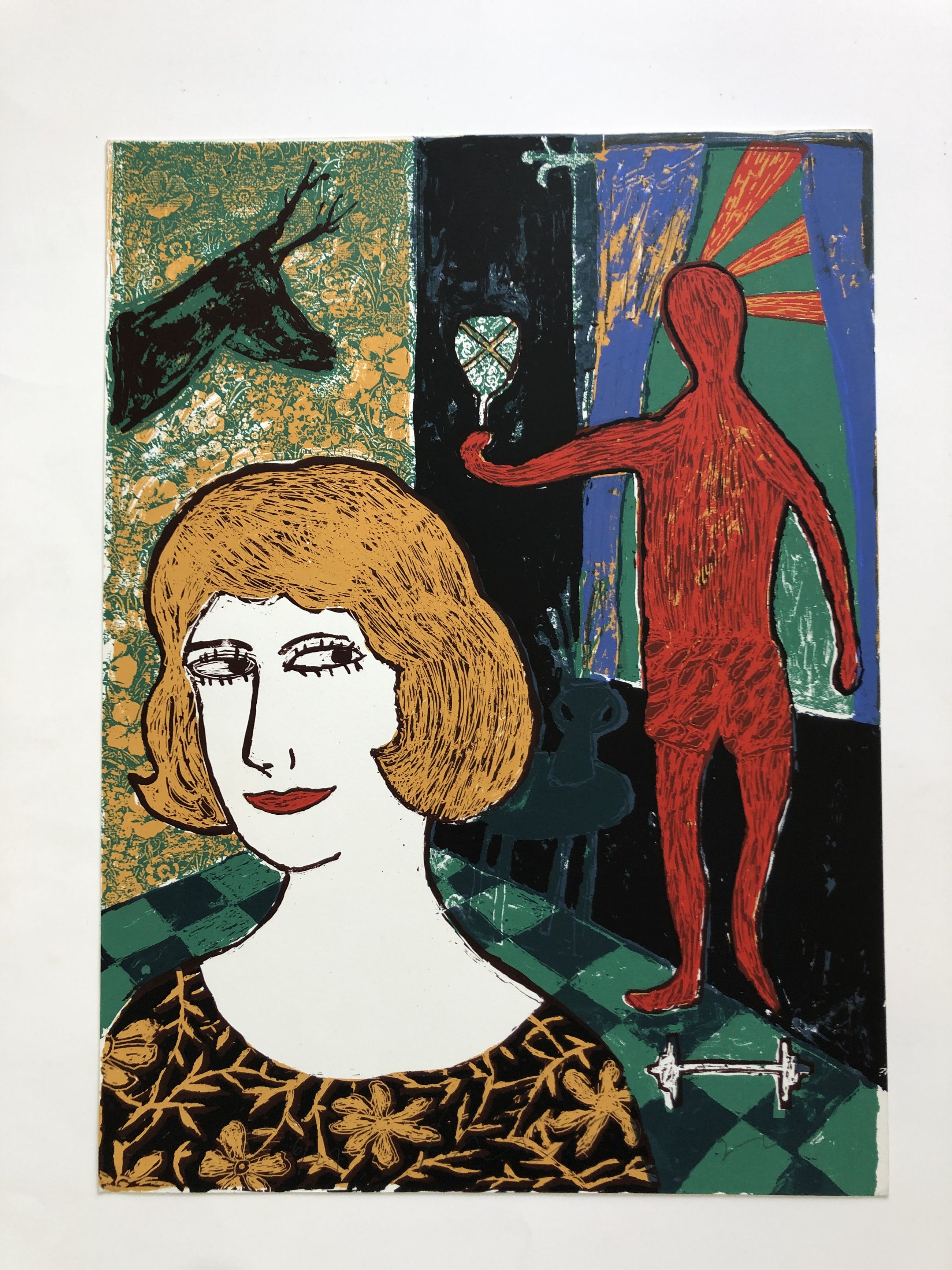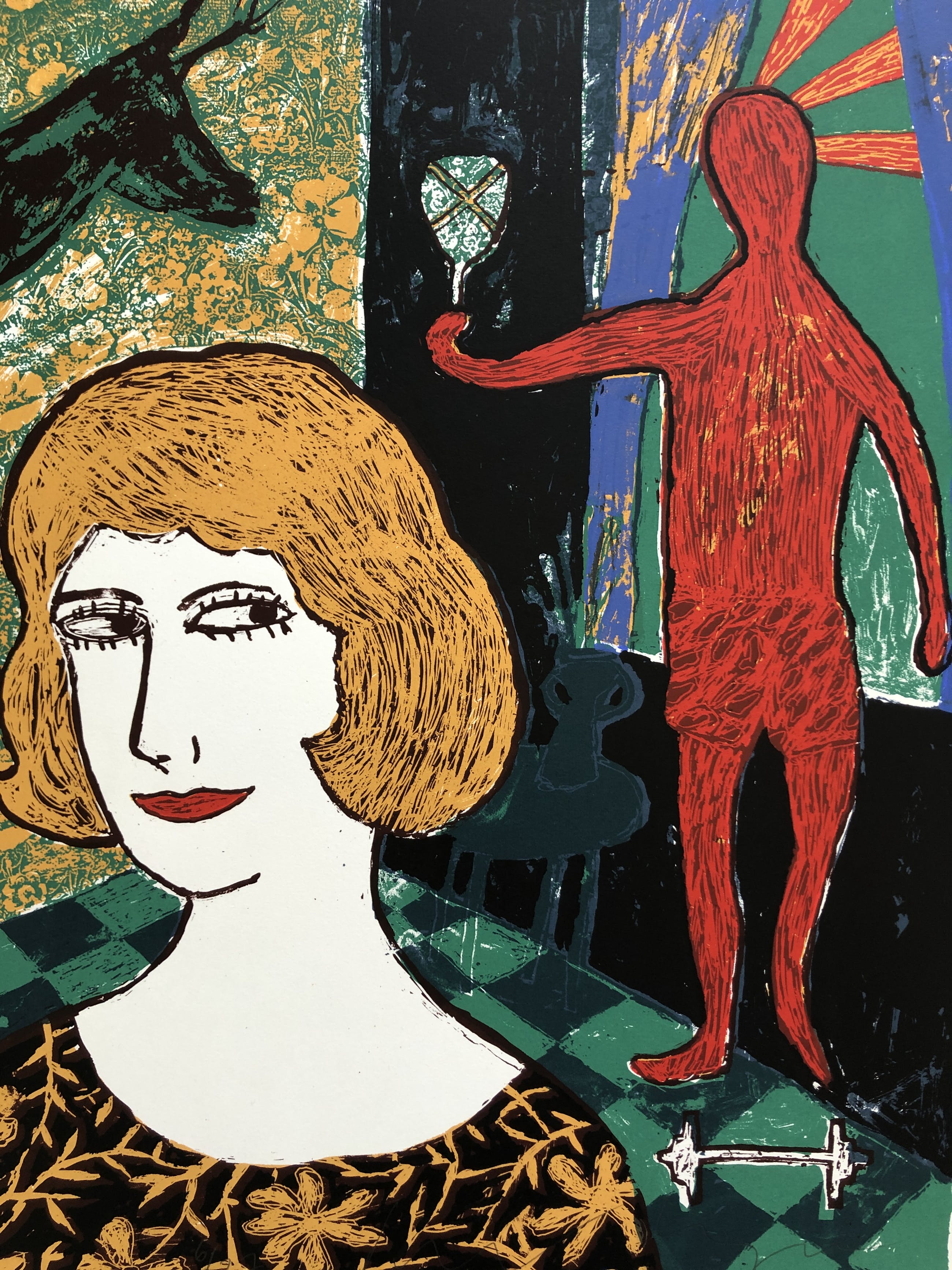 Soms als ik naar je Kijk....( Living-room II) Mooi verhalend werk van meesterdrukker Dodog Soeseno. Gesigneerd en genummerd. U kunt het werk vooraf komen bekijken in de schatkamer van galerie Rotor in Gorinchem of na aankoop ophalen. Het werk kan ook verzonden worden via aangetekende post. Of tijdens de pandemie gratis worden opgeslagen tot nadere orde. Wij kunnen ook uw inlijstingen verzorgen.