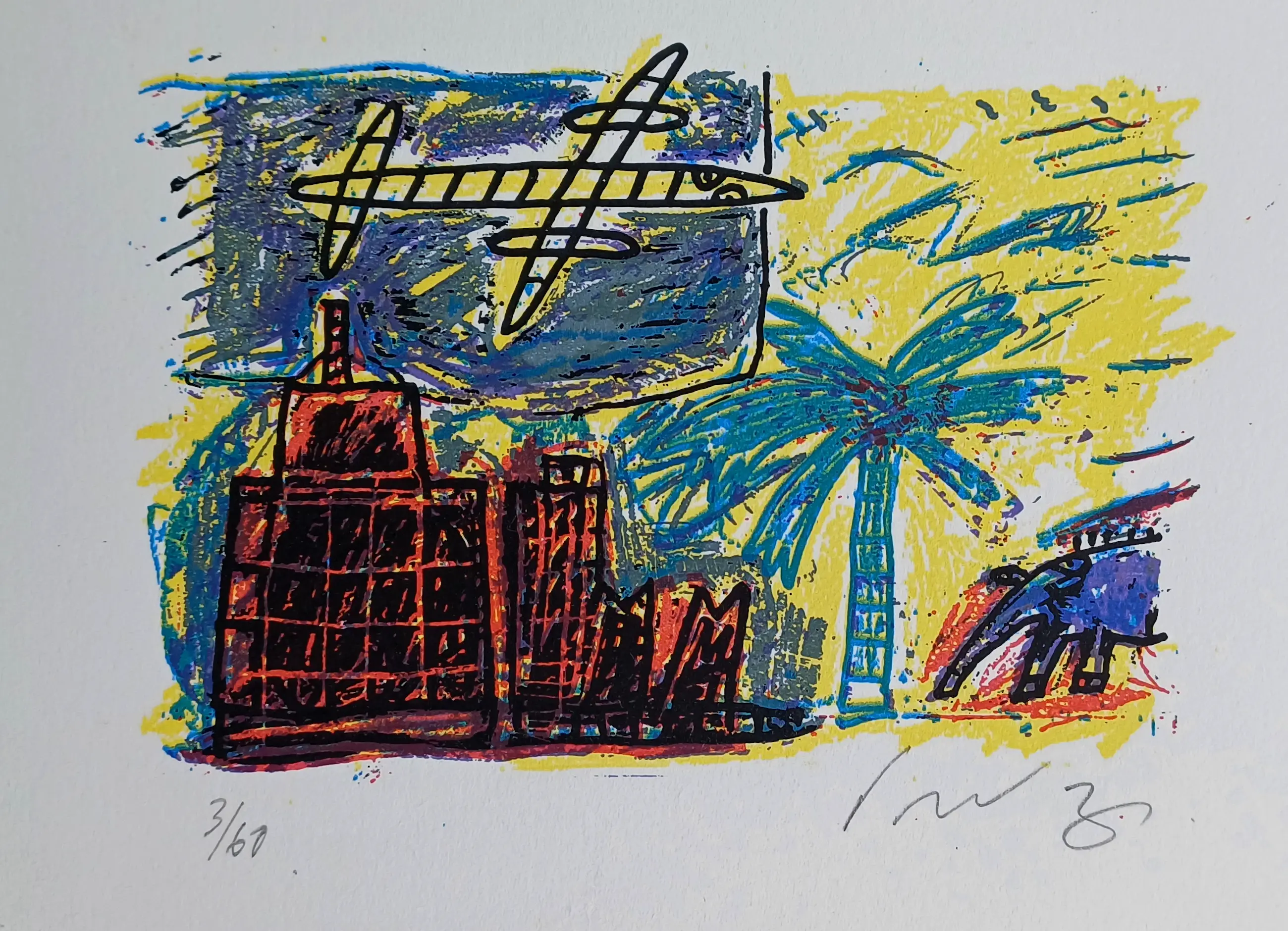 Zeefdruk van Dodog Soeseno. Nummer: 3/60. Afmetingen blad: H34 x b23cm. Afmetingen voorstelling: H9.5 x b14.5 cm. Het werk is rechts onderaan, met potlood, gesigneerd door de kunstenaar. De authenticiteit van het, aangeboden, werk wordt volledig gegarandeerd. Een certificaat van echtheid kan, op aanvraag, worden gemaild.
