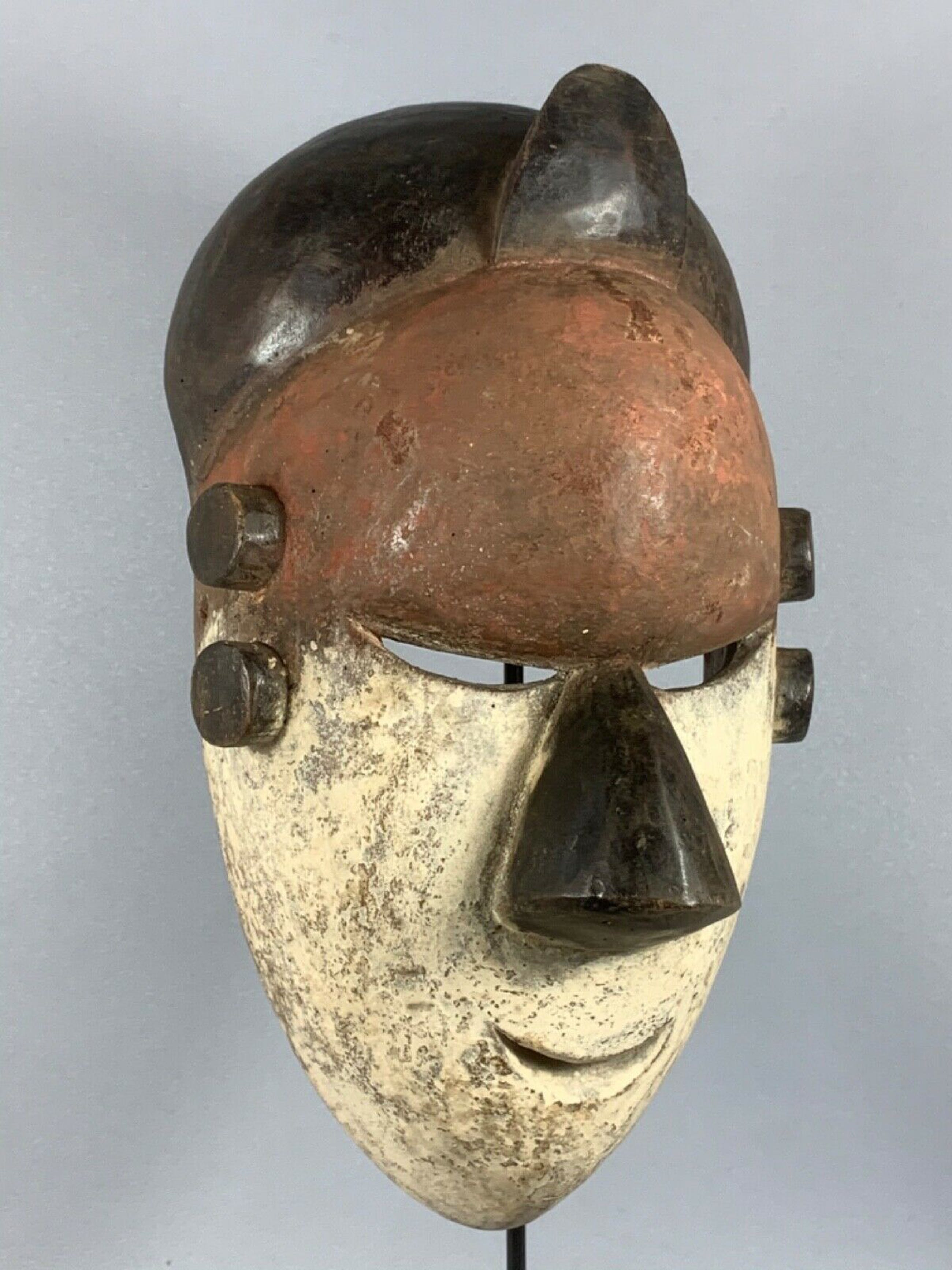 African mask from the Salampasu, Congo. This type of mask represents the source of all fertility. Hand carved from a single piece of color wood.Height: 36 cm.Taxatiewaarde: 150 - 175 euro