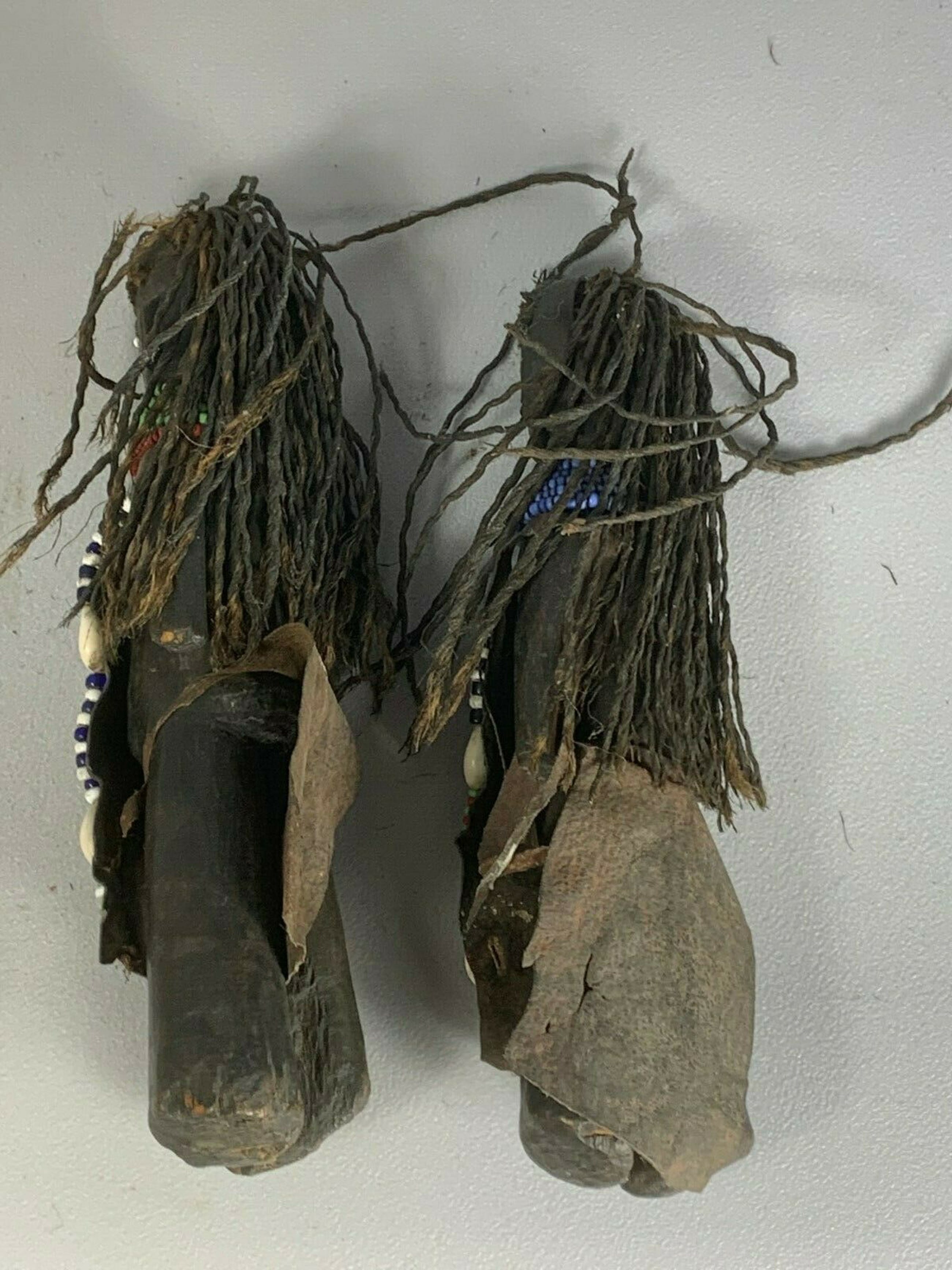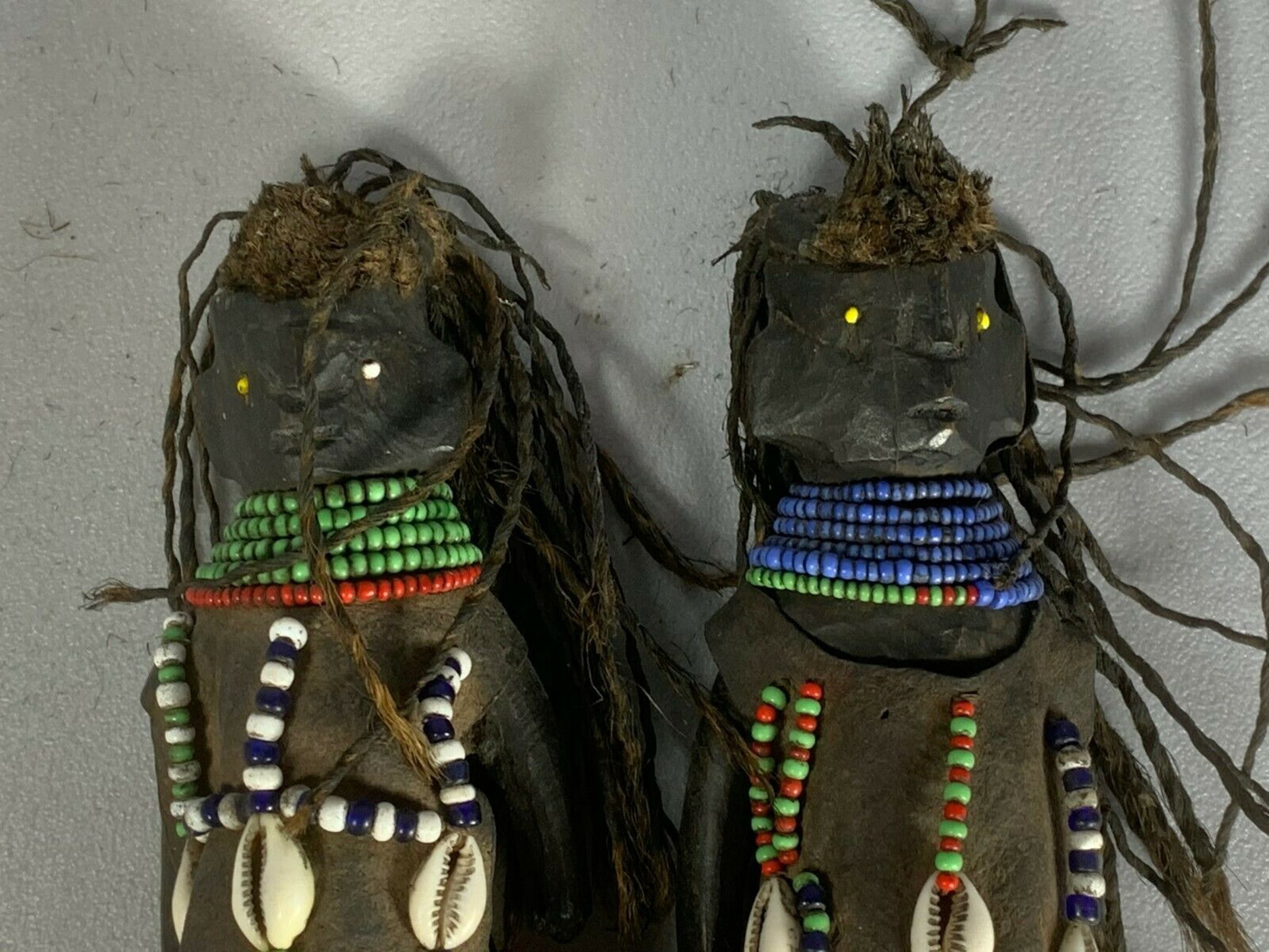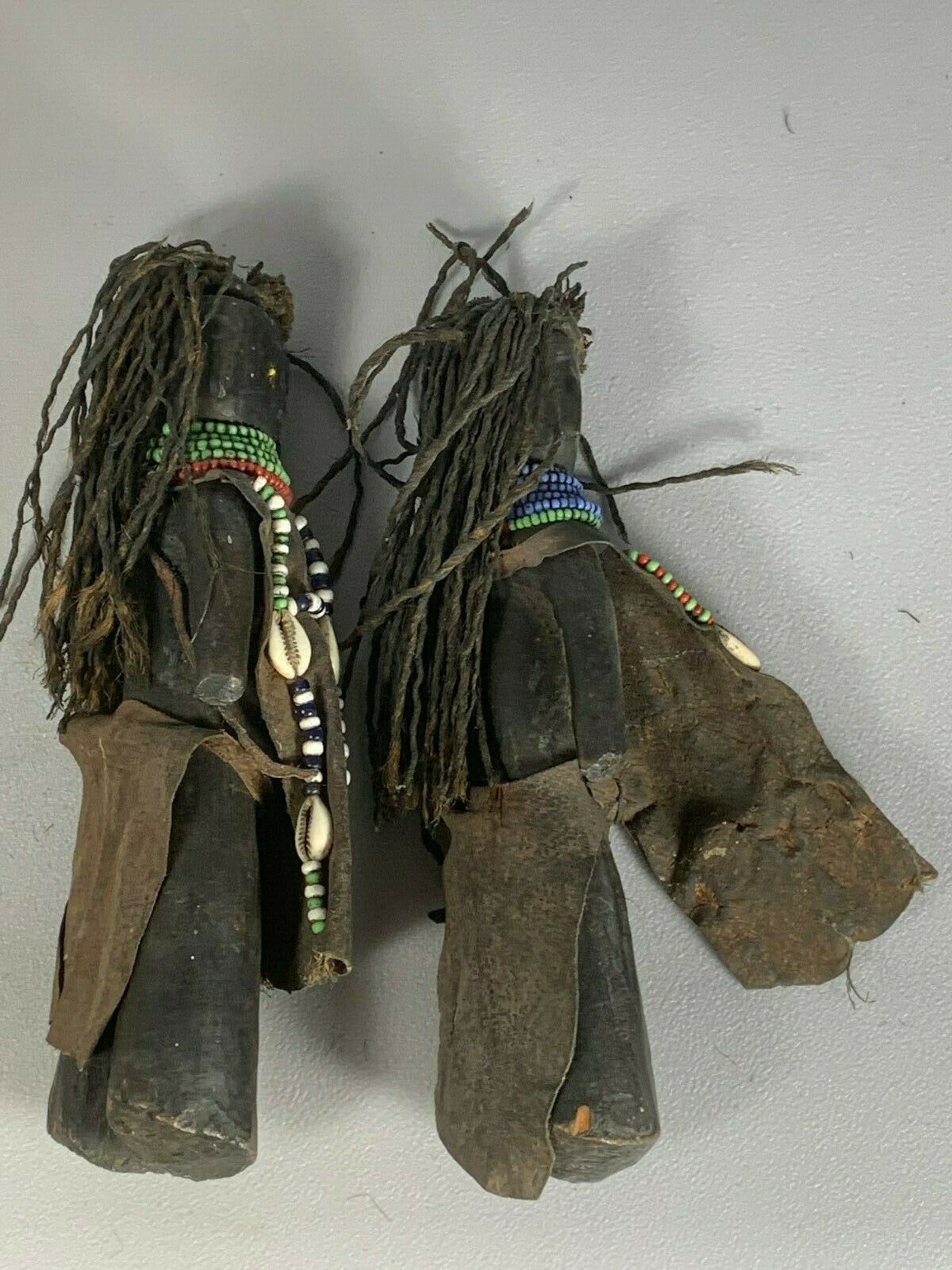 Old Tribal used fertility dolls - SOTHO - South Africa.Hand carved from a single piece of wood, old beads and leatherSize: 22 cm high.