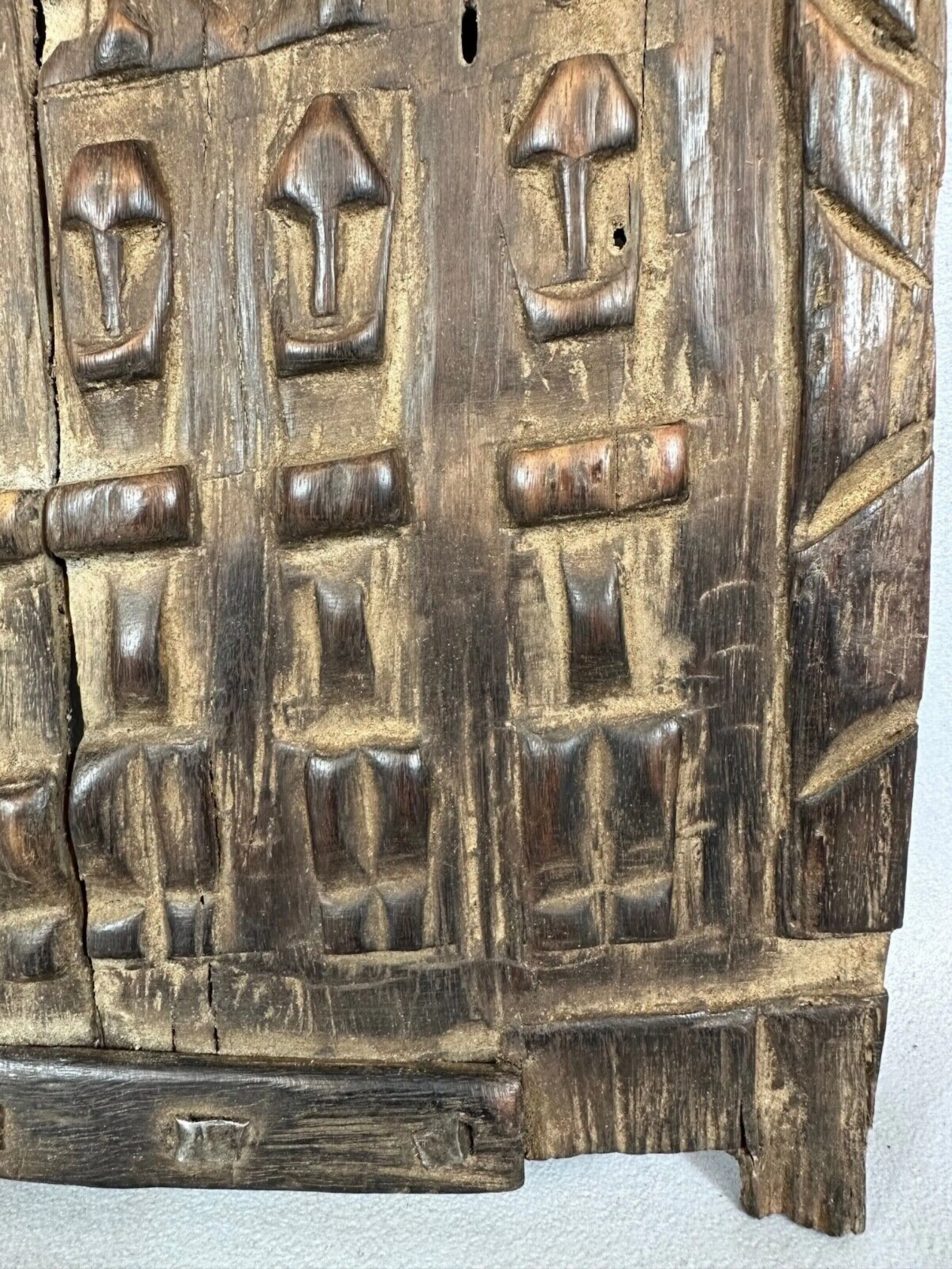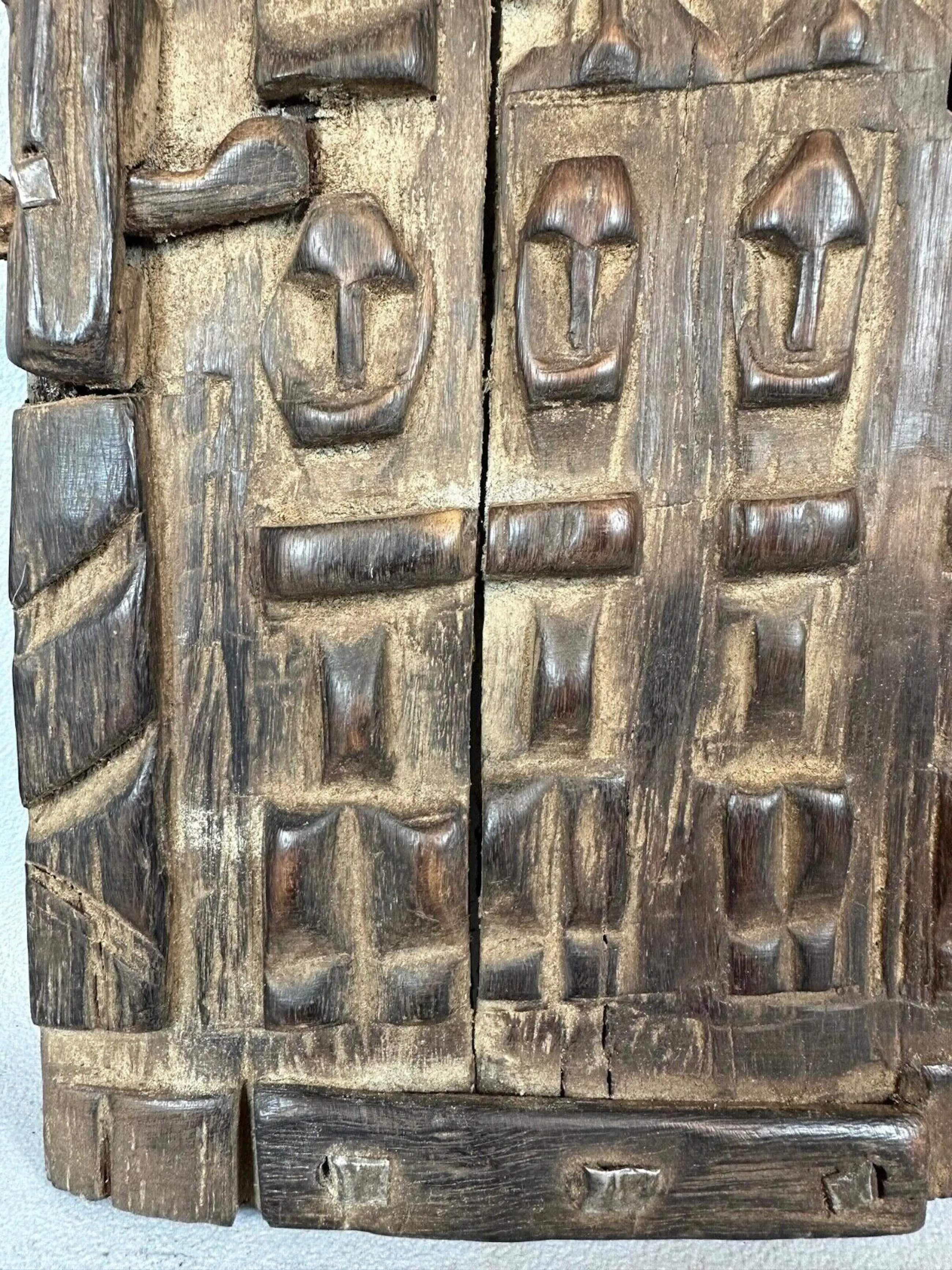 The Dogon are justifiably famous for their doors. Whether complex or plain, figurative or abstract, solid or weathered by the elements and use. Dogon doors are basically carved doorways and are a significant part of ancient West African life. The doors were initially designed to show social standing of the household. For the Agrarian societies of West Africa, granary doors are an especially important representation of wealth and prosperity of the farmer. Dogon people of Mali have created an art form in their granary doors. This amazing door would be fabulous in your home.