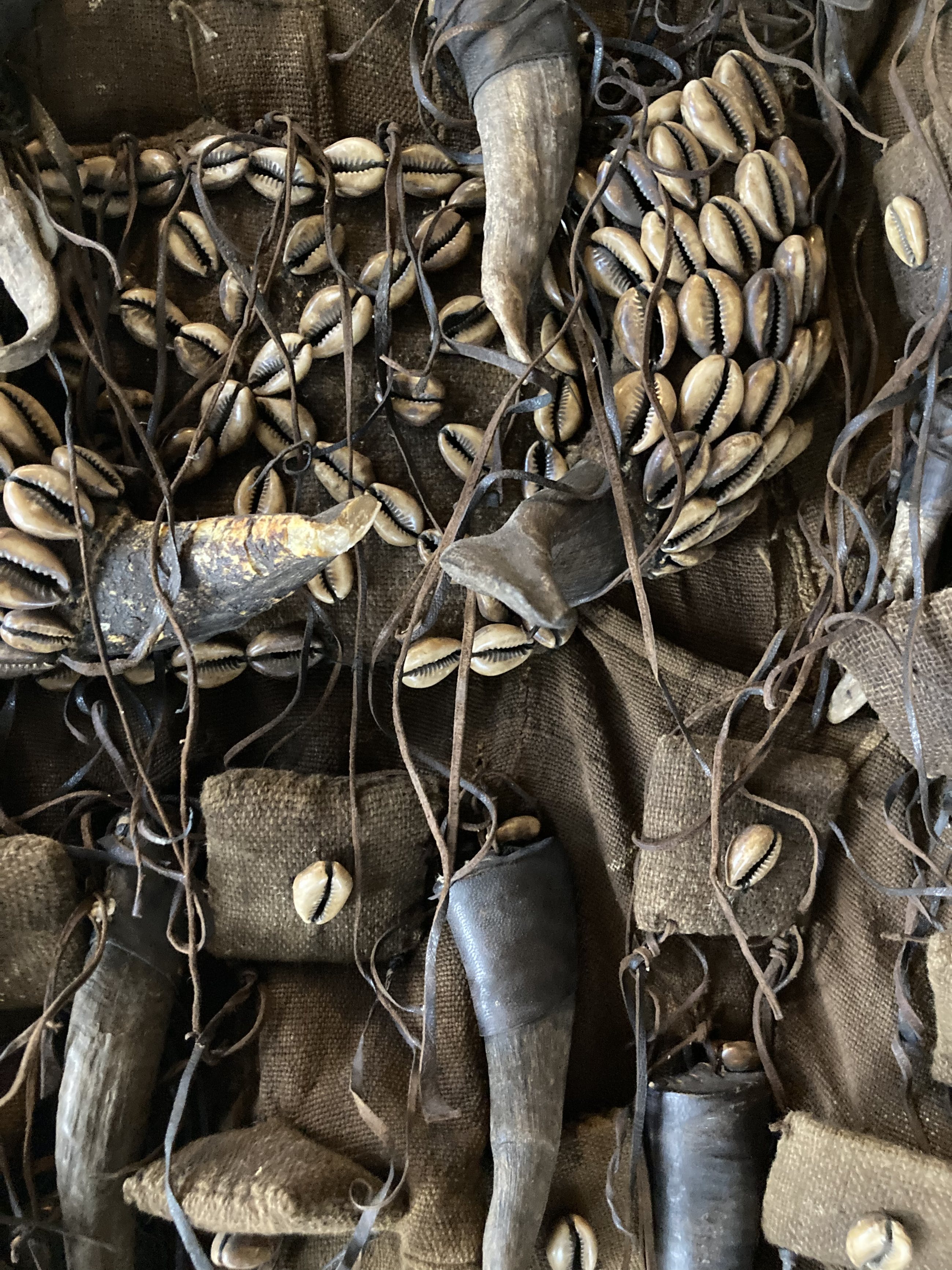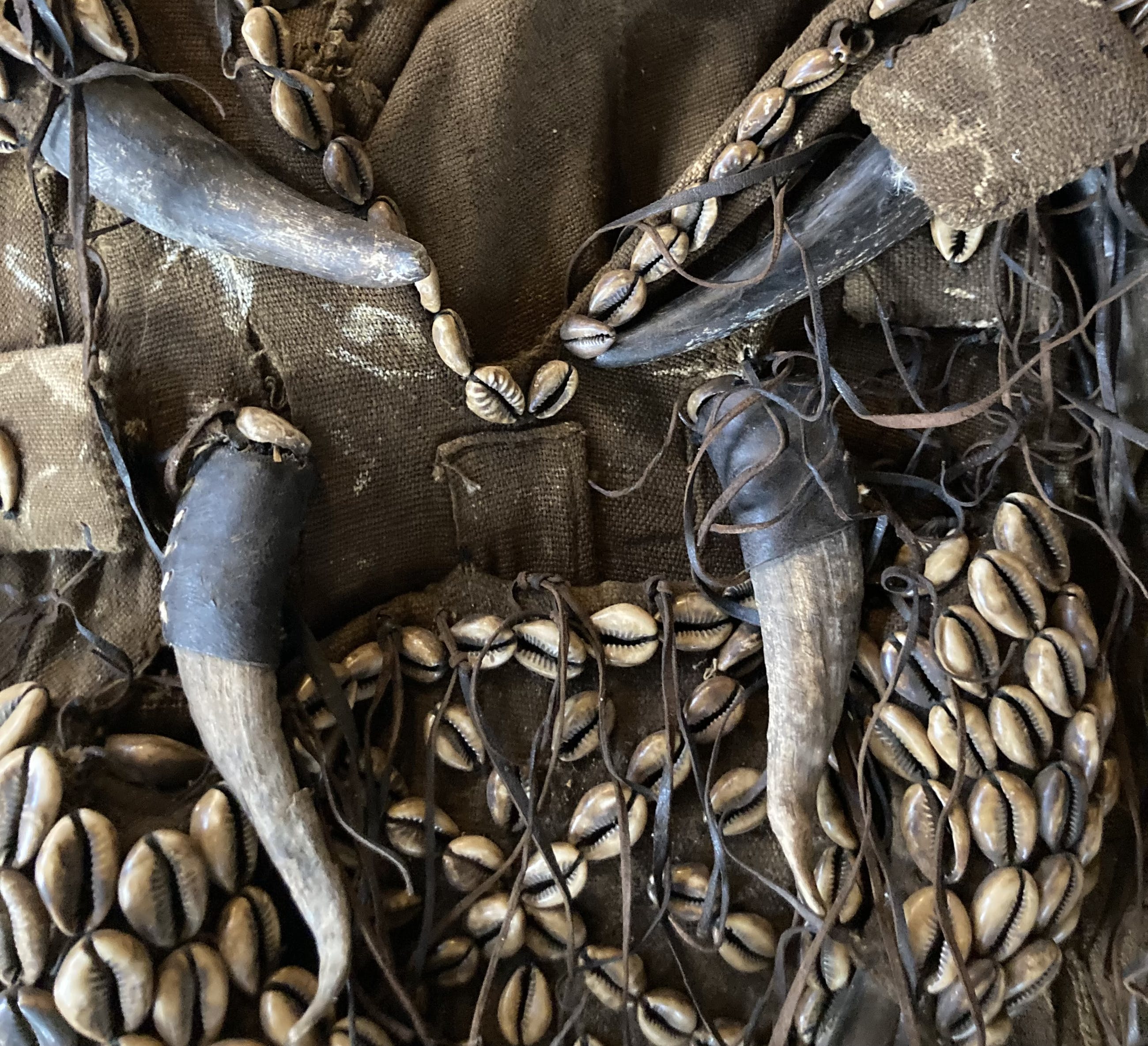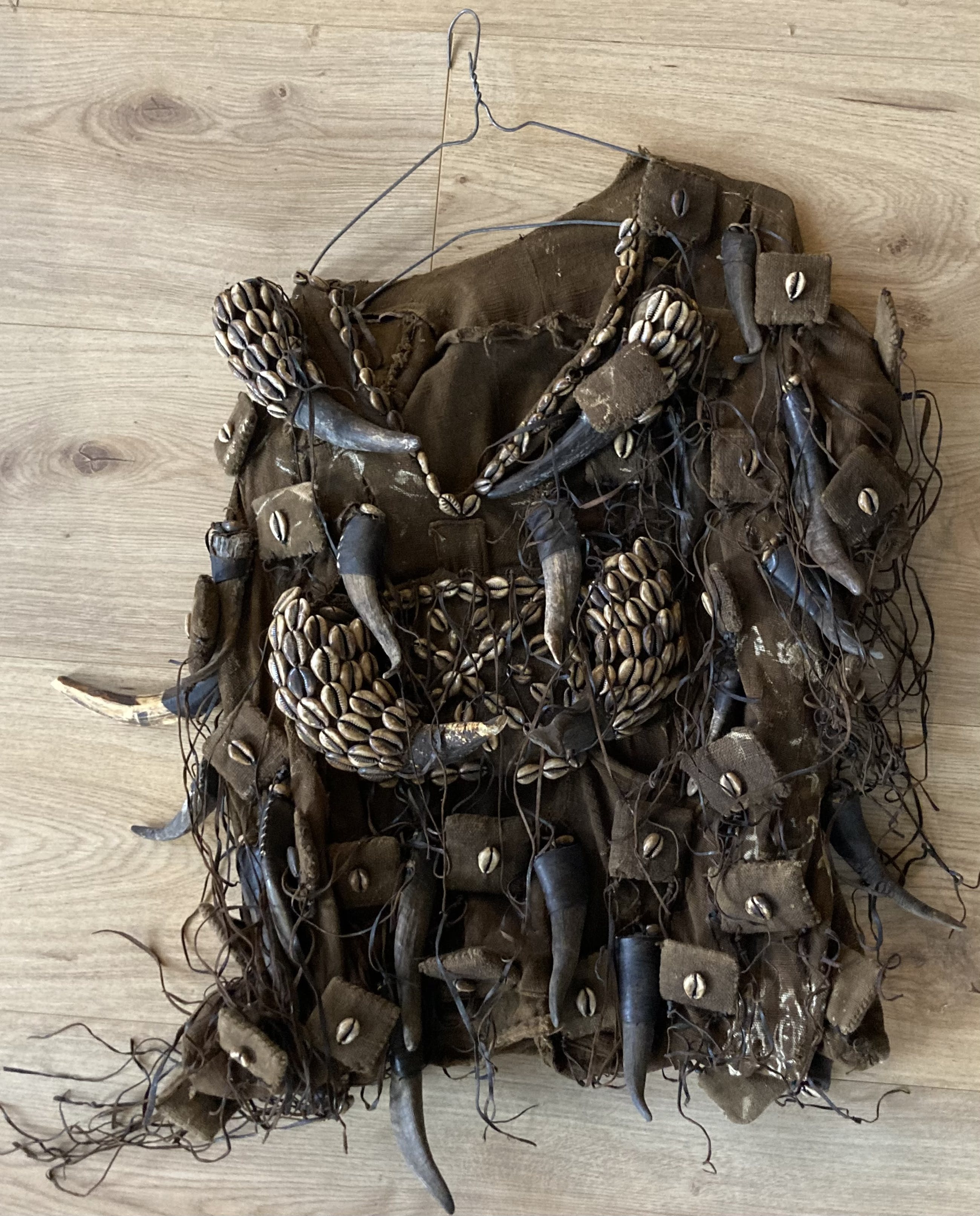 Heel bijzonder Afrikaans stuk. Rijkelijk versierd. Waarschijnlijk gebruikt in de strijd.