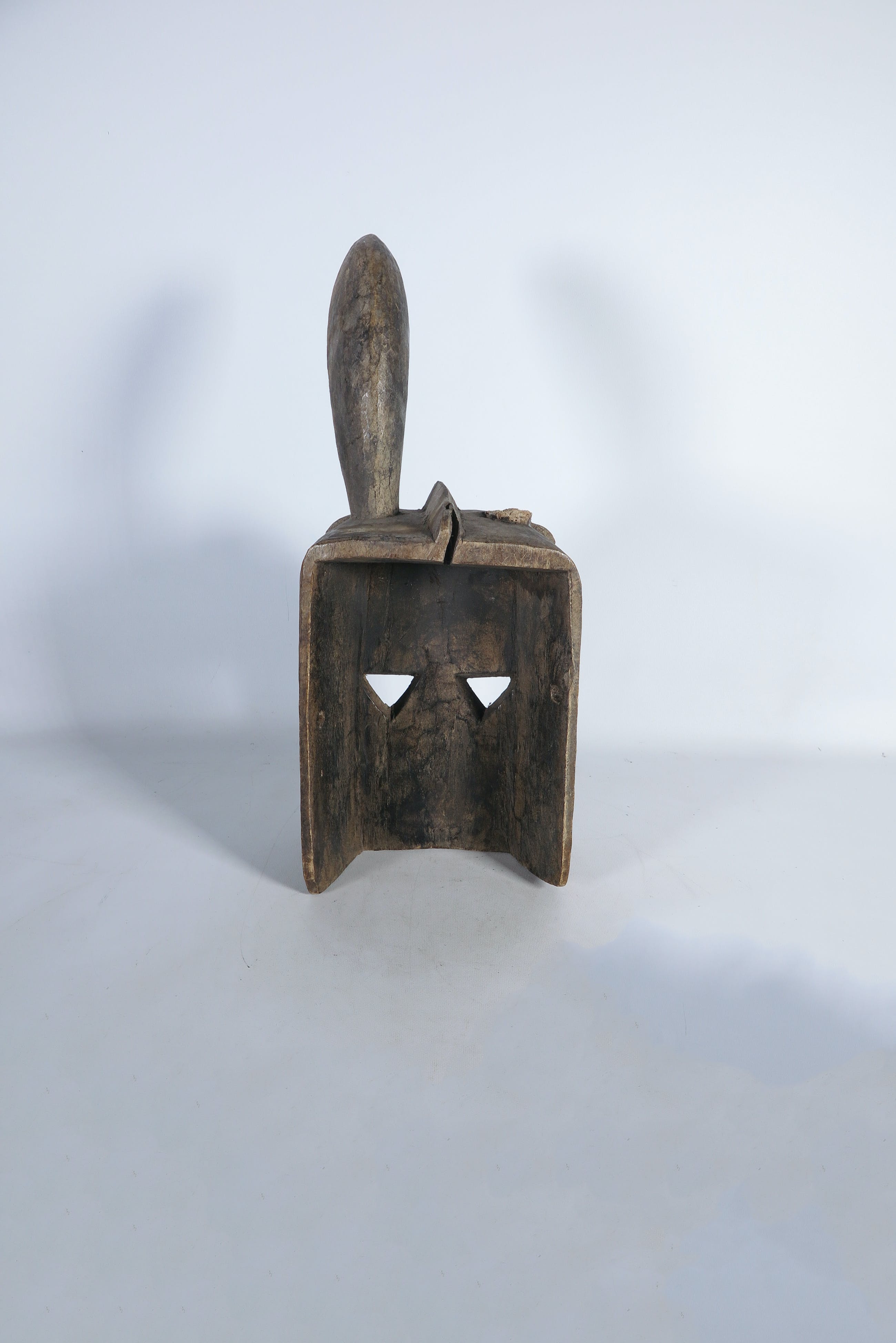 Een masker van de stam Dogon uit Afrika. Het dieren masker is van zwaar hardhout met matte patina. Het masker heeft lange oren (Zie foto's voor meer detail.)