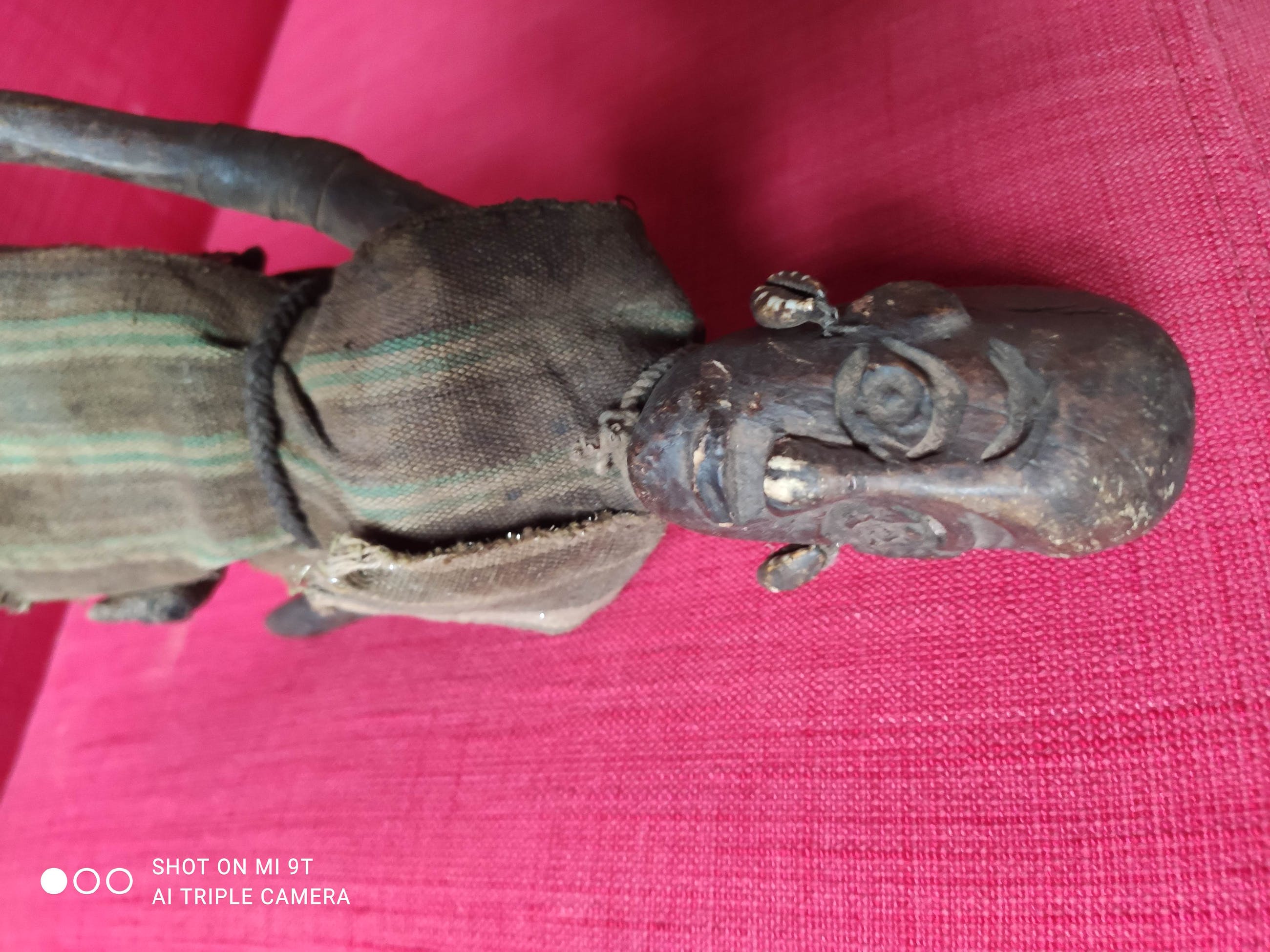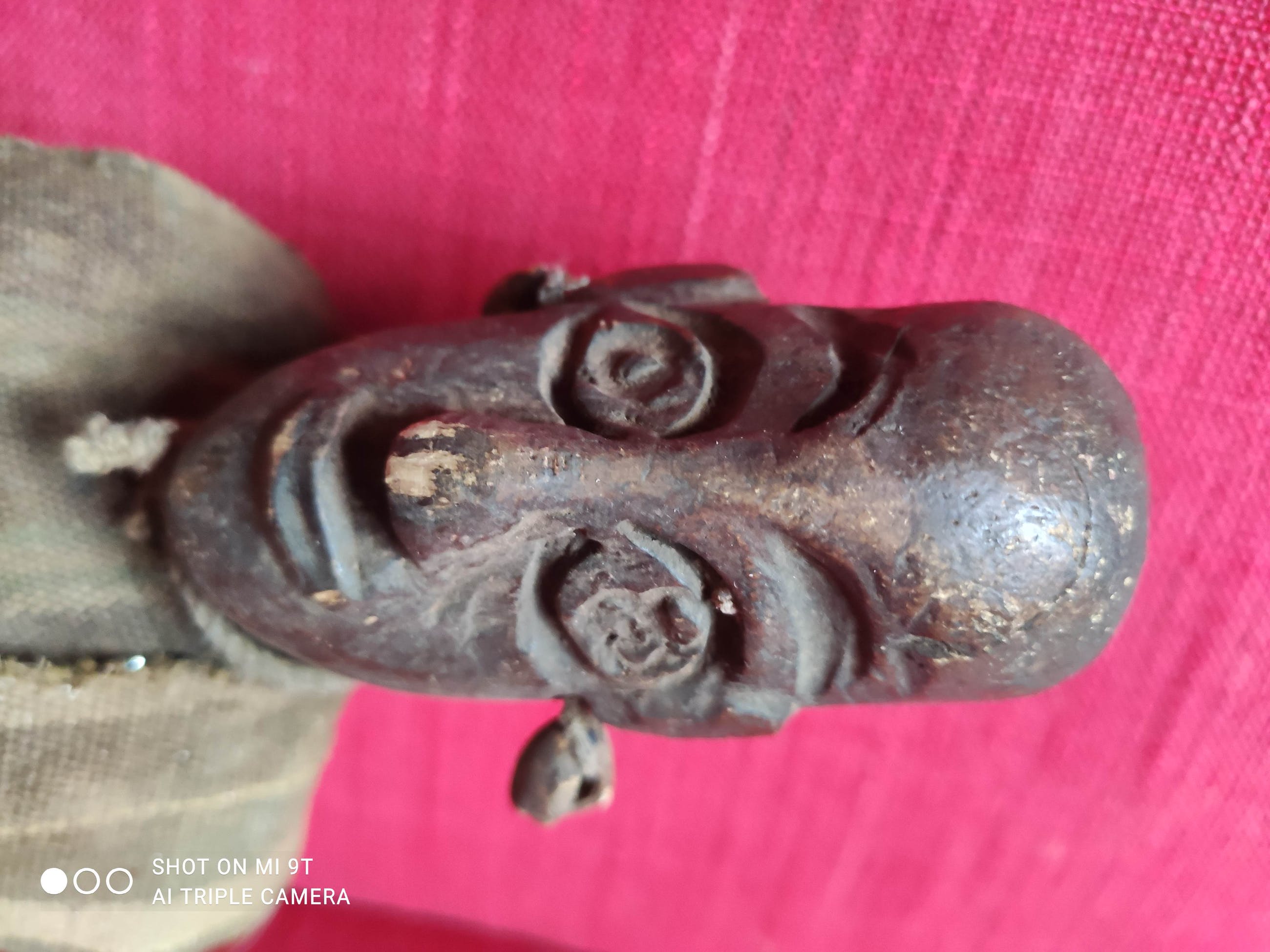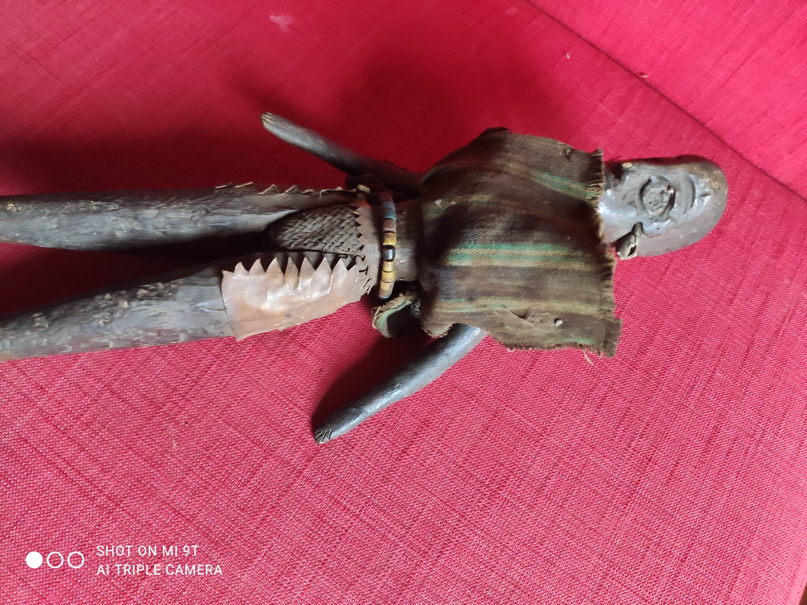 aangeklede traditionele houten pop, met katoen, ketting, oorhangers,