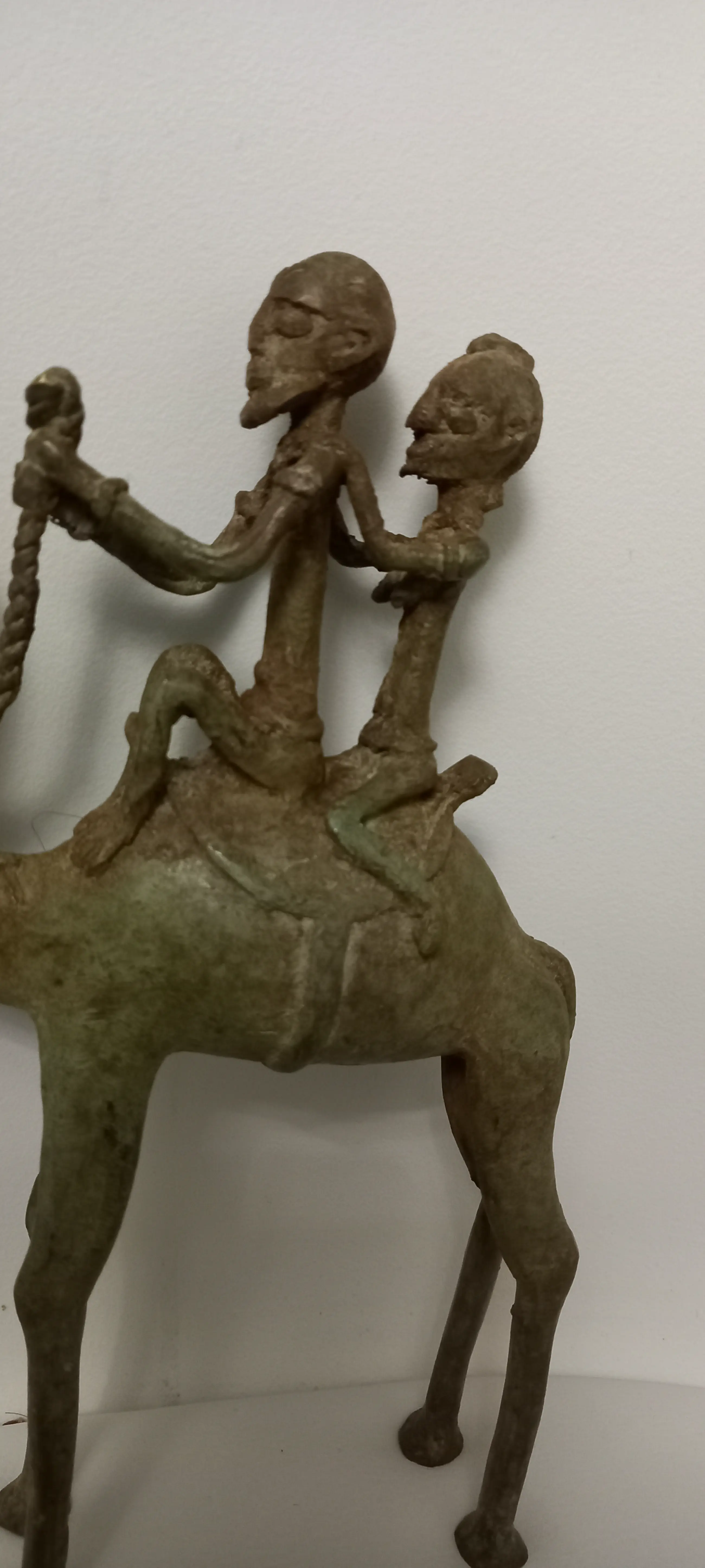 Mythische figuur uit de Dogon-mythologie, het paar gevormd door 2 ruiters en hun kameel. In de Dogon-cultuur is de ruiter een complex symbool. Hij is het symbool van materiële macht, maar hij is ook het instrument van oorlogsavonturen. En tot slot, op een meer metafysische manier, domineert hij de sterfelijke en de fysieke wereld door zijn fysieke en morele kracht te tonen.