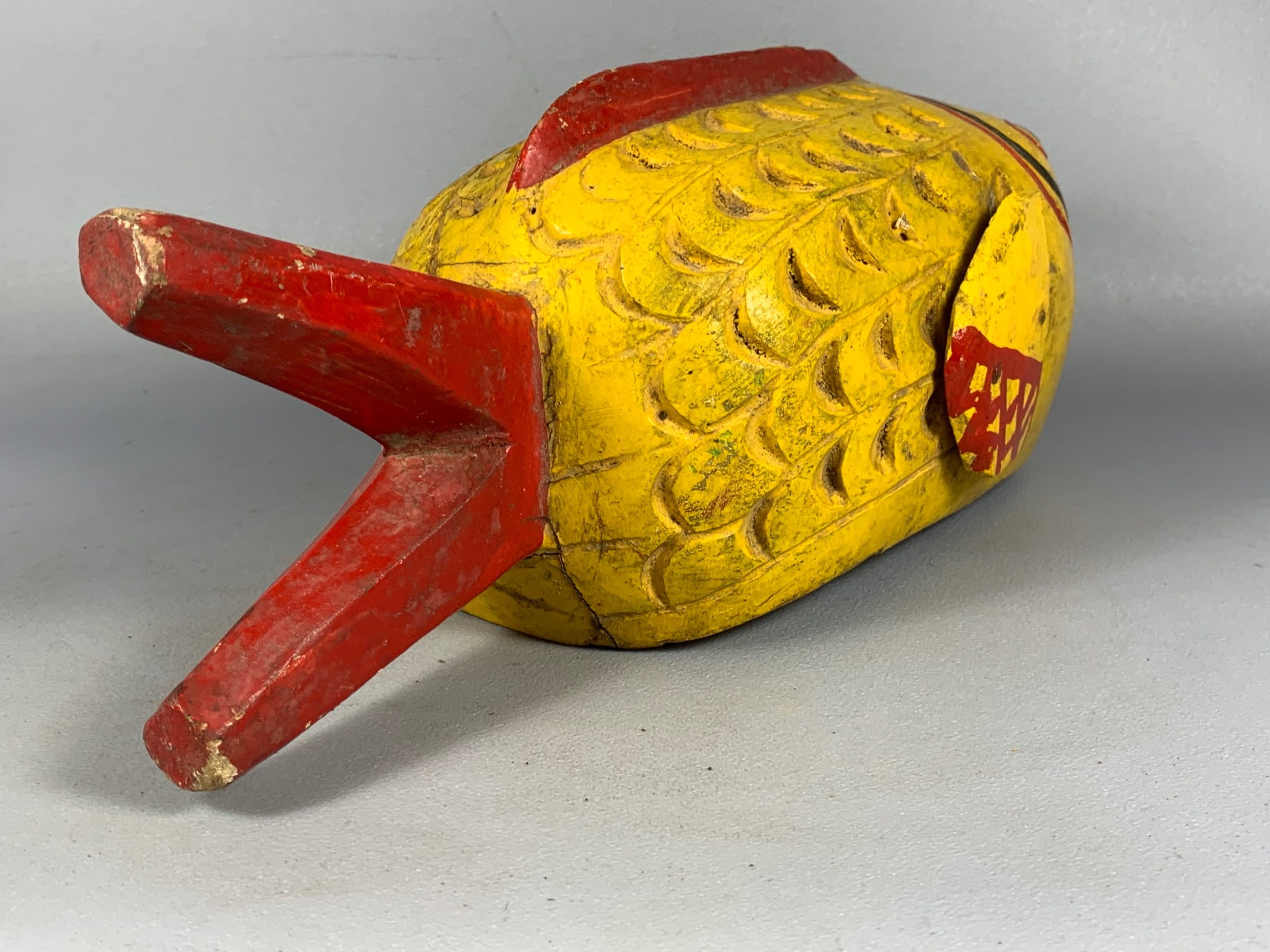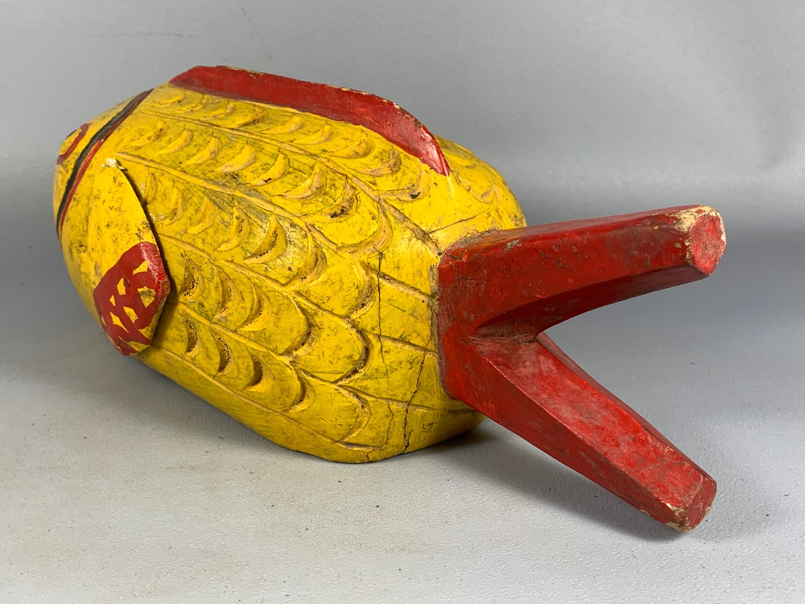 Hand carved from a single piece of colorful painted wood.