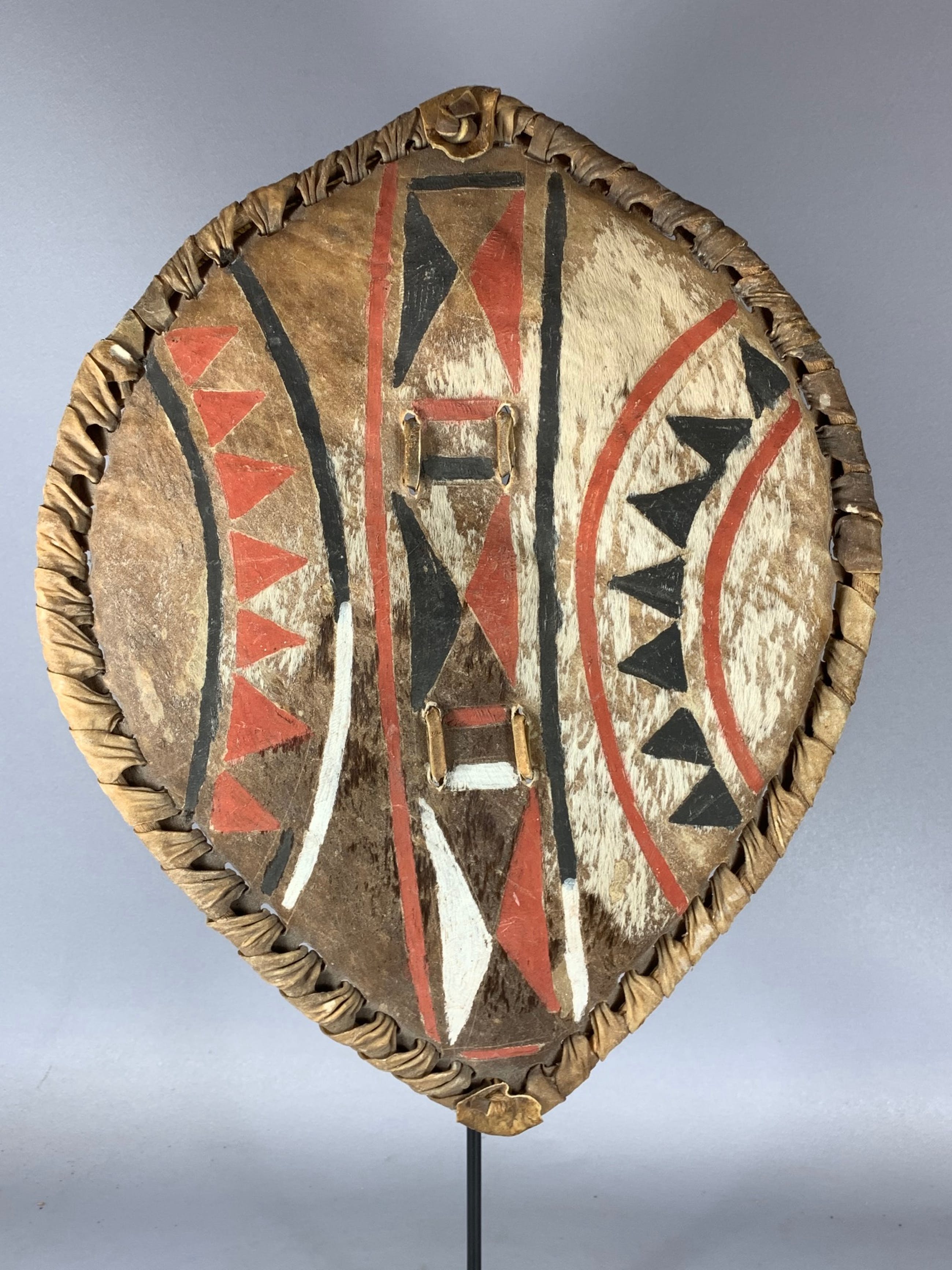 An begin 20th-century Masaai warrior's cow- leather/skin shield from Tanzania.