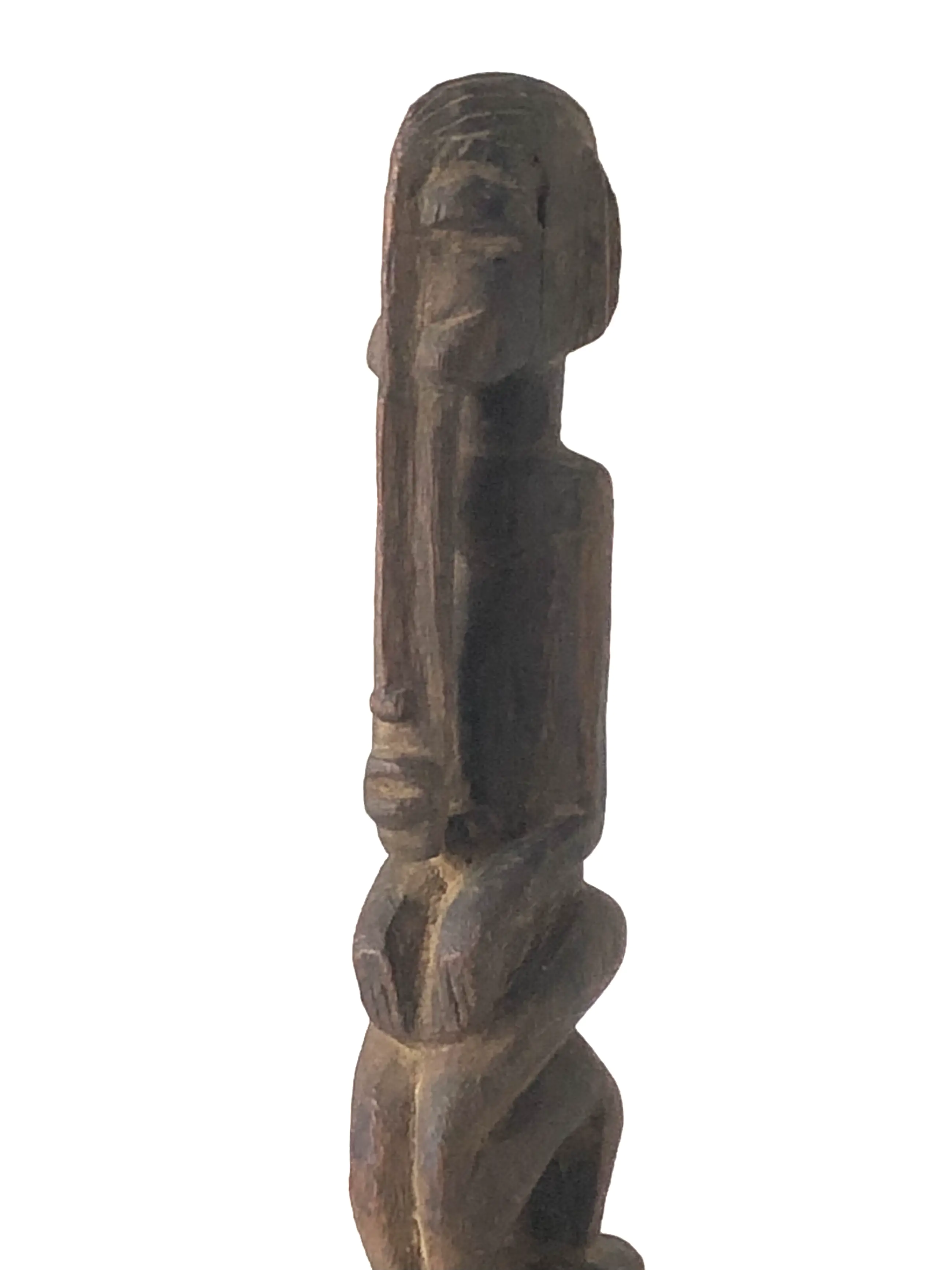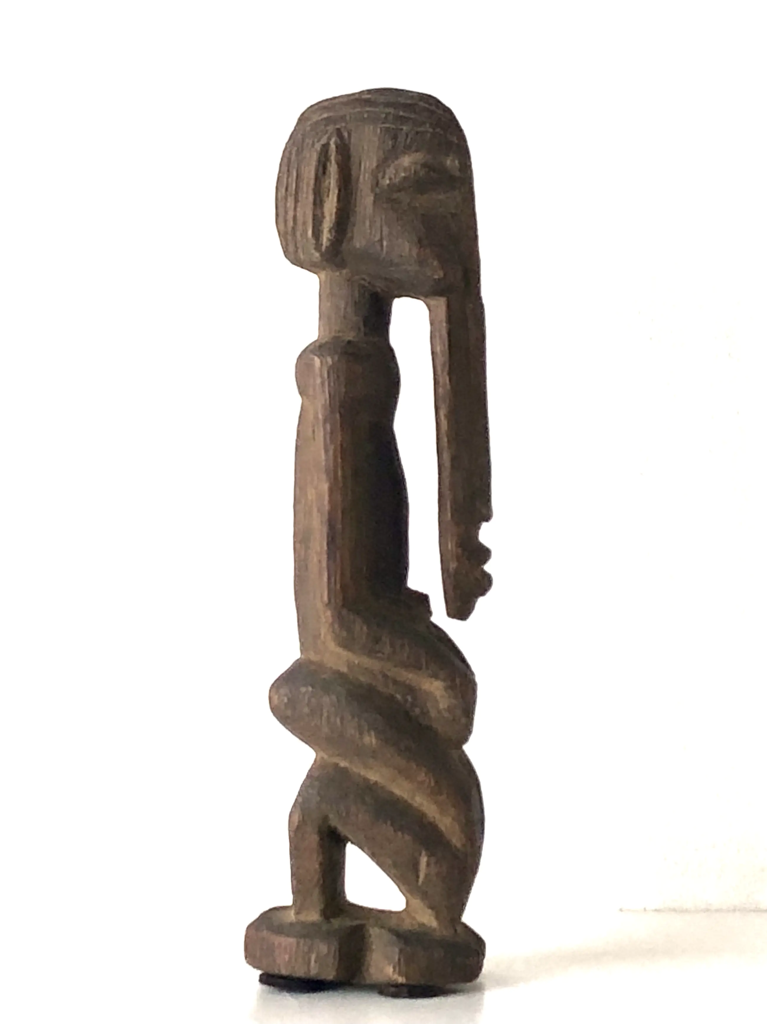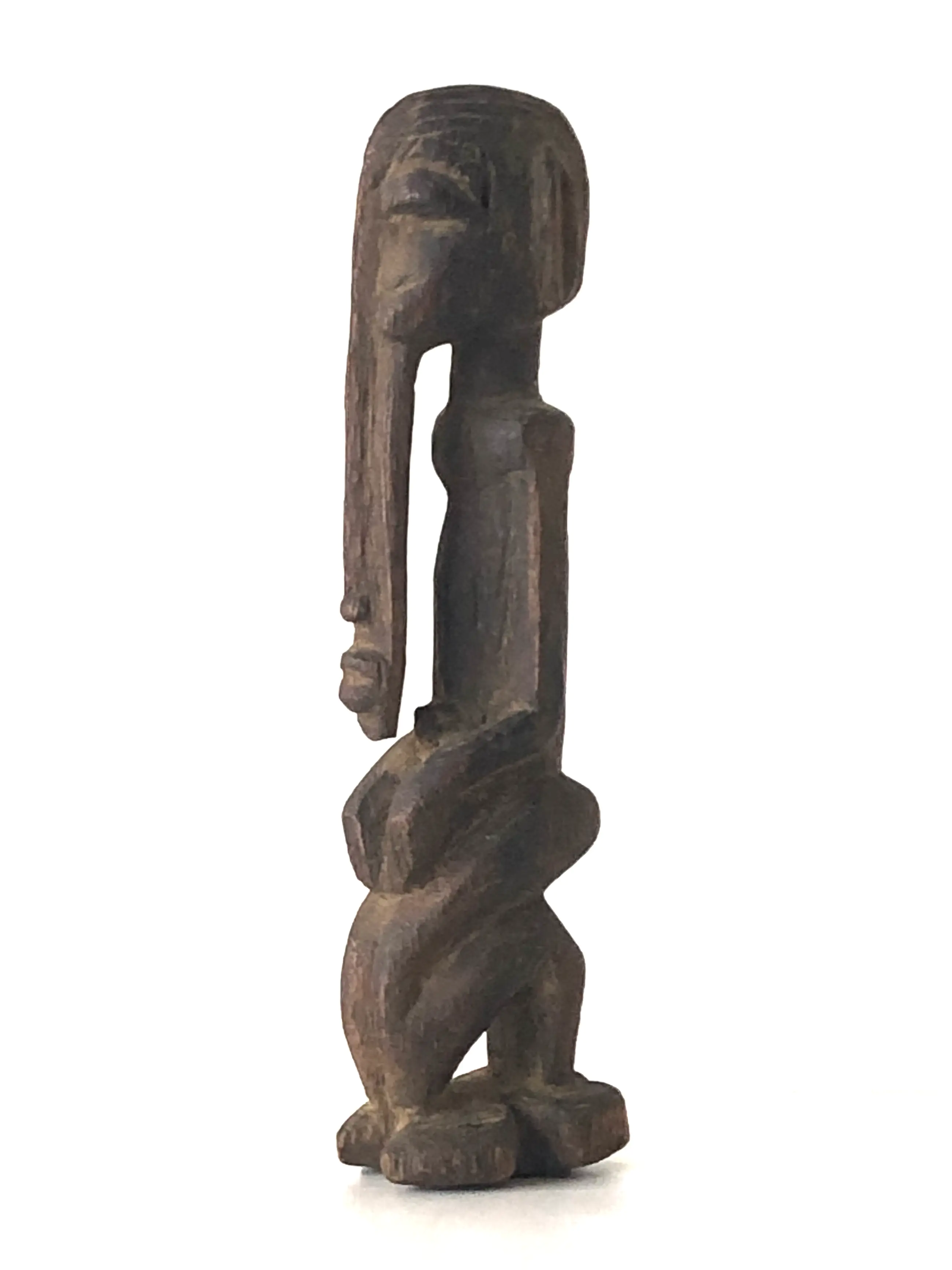 Klein Dogon (Mali) altaar voorouder figuur met het kenmerkende uitgestrekte gezicht dat doorloopt tot het midden van de buste. Een houding van devotie voor de voorouders. Dogon beelden worden meestal in opdracht van een familie gemaakt maar kunnen ook het voorwerp van verering zijn van de hele gemeenschap.