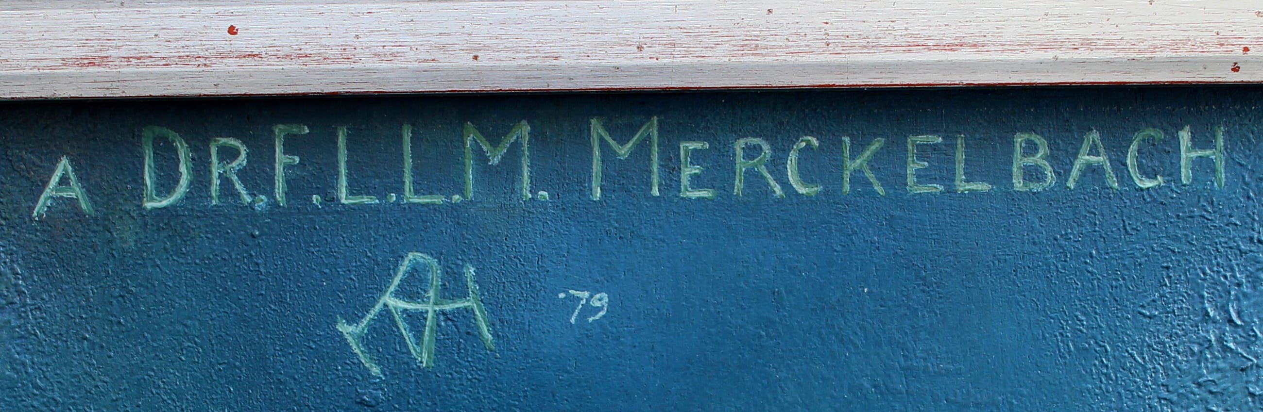Ingelijst werk van Dolf Henkes. Portret van Dr. F.L.L.M Merckelbach met een mantel en het kruis van de Johannieter orde. Gesigneerd met monogram en gedateerd '79 m.b. Dr Merckelbach was de huisarts van de kunstenaar. De authenticiteit van dit werk wordt volledig gegarandeerd. Een certificaat van echtheid kan, op aanvraag, worden gemaild.