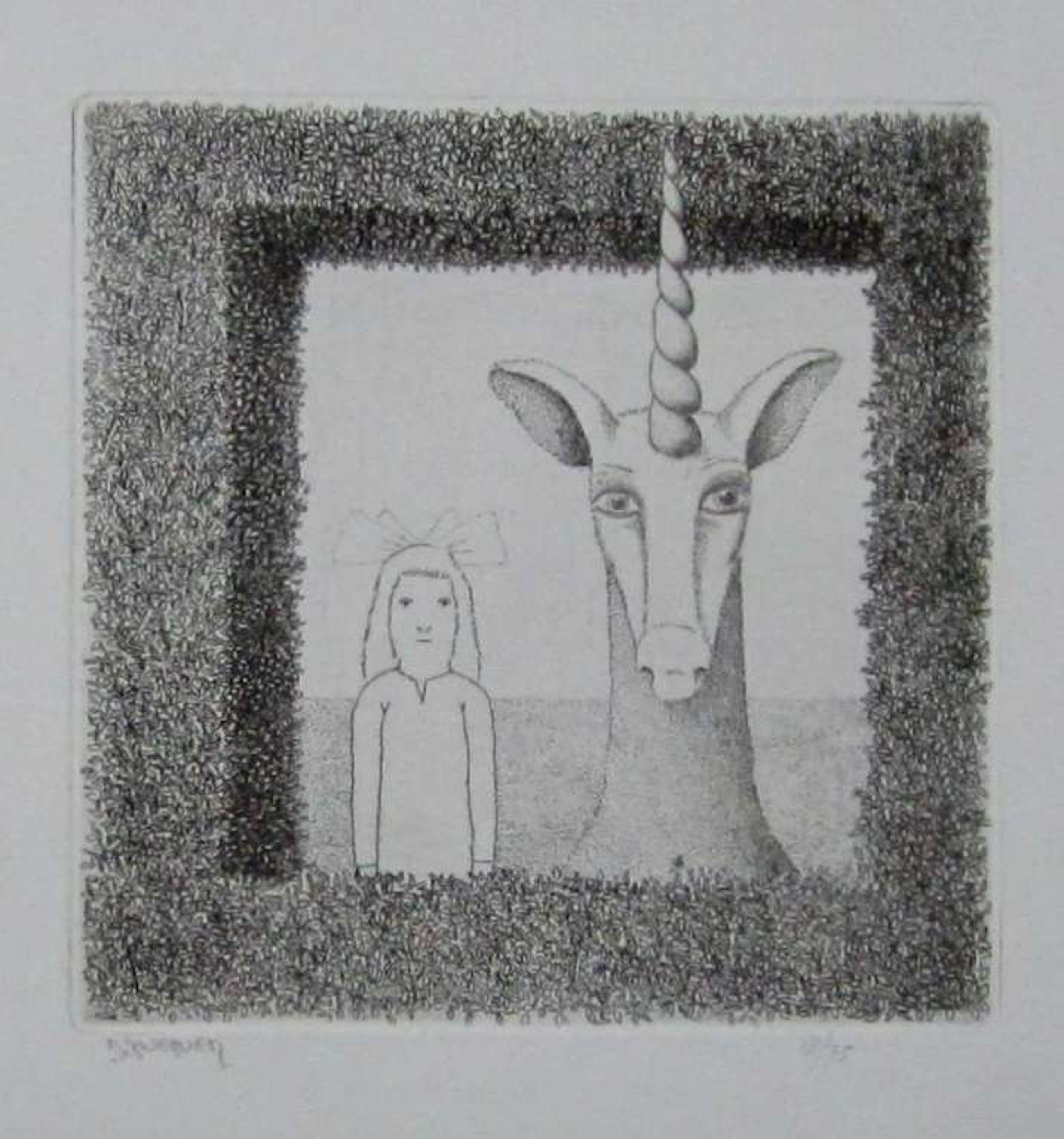 Dolf Zwerver, ets, titel: Eenhoorn, oplagenummer 13/75,