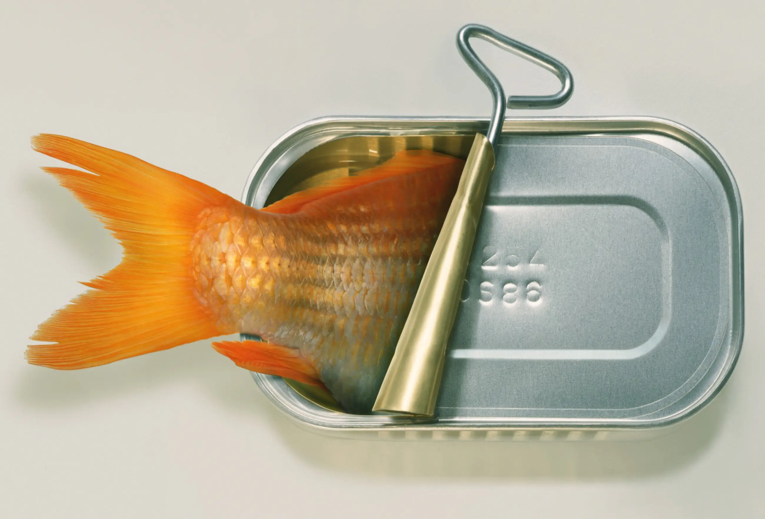 ● Het maken van deze foto's heeft bijna twintig jaar geduurd. De foto van het blikje werd begin jaren negentig in Engeland gemaakt met grootformaat diafilm en de vissen werden halverwege de jaren 2000 digitaal vastgelegd. Ze werden in 2011 digitaal met elkaar verbonden en zijn nog steeds samen.