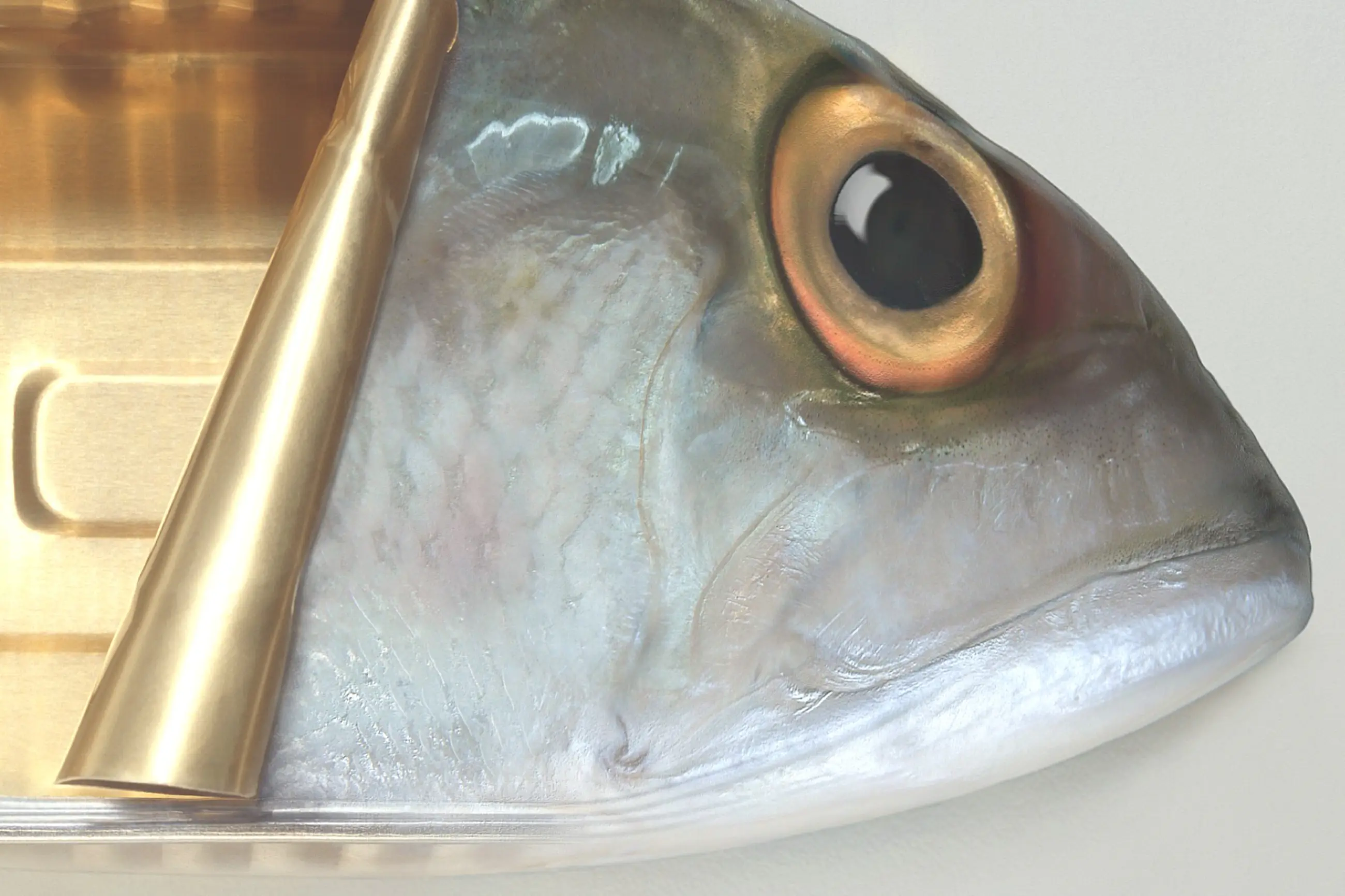 ● Het maken van deze foto's duurde bijna twintig jaar . De foto van het blikje werd begin jaren negentig in Engeland gemaakt op grootformaat transparanten en de vis werd halverwege de jaren 2000 digitaal vastgelegd. Ze trouwden in 2011 achter de computer en zijn nog steeds samen.
