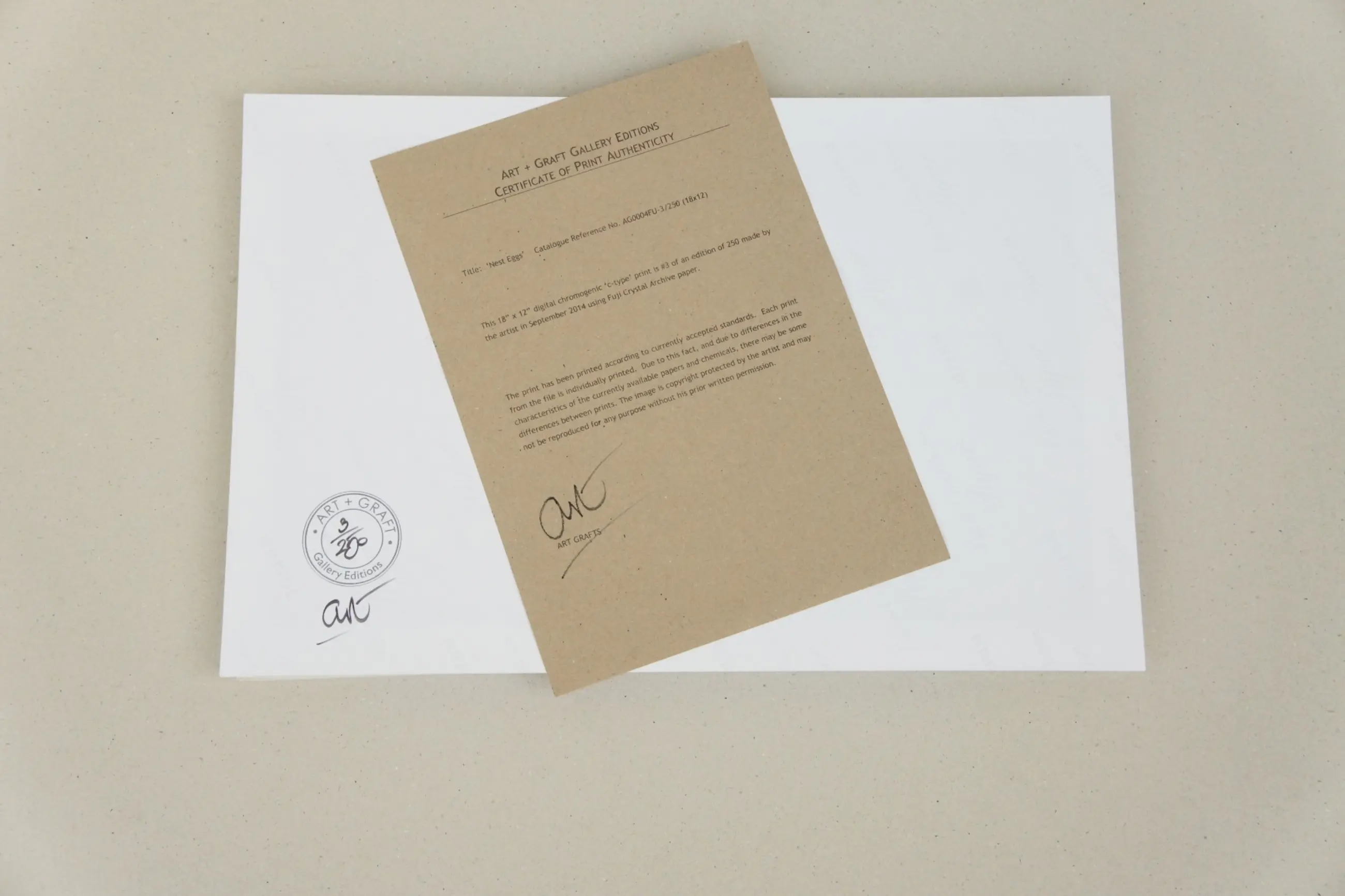 ● Handtekening in zwarte inkt op de achterzijde ● Genummerde kunstenaarsstempel op de achterzijde ● Titel onder de afbeelding ● Ondertekend certificaat van echtheid van de afdruk