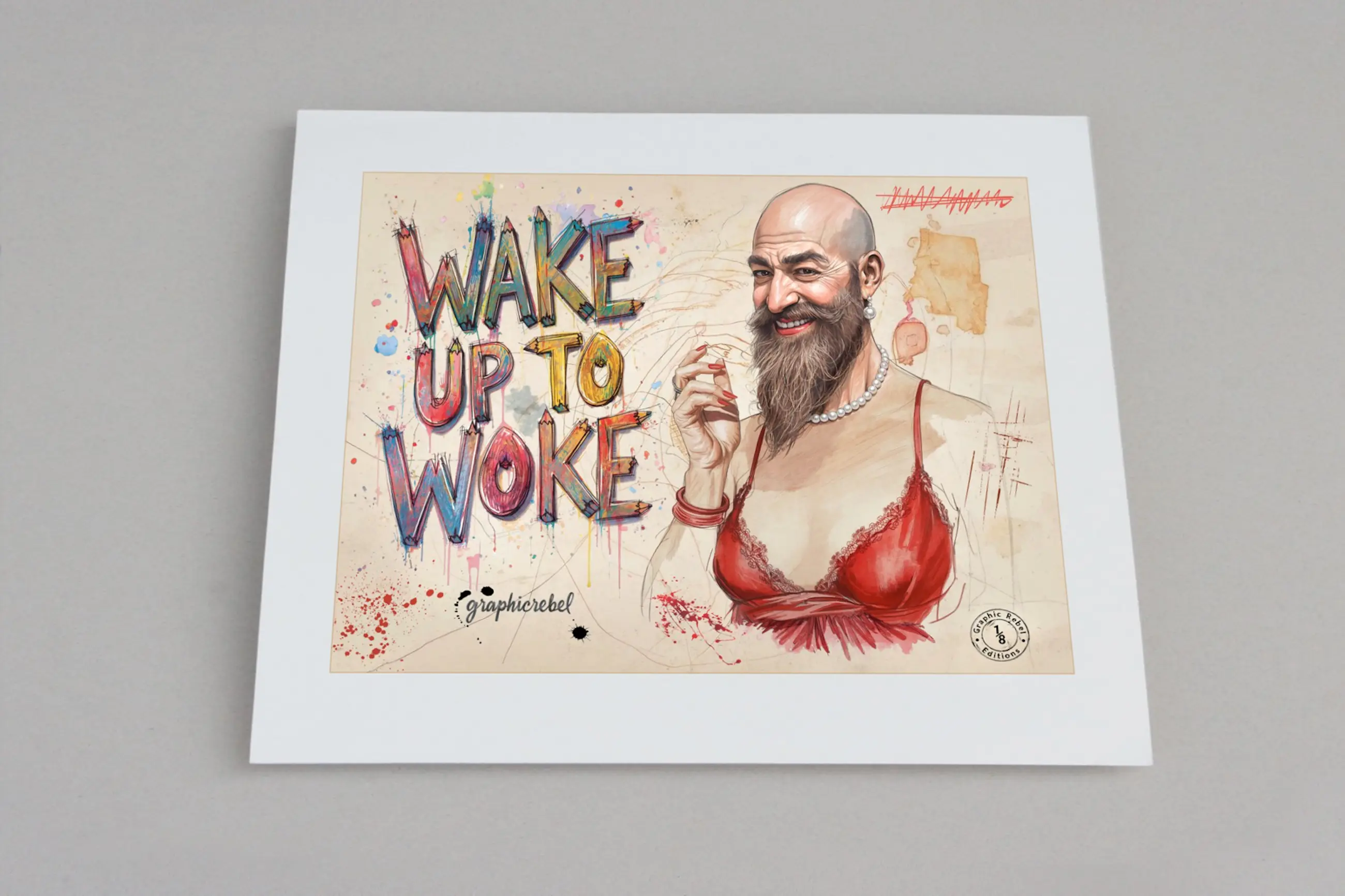 ● *LET OP - deze print is gesigneerd met ' graphicrebel ', het pseudoniem dat Rouse gebruikt voor zijn typografische werken