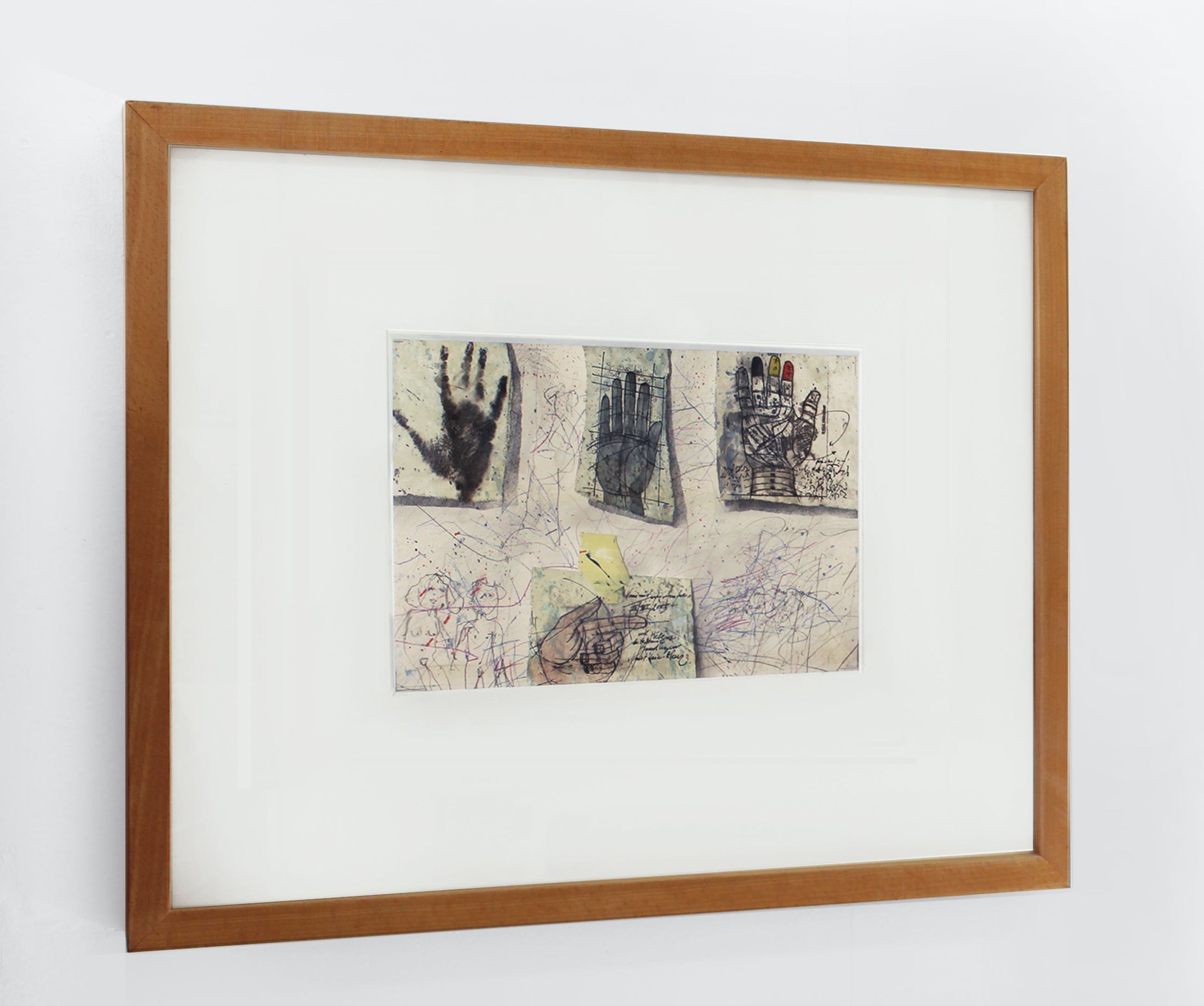 met passe-partout, achter glas en met houten omlijsting