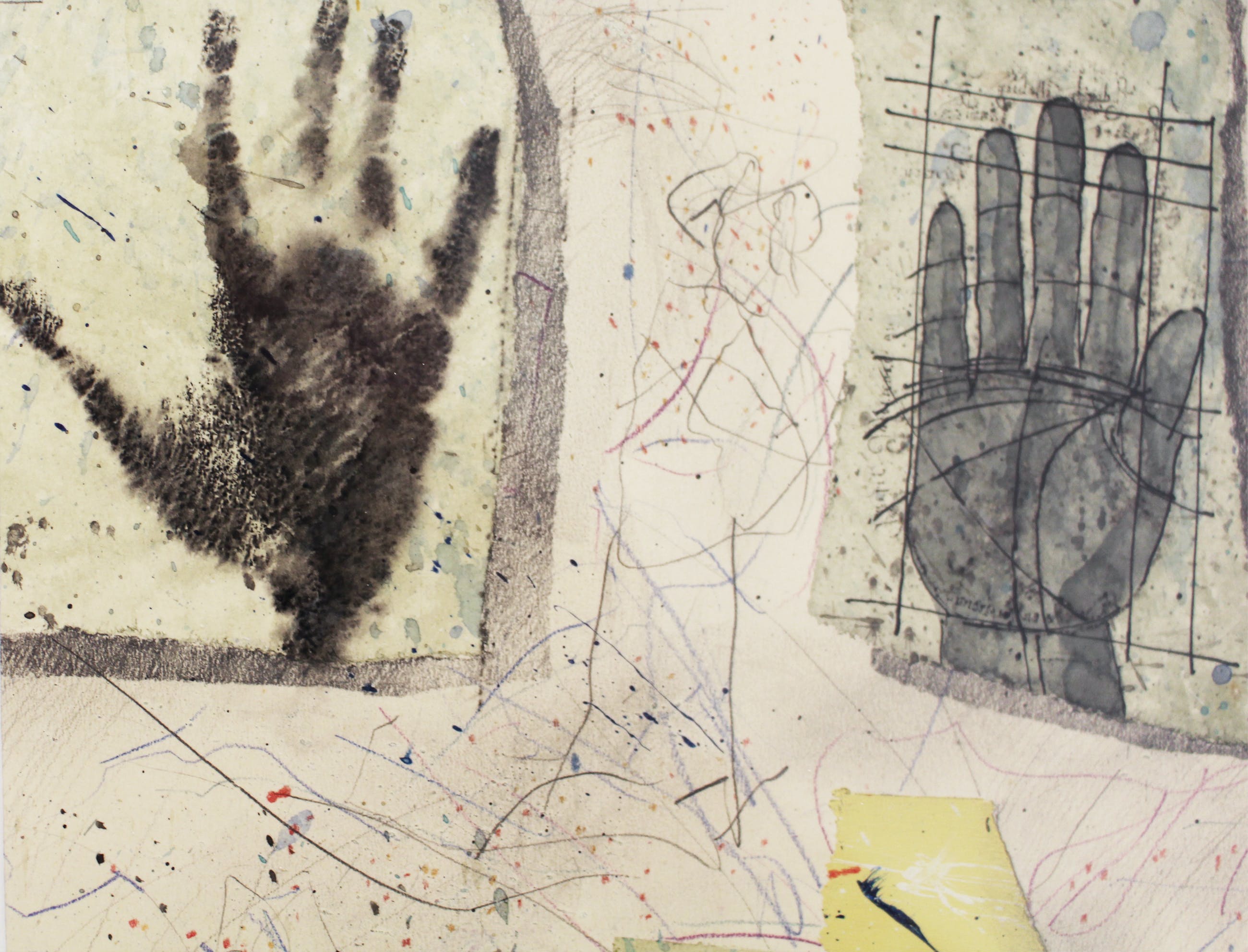 gemengde techniek op papier (gouache inkt, potlood) van Dominique Ampe (Ukkel België 1944 -)