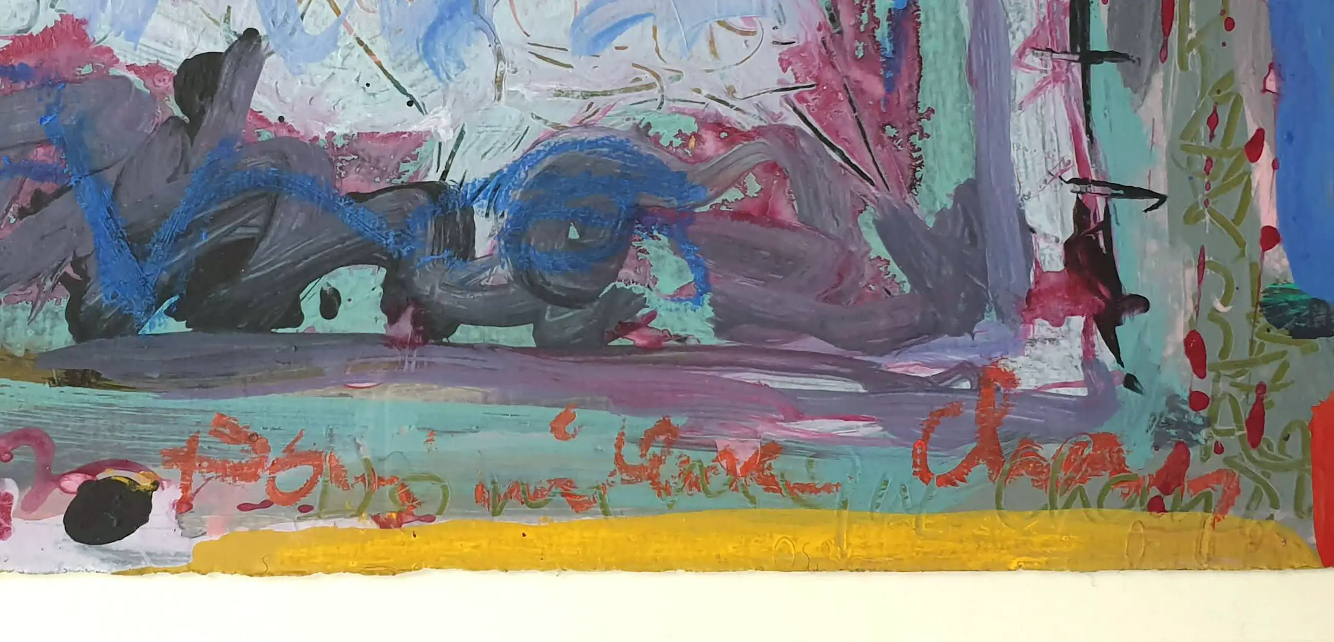 Fraai kleurrijk schilderij van Dominique Chan. Het werk is rechtsonder met de hand gesigneerd door de kunstenaar.
