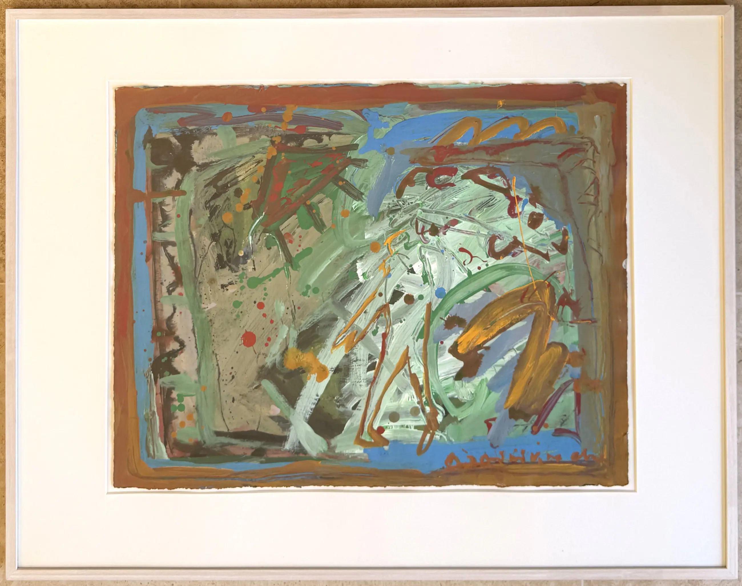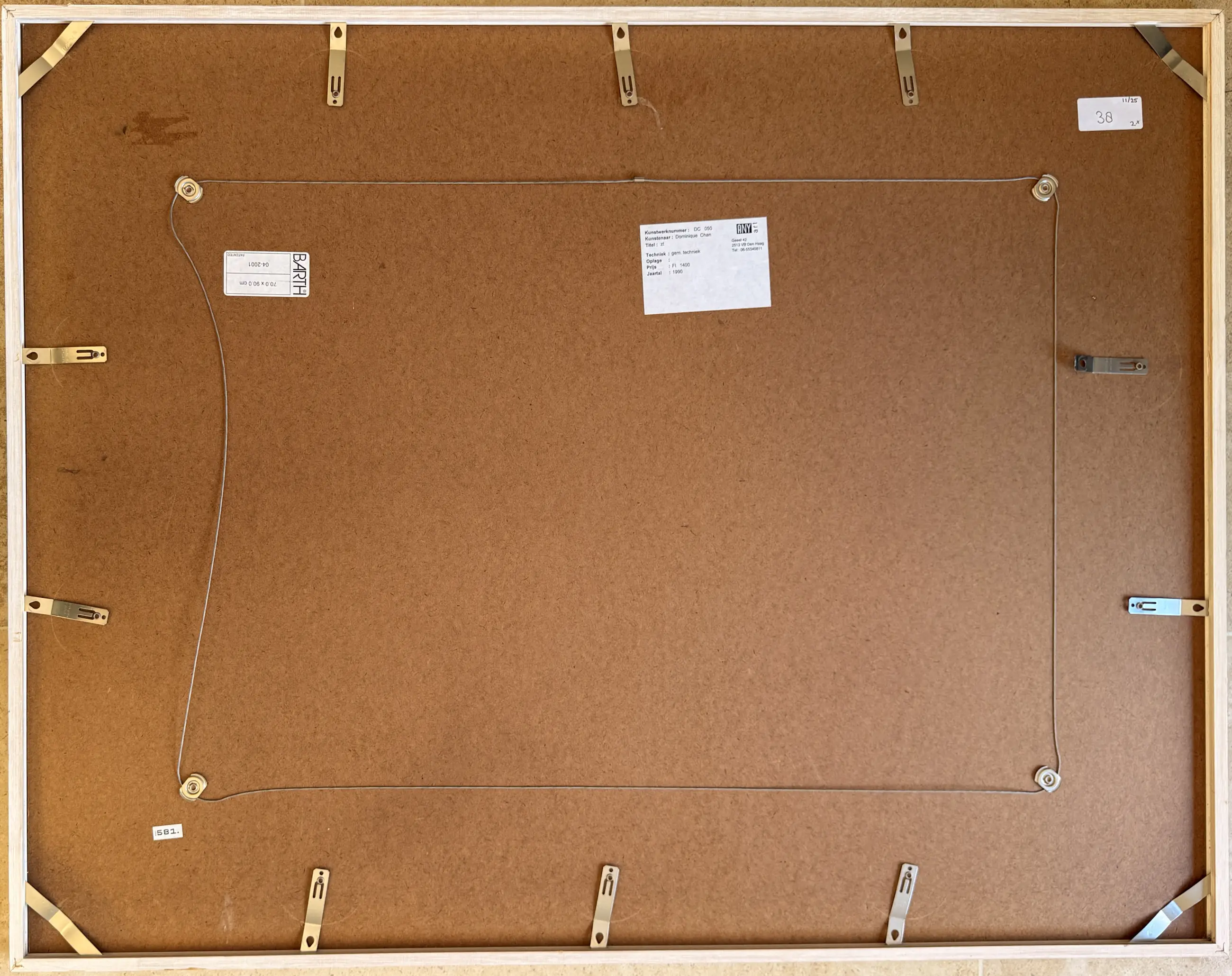 Kunstenaar: Dominique Chan Titel: Zonder titel Periode: 1990 Techniek: Acryl op papier Oplage: Unicum Gesigneerd: Rechtsonder Afwerking: Ingelijst Afmeting voorstelling (HxB): 52 x 67 cm Afmeting lijst (HxB): 72 x 92 cm Conditie werk: Goed Conditie lijst: Gebruikt Referentie: ZK3001434