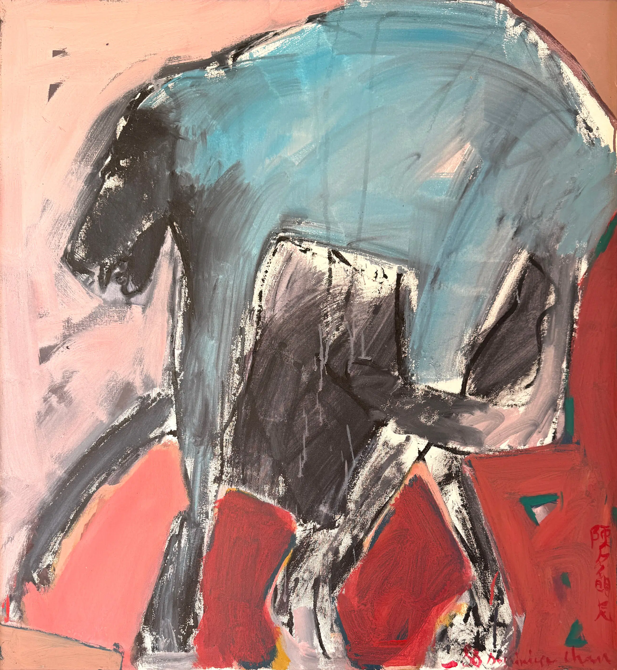 Kunstenaar: Dominique Chan Titel: Zonder titel Periode: 1988 Techniek: Acryl op doek Oplage: Unicum Gesigneerd: Rechtsonder Afwerking: Ingelijst Afmeting voorstelling (HxB): 90 x 85 cm Afmeting lijst (HxB): 94 x 88 cm Conditie werk: Goed Conditie lijst: Gebruikt Referentie: ZK3001442