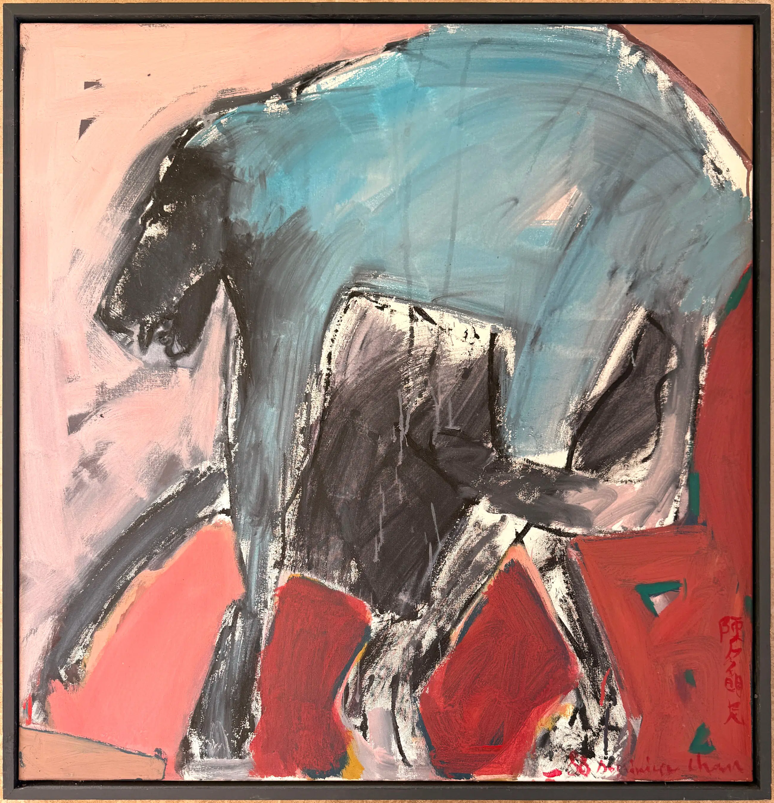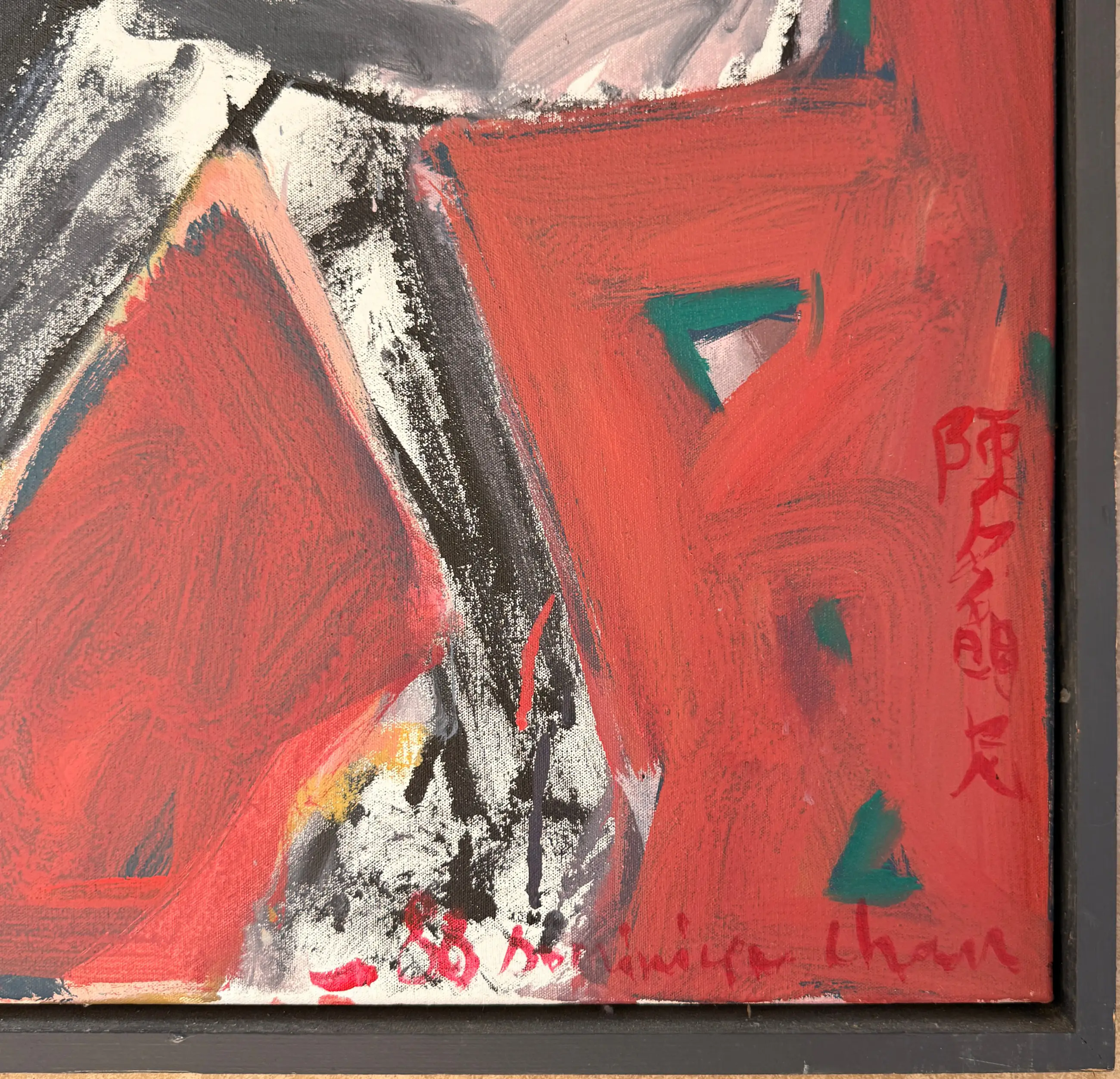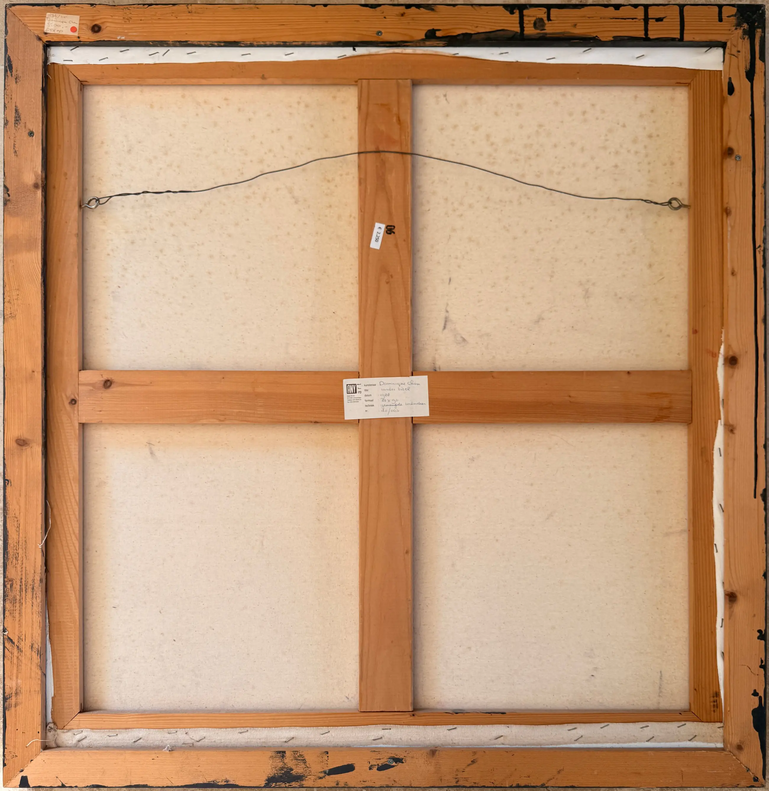 Kunstenaar: Dominique Chan Titel: Zonder titel Periode: 1988 Techniek: Acryl op doek Oplage: Unicum Gesigneerd: Rechtsonder Afwerking: Ingelijst Afmeting voorstelling (HxB): 90 x 85 cm Afmeting lijst (HxB): 94 x 88 cm Conditie werk: Goed Conditie lijst: Gebruikt Referentie: ZK3001442