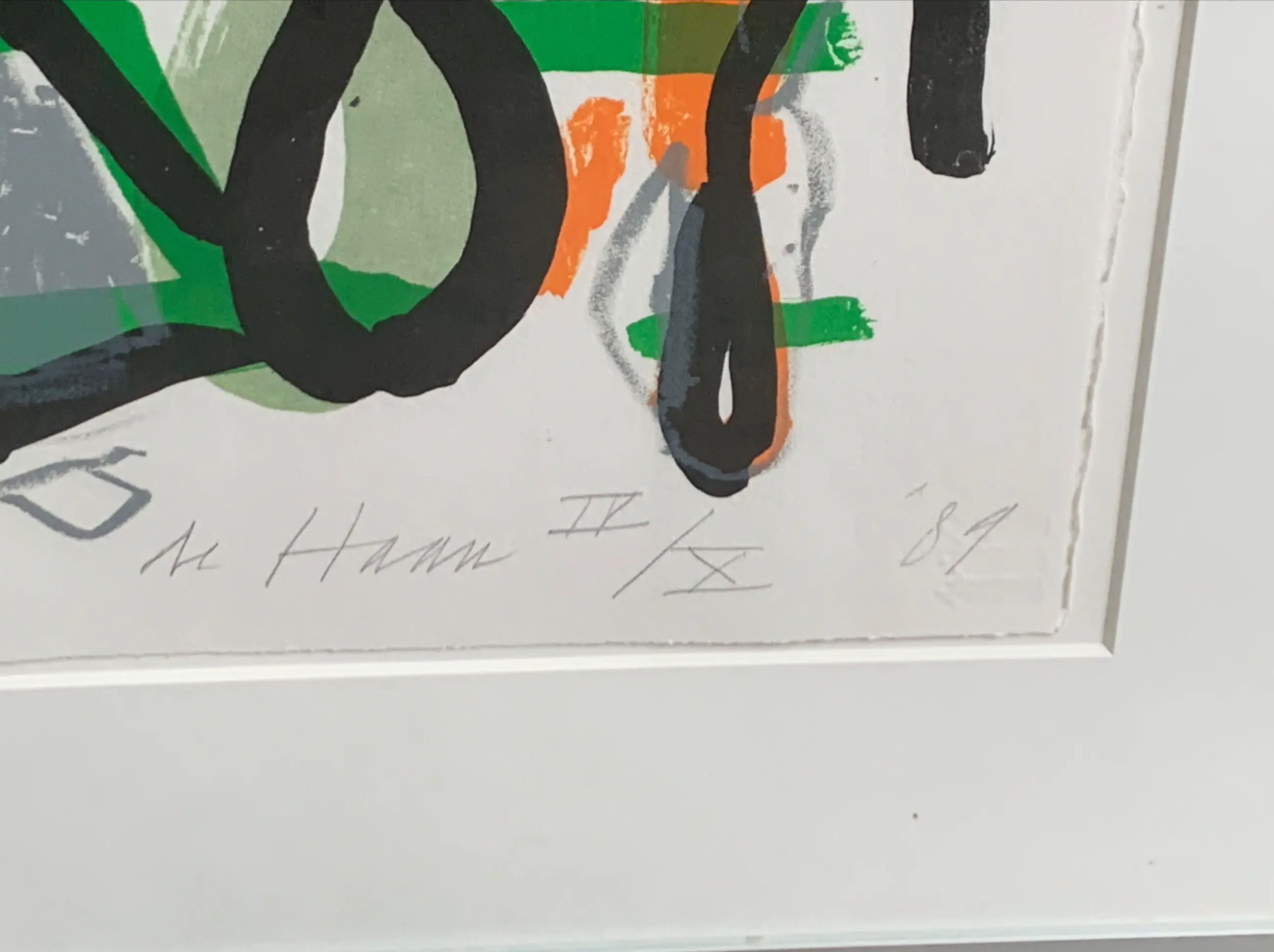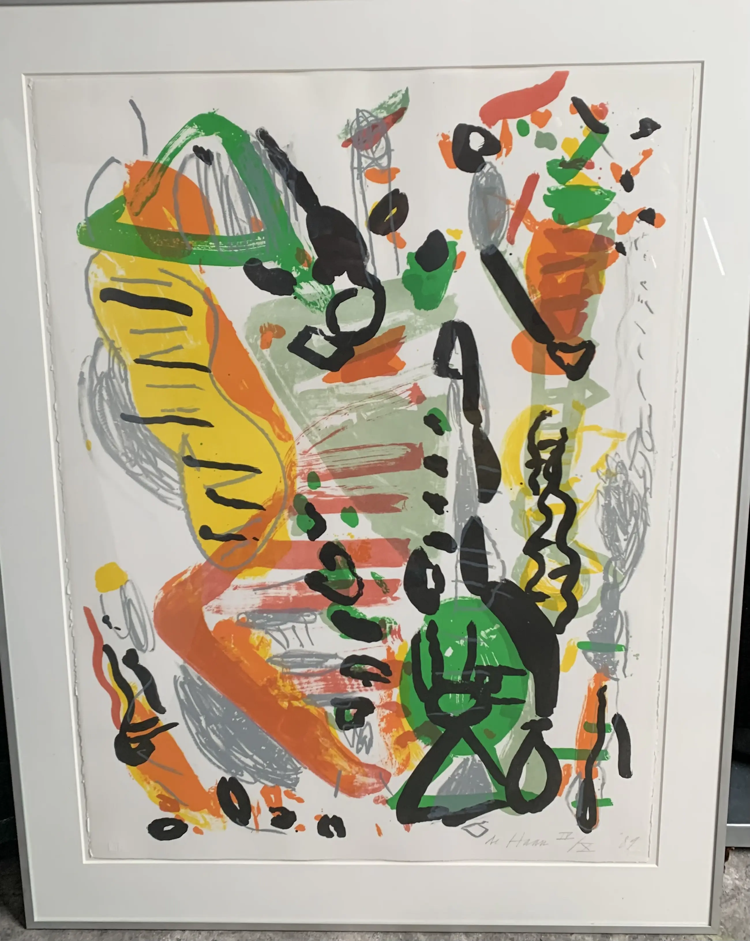 Een zeefdruk van dominique chan uit 1989 Met als titel “de haan”