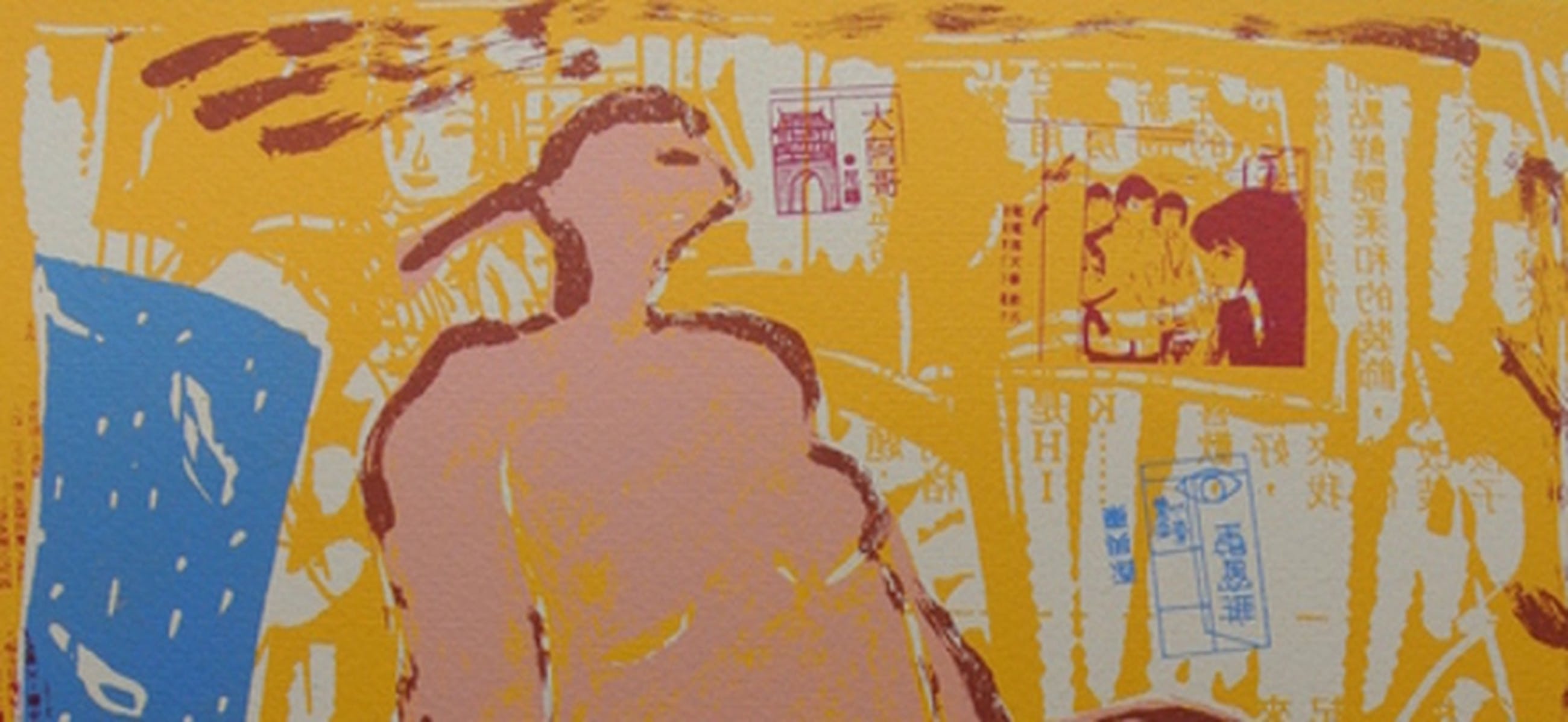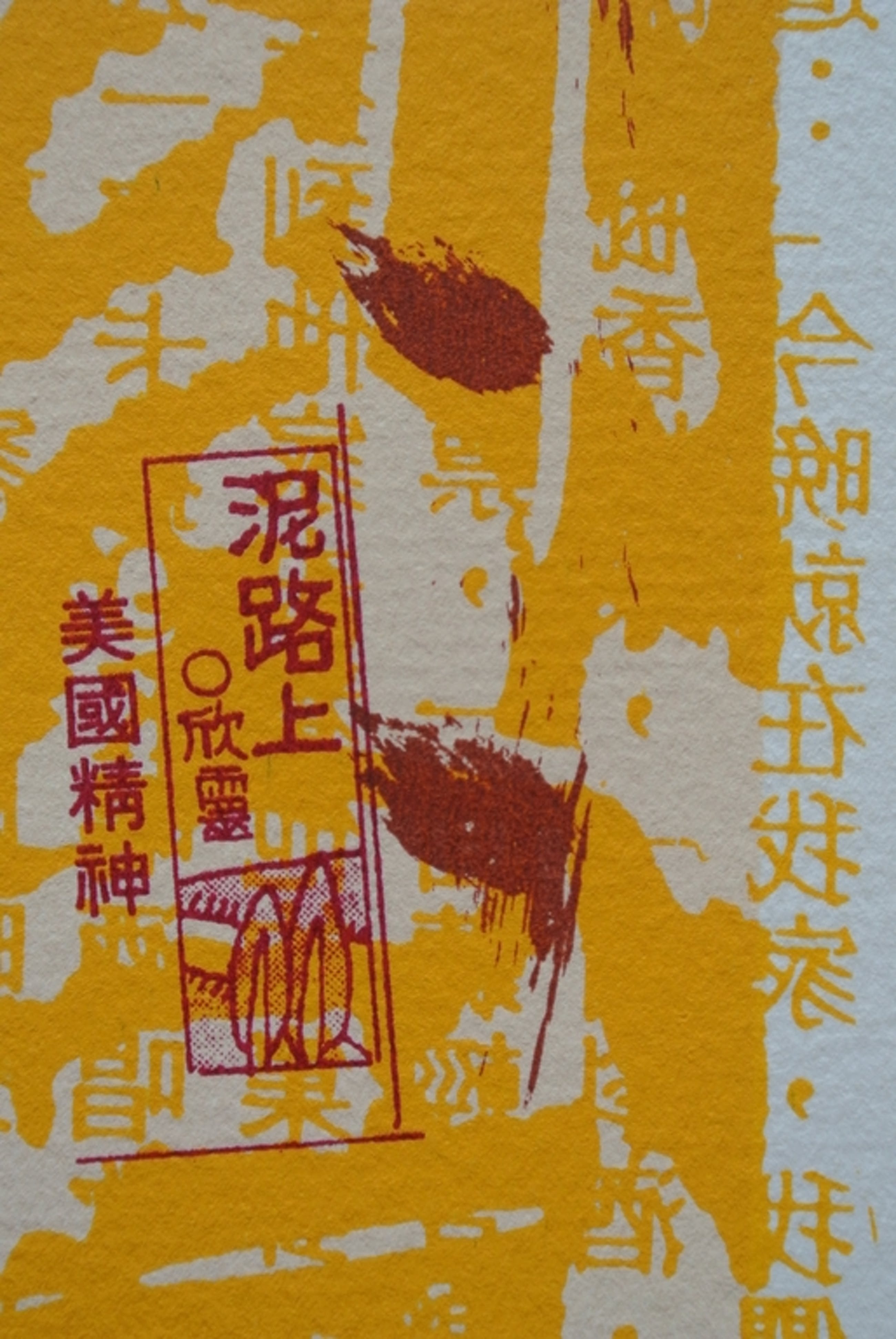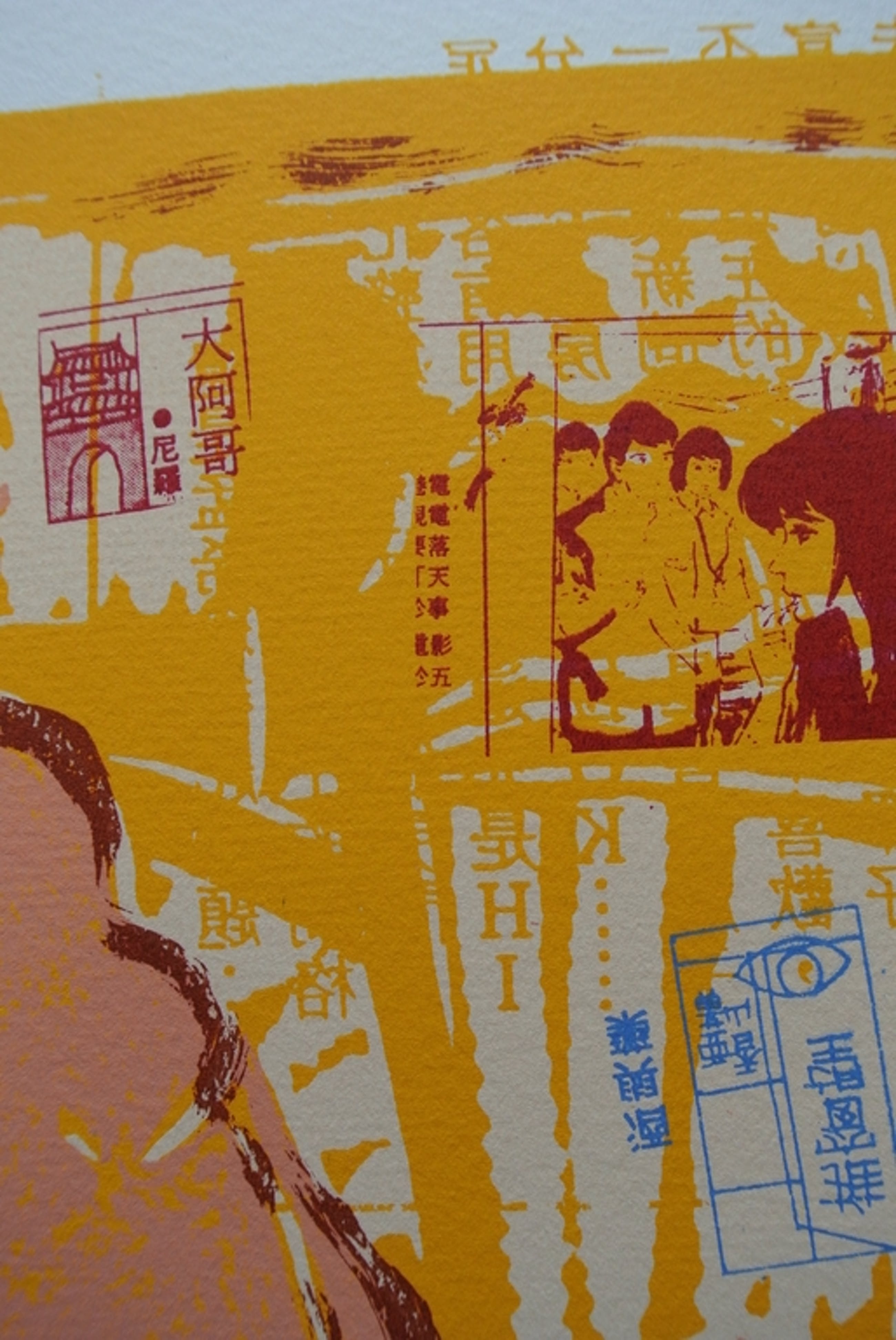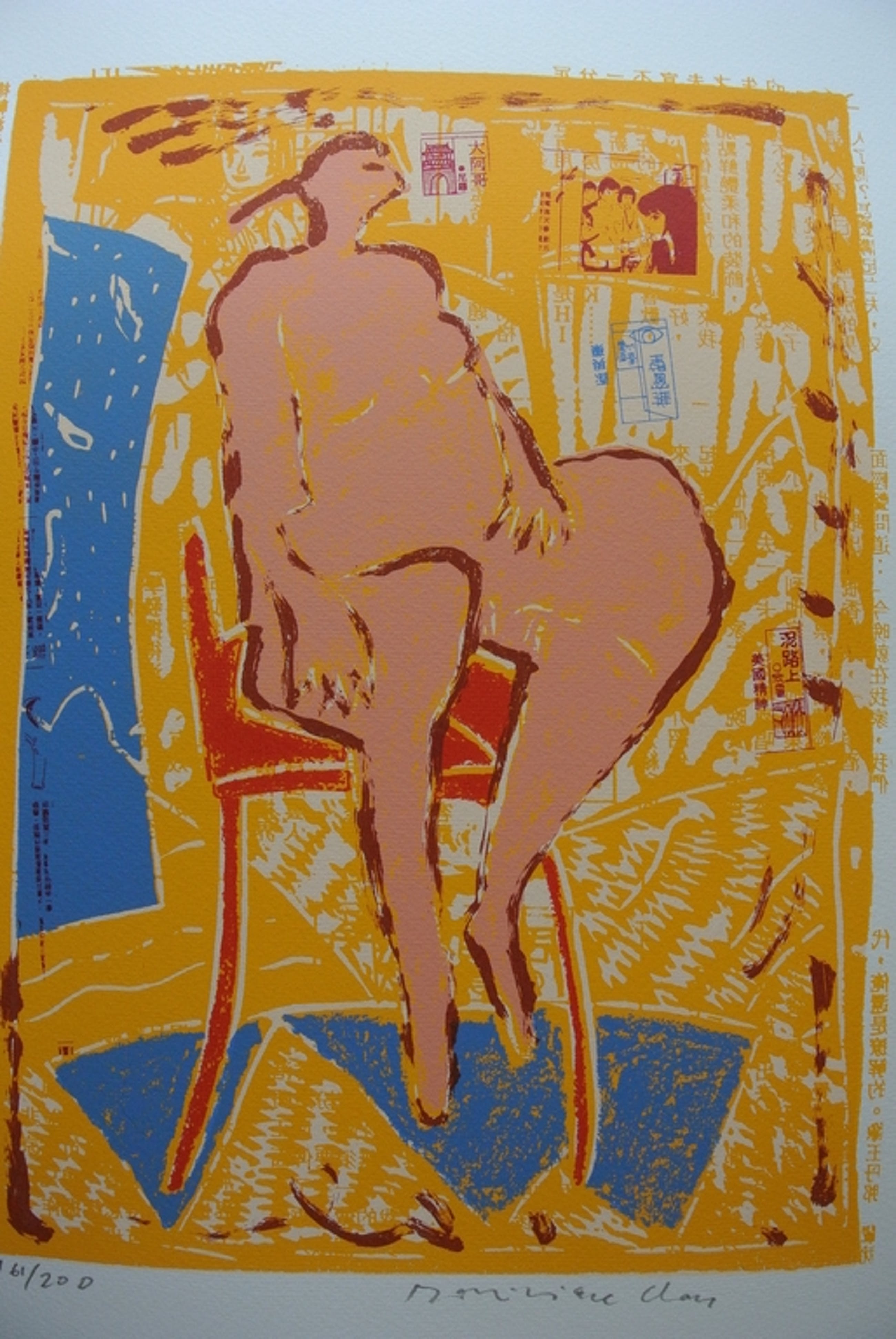 Mooie zeefdruk, die evenals veel van zijn andere werk een kijkje geeft in zijn manier van zien en beleven tijdens zijn reizen door o.a. China. De kijker wordt meegenomen naar een andere wereld. Zijn wereld.
