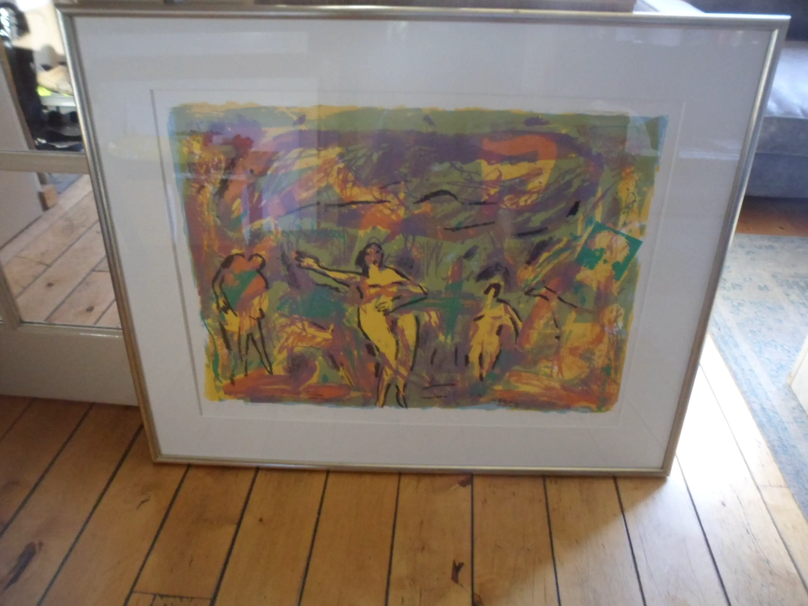 Afmeting van het blad is B.73 x H.55 cm, Ingelijst B. 96 x H. 77 cm