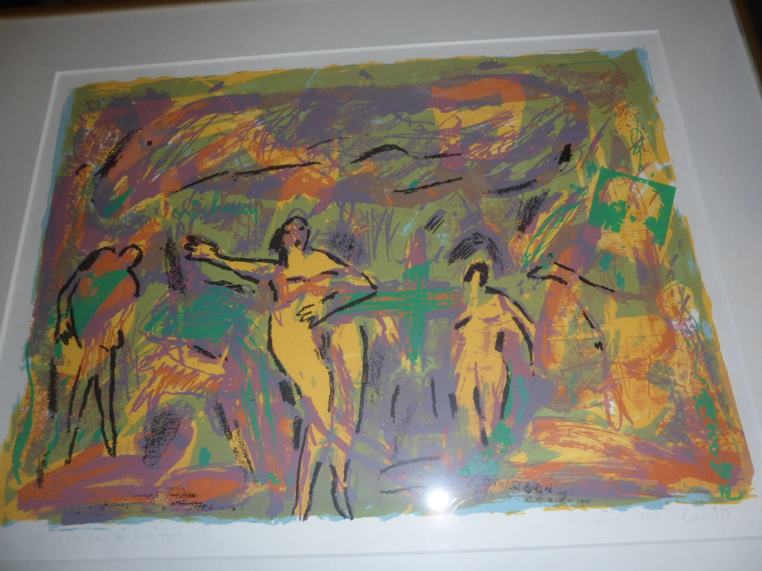 Door de kunstenaar gesigneerd, getiteld Tai Chi club in the Bois de Boulogne en genummerd 5/50 met potlood.