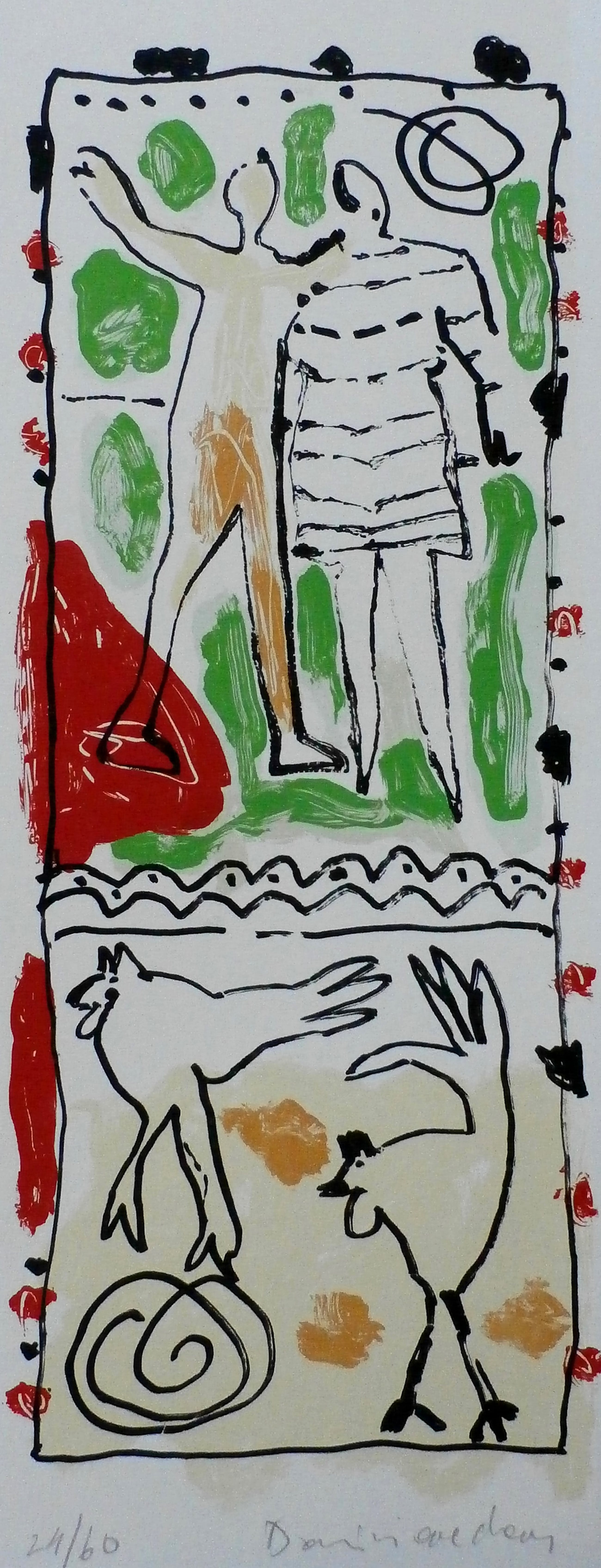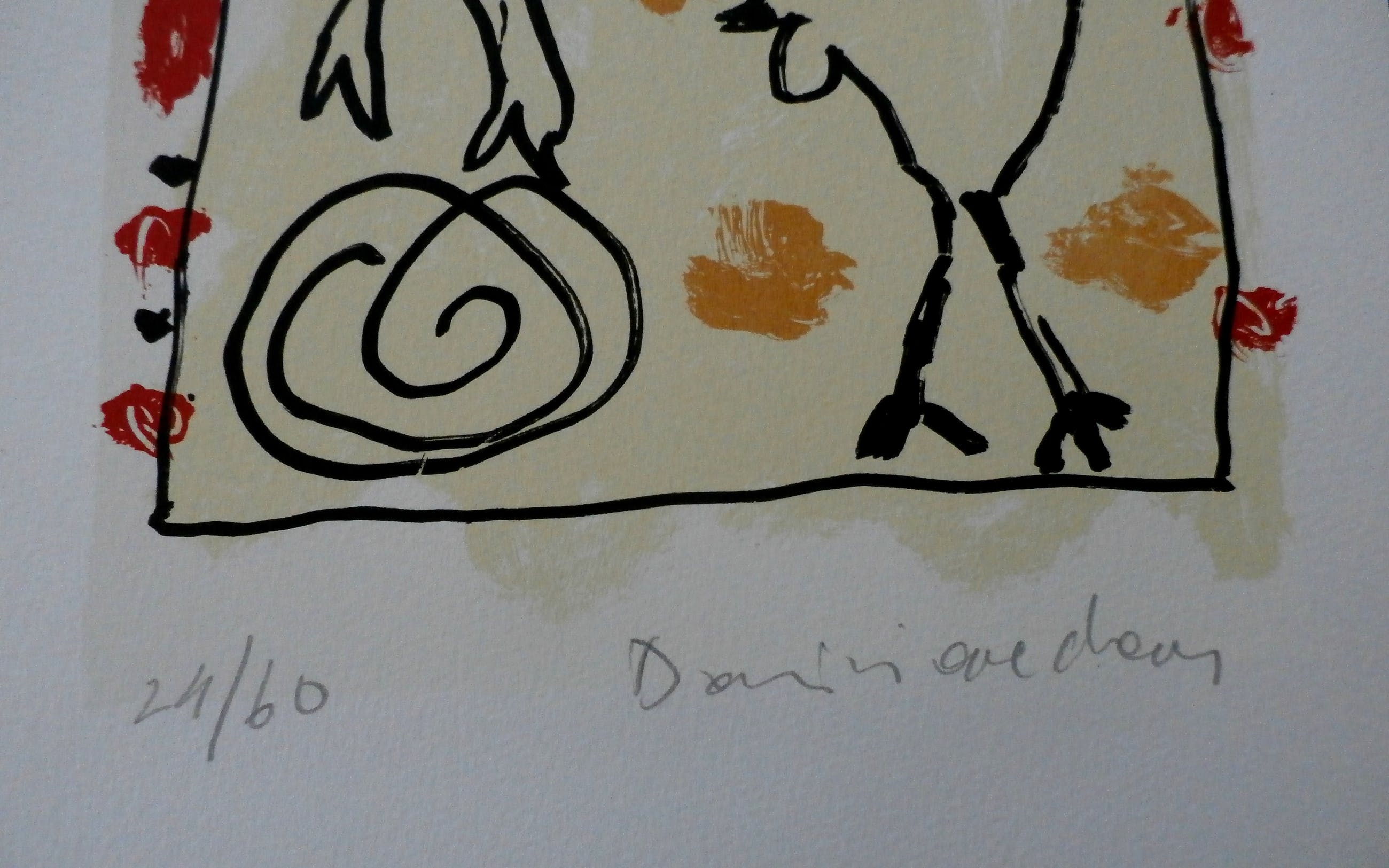 Mooie kleurenzeefdruk van Dominique Chan. Afmetingen voorstelling: h52 x b20 cm. Het werk is rechtsonder, met potlood, gesigneerd door de kunstenaar. Herkomst: collectie ABN AMRO. De authenticiteit van het, aangeboden, werk wordt voor 100% gegarandeerd. Een certificaat van echtheid kan, op aanvraag, worden meegestuurd.