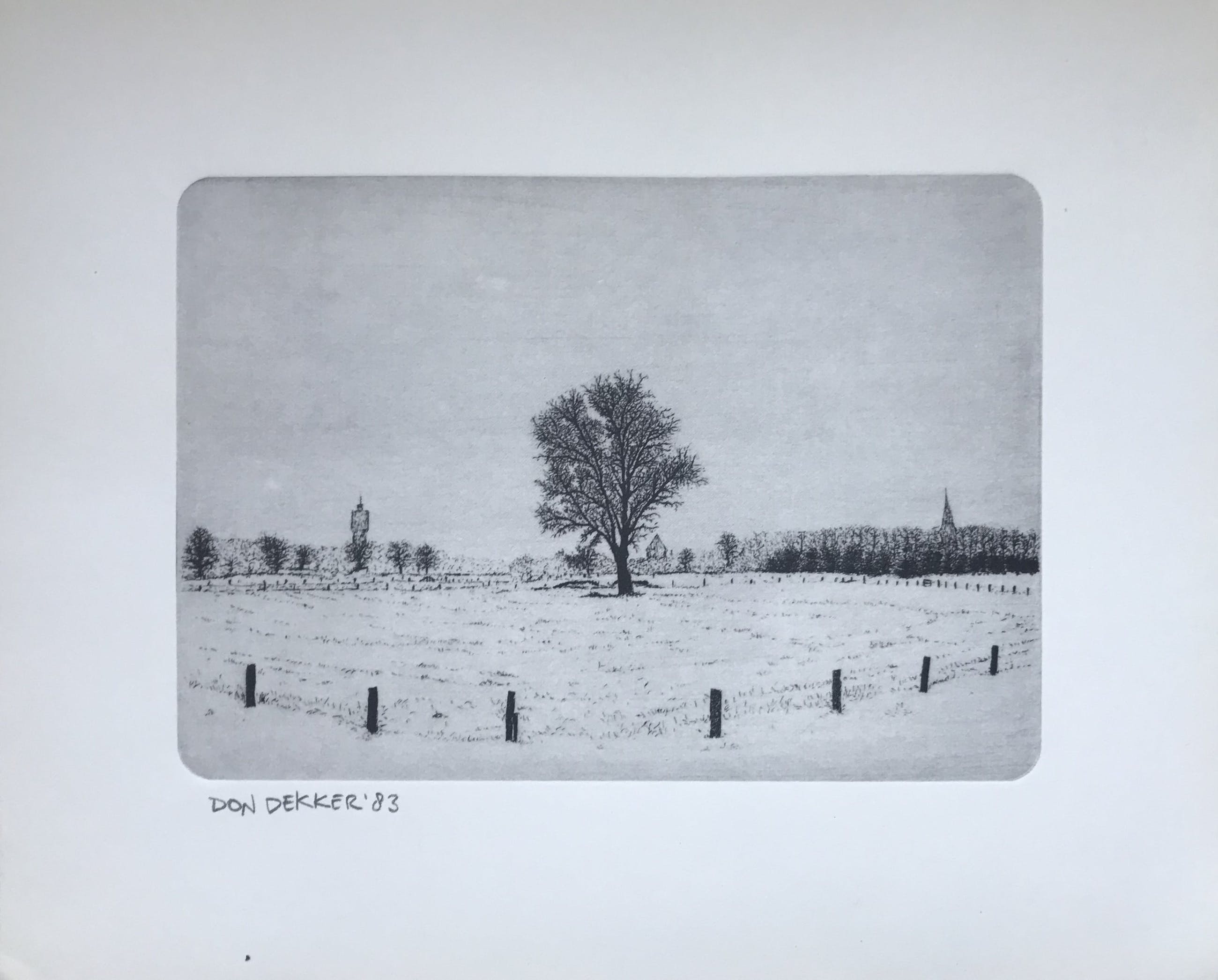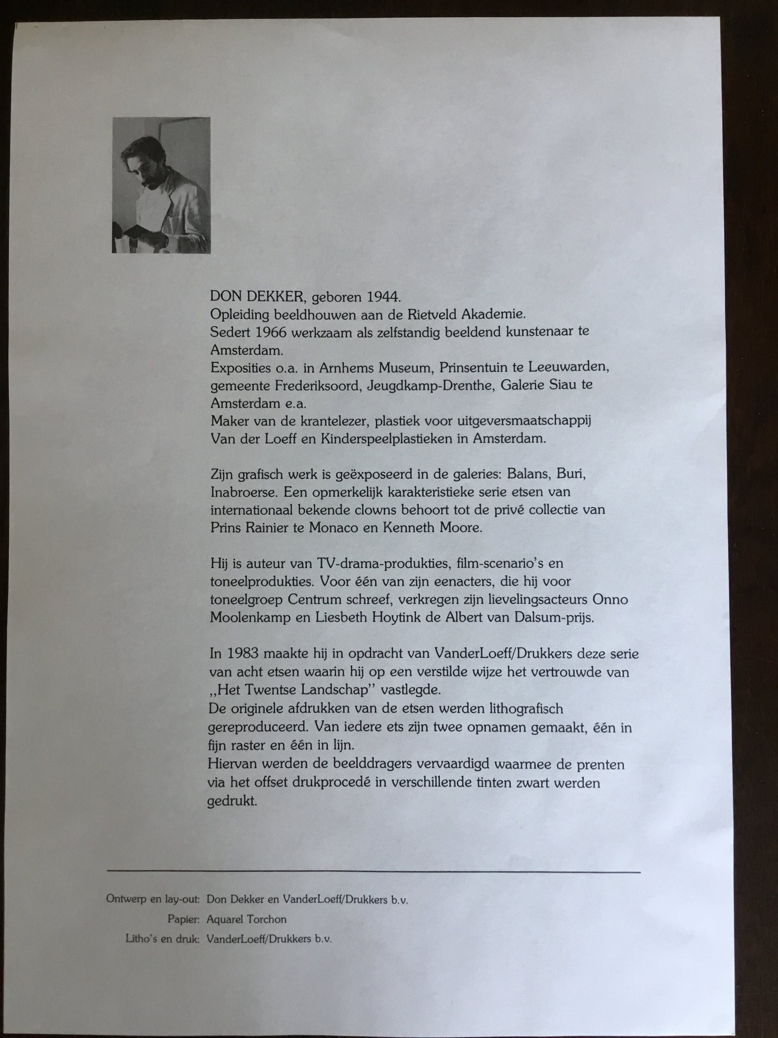 Een serie van 8 orginele afdrukken van de etsen waarop op een verstilde wijze het vertrouwde Twentse landschap is vastgelegd.