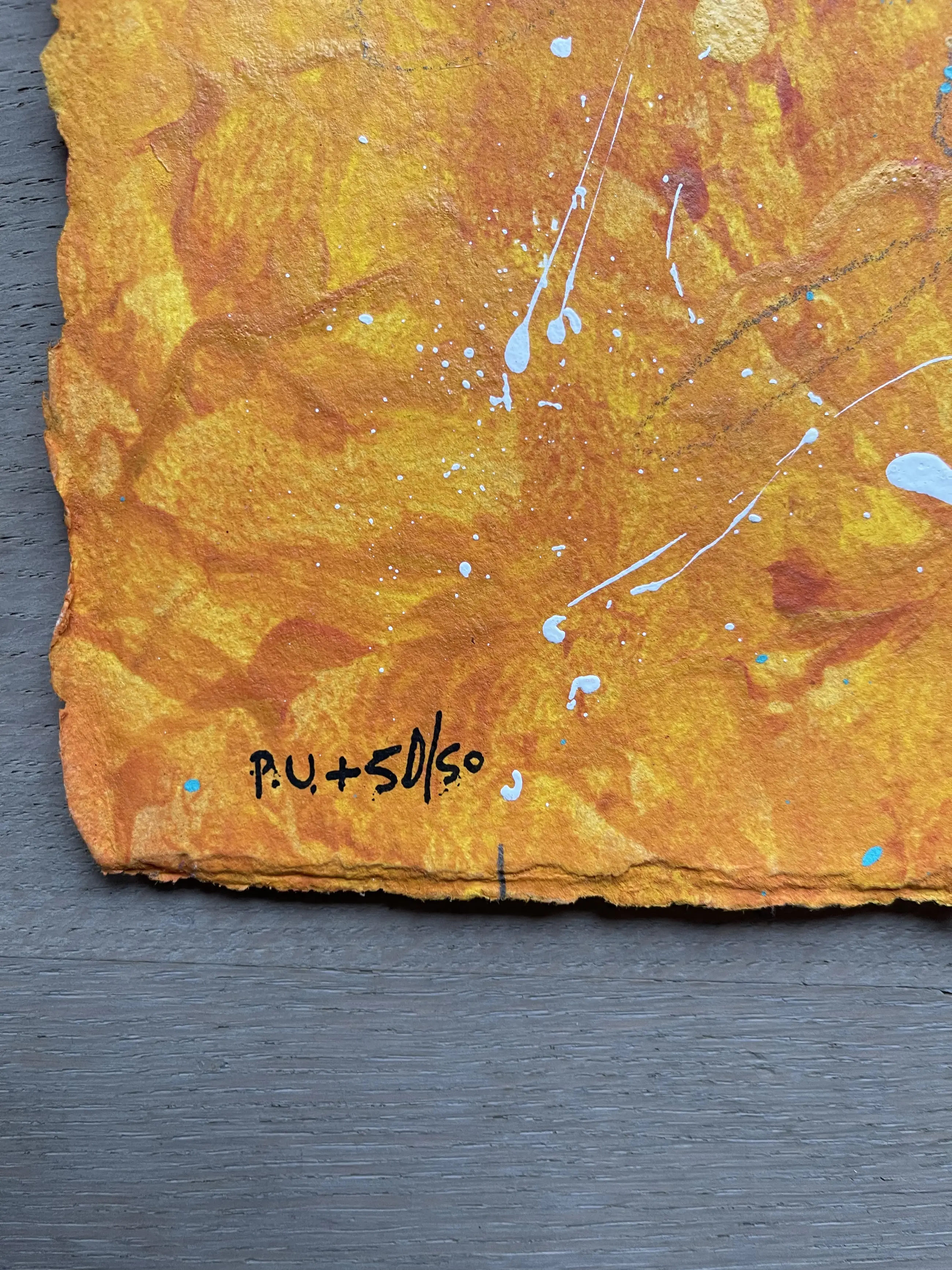 Het werk dat ik hierbij te koop stel is deels een print en is deels geschilderd van Don Ken. Dit werk heeft een oplage van 50 en ik stel hierbij nummer 50 te koop. Ieder werk is uniek en werd met een pen persoonlijk gehandtekend.