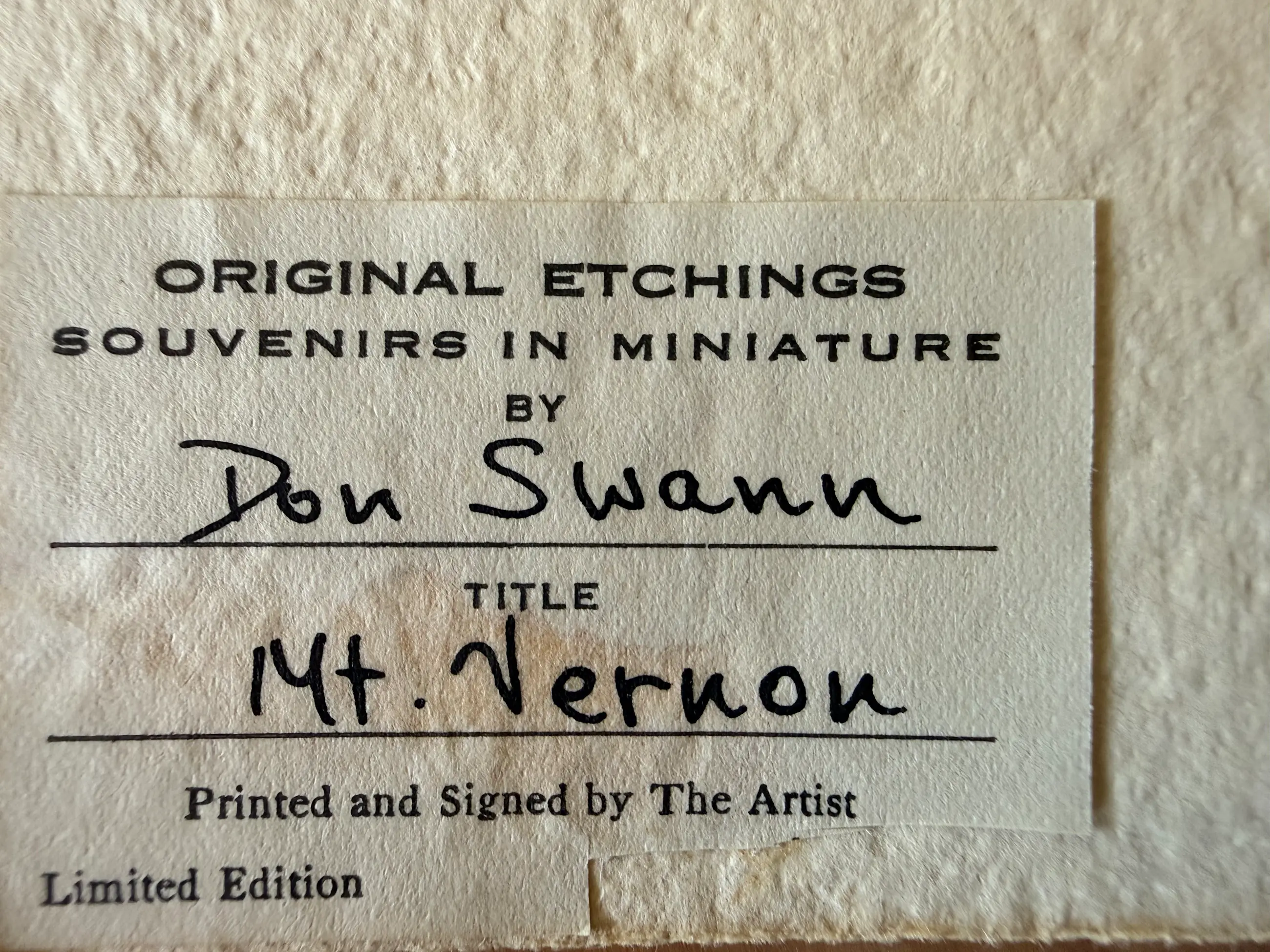 Kunstenaar Don Swann, geboren in Florida in 1889, studeerde kunst in Rome en München voordat hij terugkeerde naar Amerika, waar hij tot zijn dood in 1954 in Baltimore woonde. Don Swann was een kunstenaar die ook werkte als schrijver en graveur. Hij illustreerde belangrijke gebouwen, voornamelijk in en rond Washington D.C. en Baltimore. Veel van zijn werk bevindt zich in de permanente collecties van het U.S. Naval Museum, het Smithsonian, het Metropolitan Museum of Art en de Library of Congress, evenals in vele vooraanstaande privécollecties. Zijn omvangrijke oeuvre van historische Americana omvat vele etsen van Don Swann.