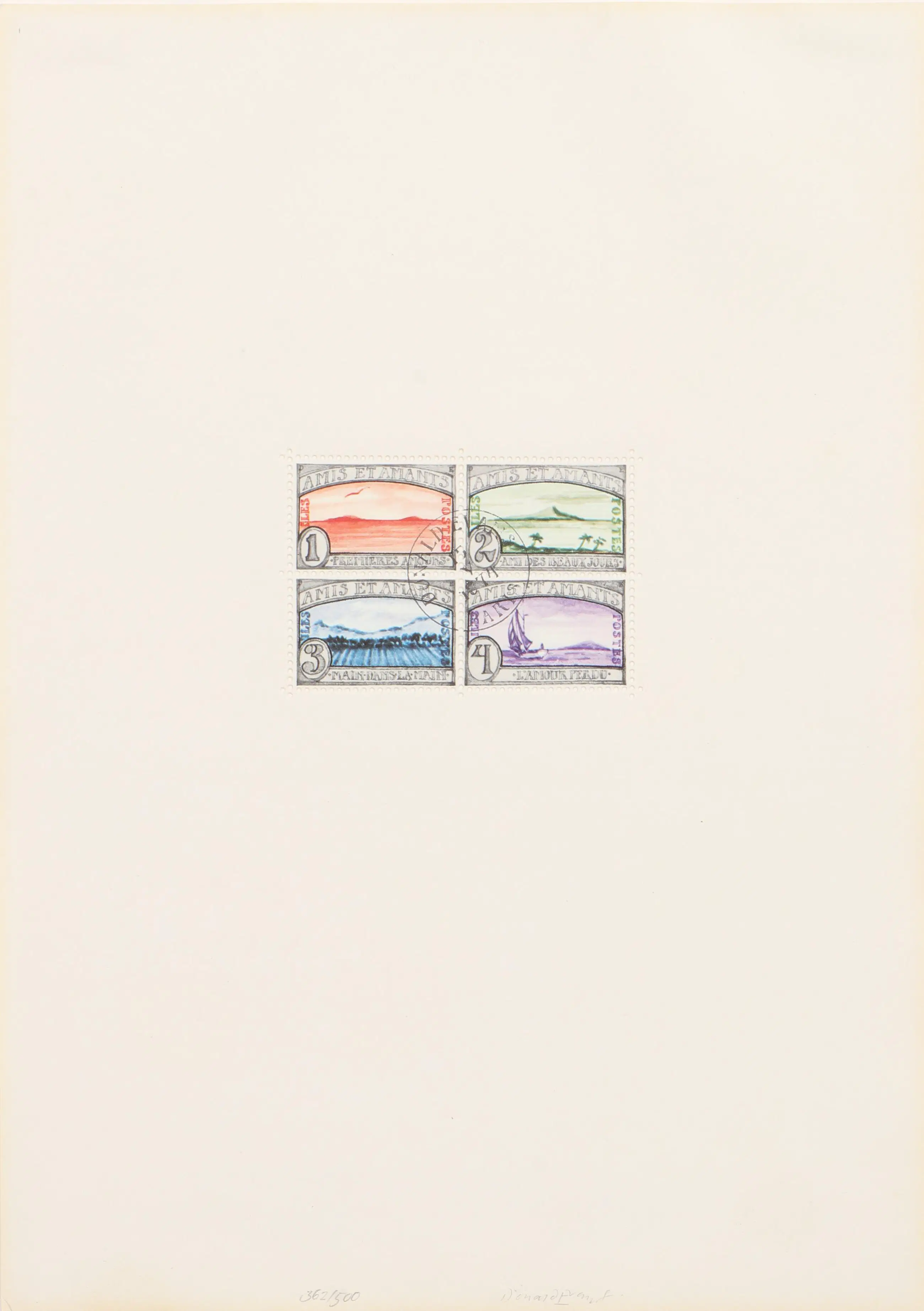 DONALD EVANS Amis et Amants, 1975 Offset lithograph on perforated paper Edition353/500 29,7 x 21 cm Signed and numbered