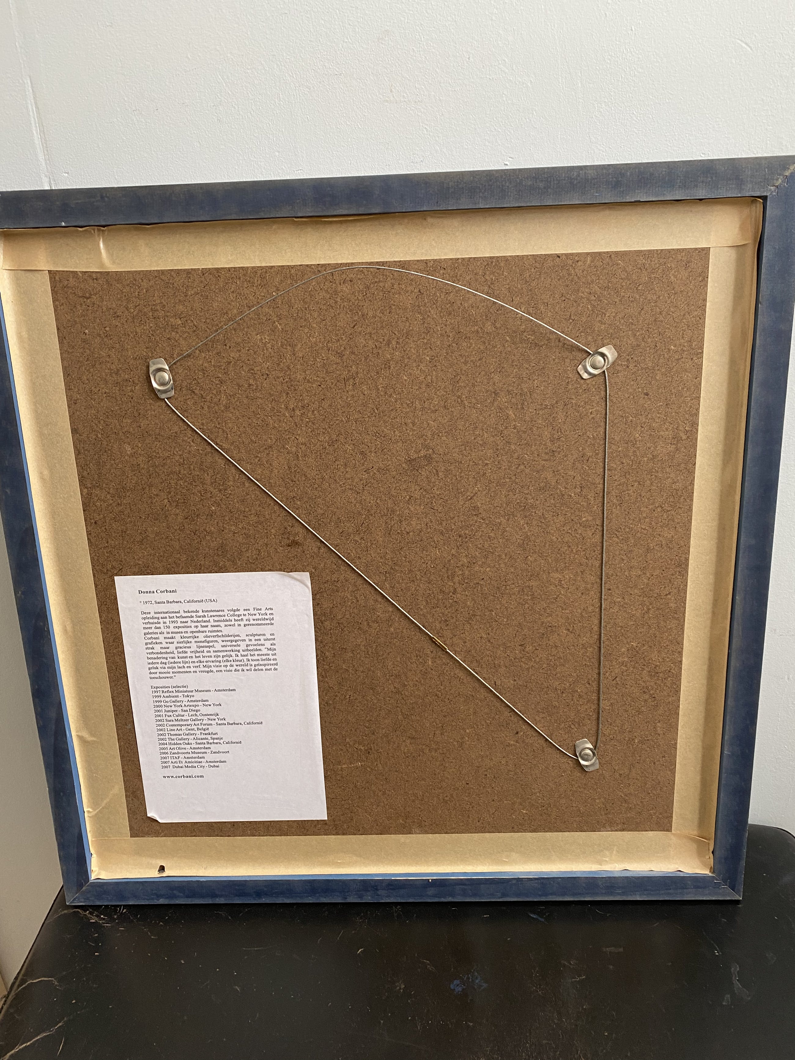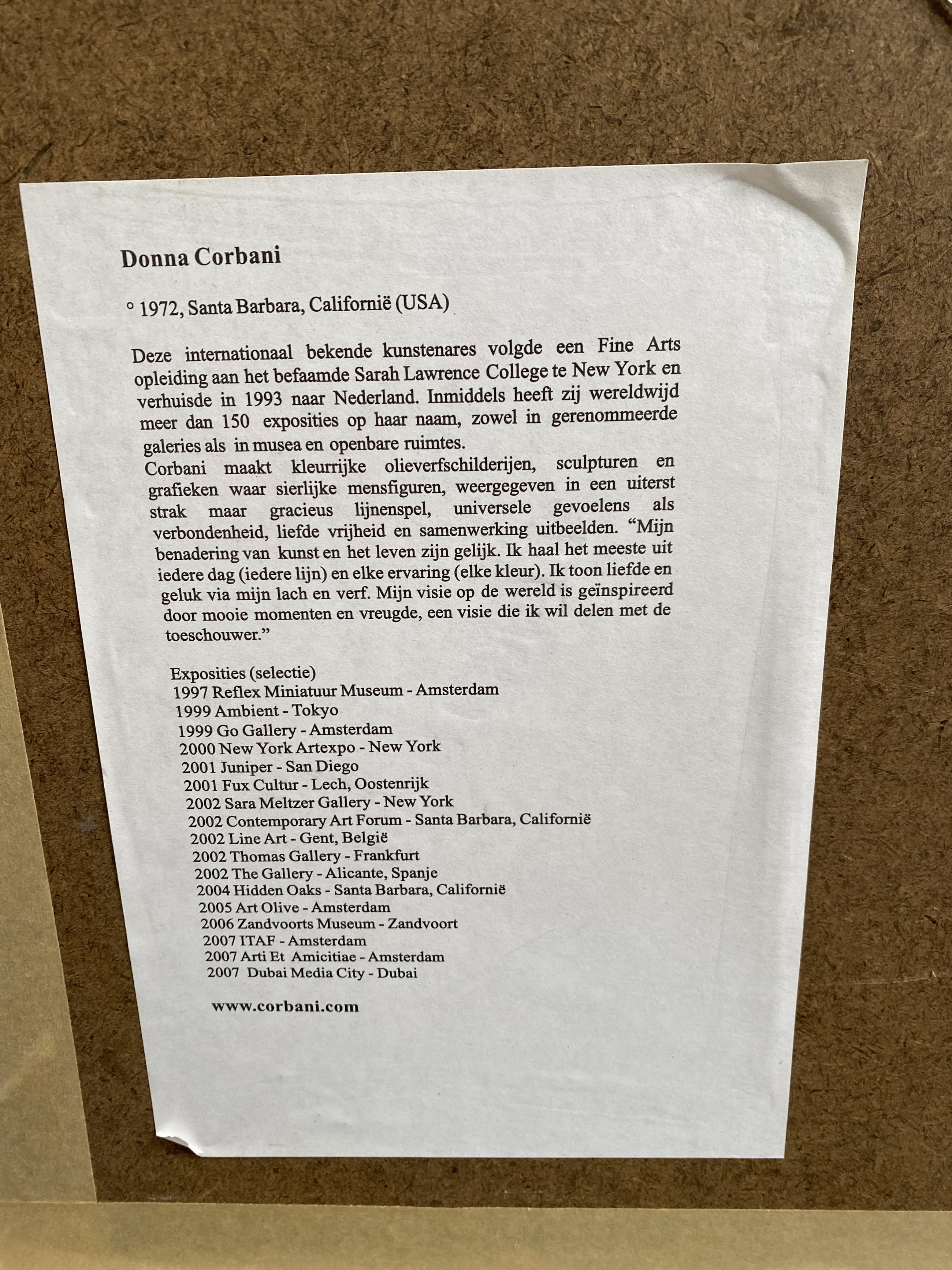 Een uitgebreide beschrijving van Donna Corbani geboren te Santa Barbara, California in 1972, vermeld op de achterzijde van het werk.