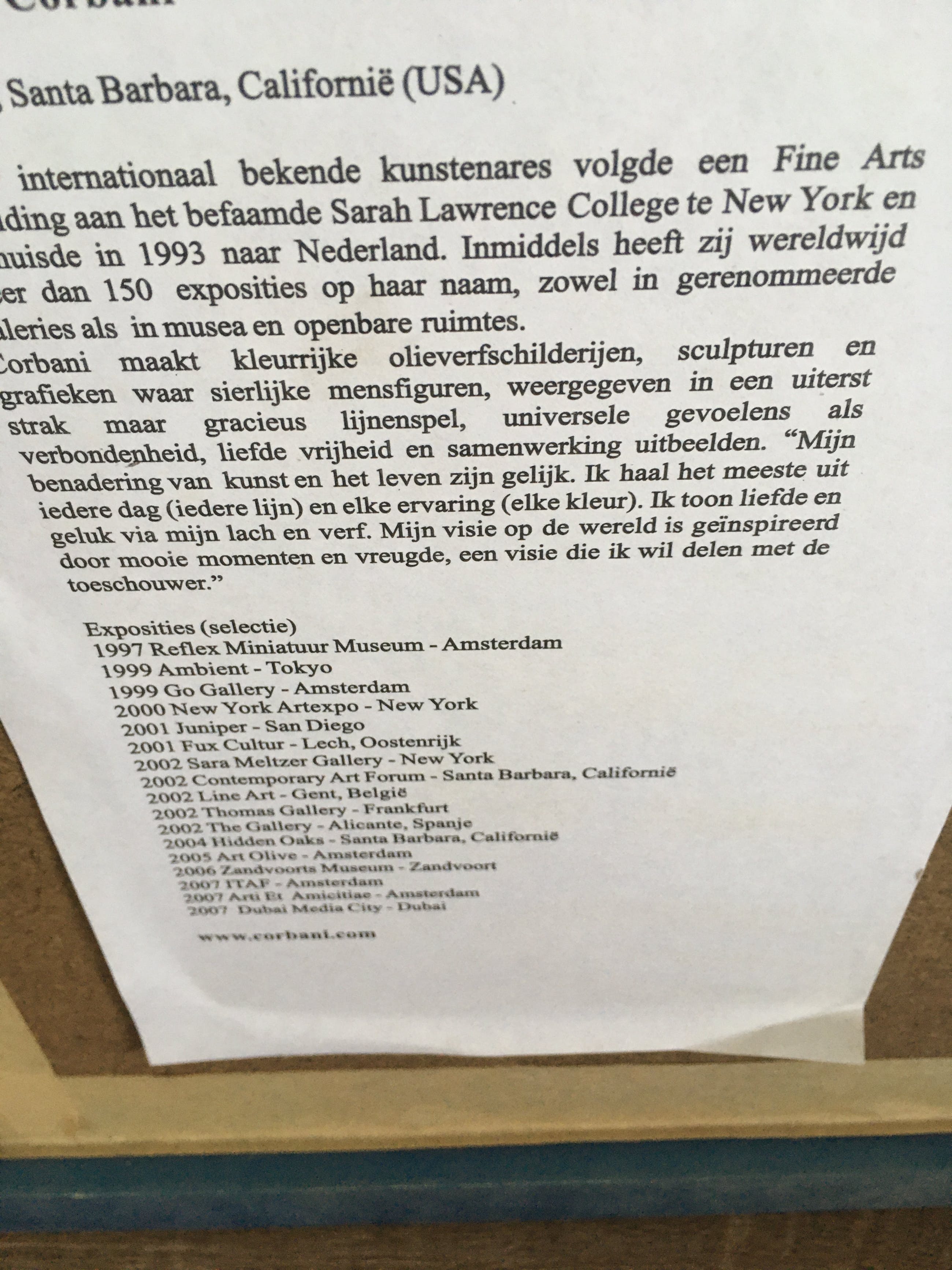 Het werk is af te halen op locatie. Als koper dient u zelf verpakkingsmateriaal mee te nemen. De locatie is: Harderwijk, Nederland